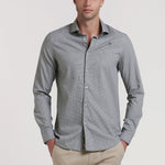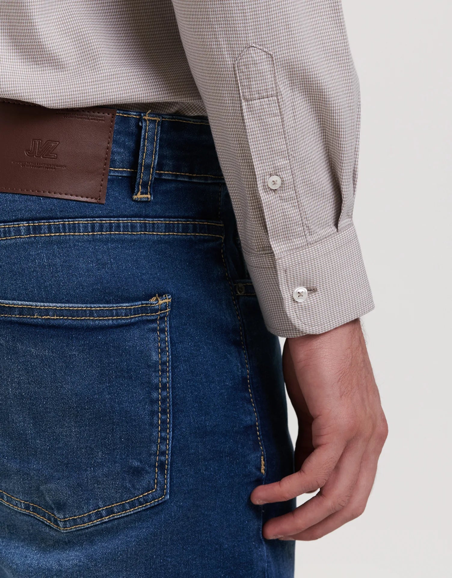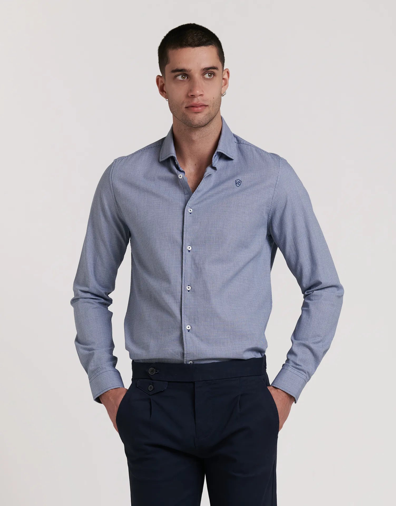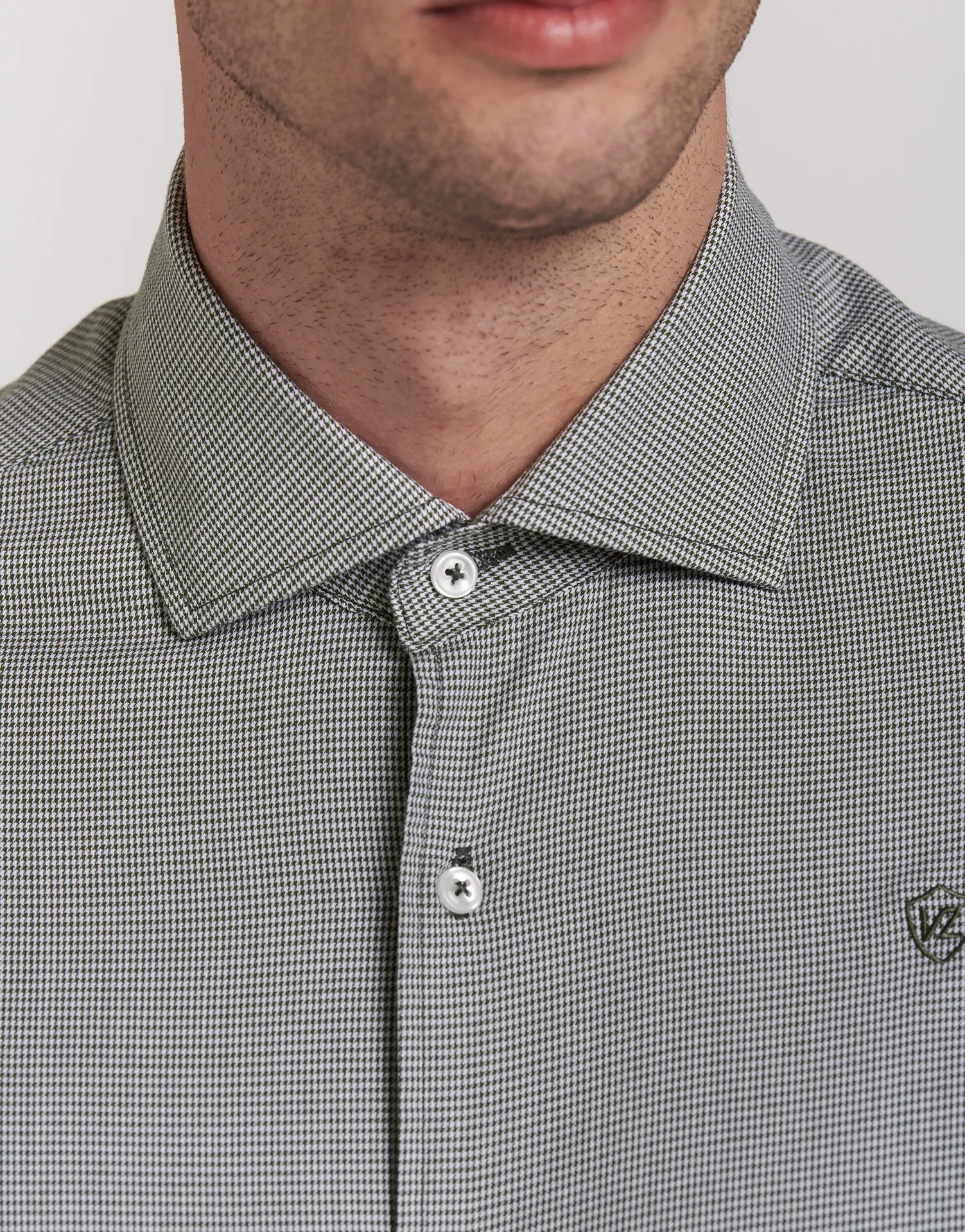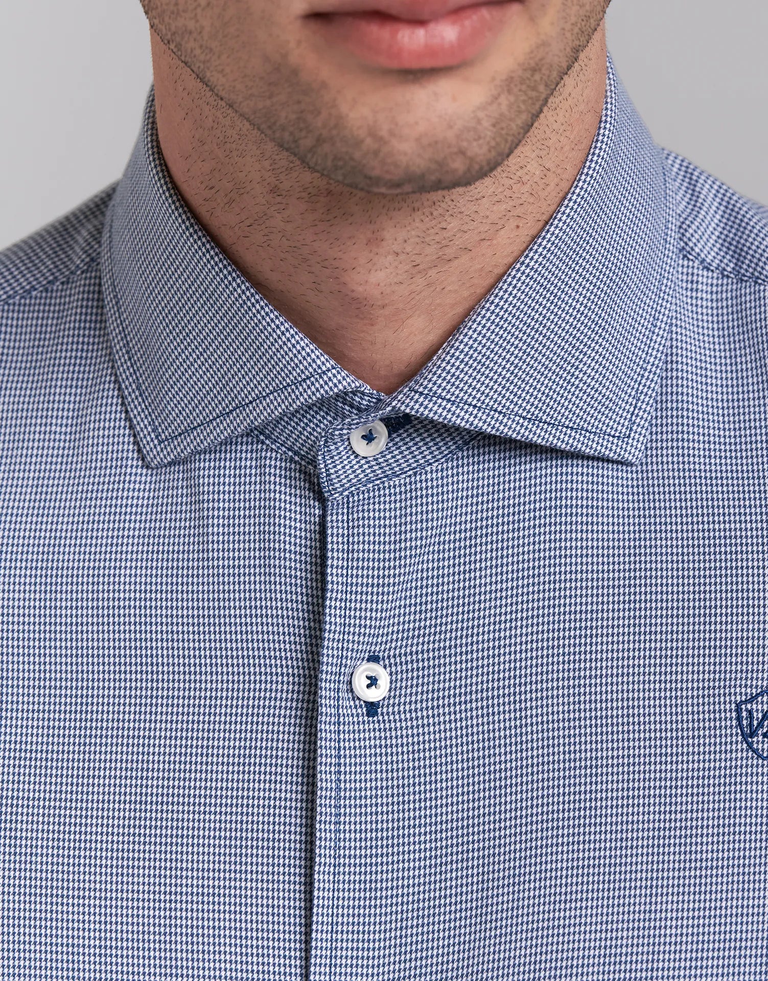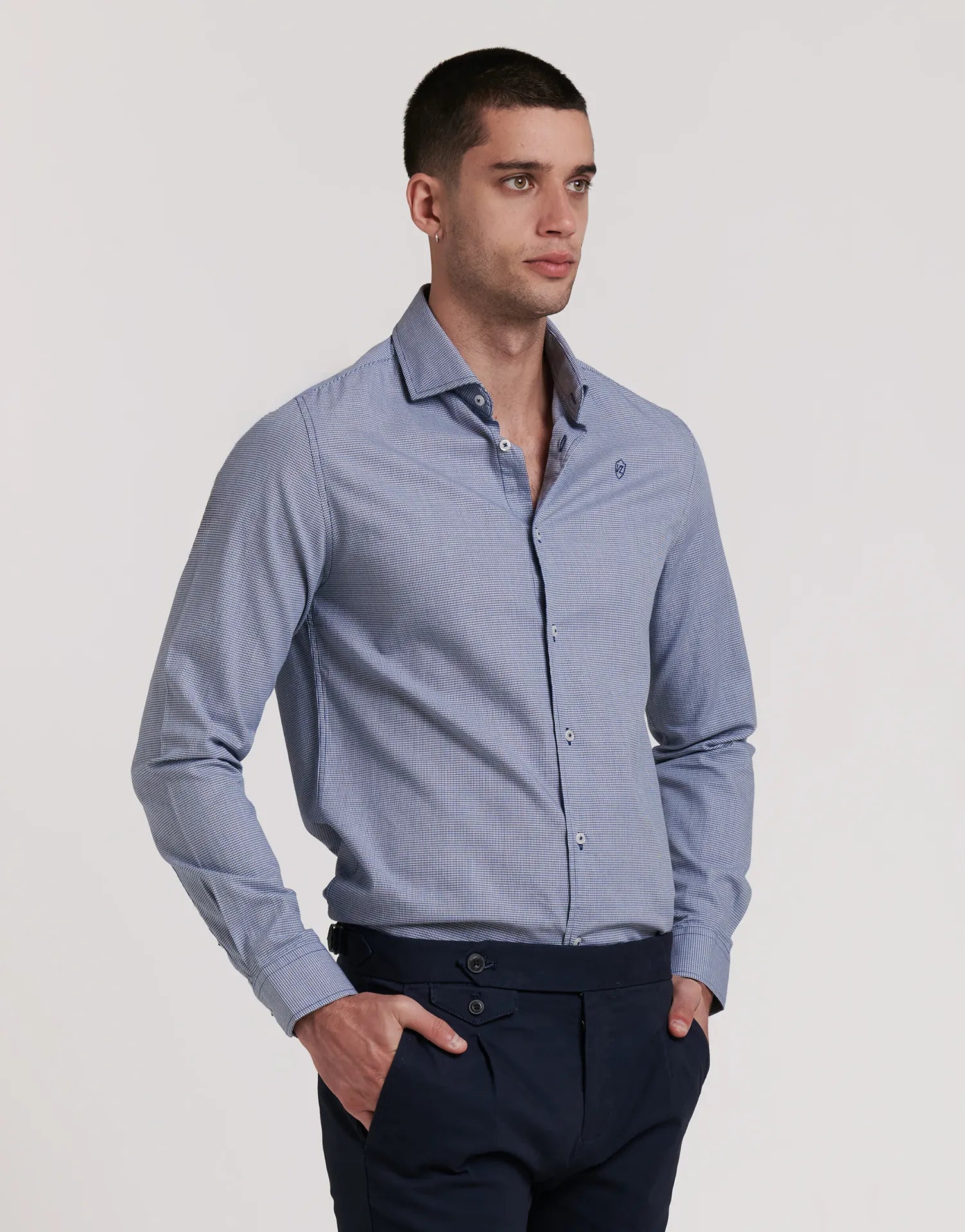 La camisa micro pata de gallo slim fit de JVZ combina elegancia contemporánea y un diseño discreto pero sofisticado. Su microtextura aporta profundidad visual y un acabado distinguido, ideal tanto para looks de oficina como para estilo casual arreglado.