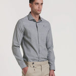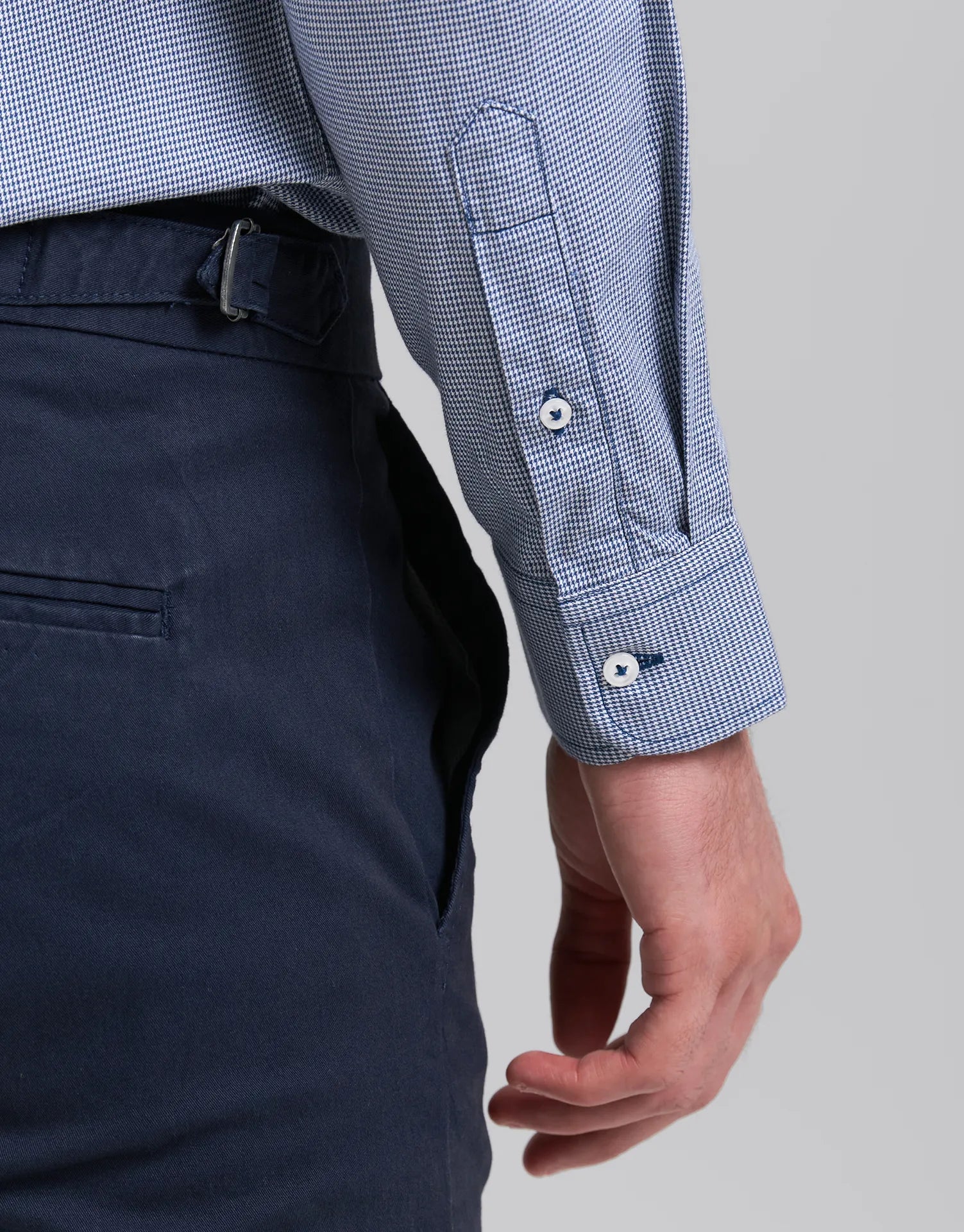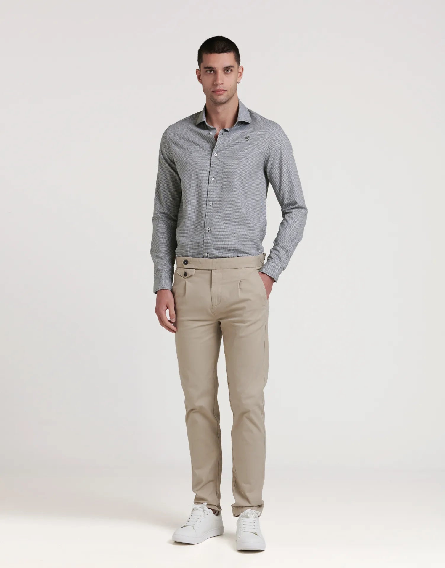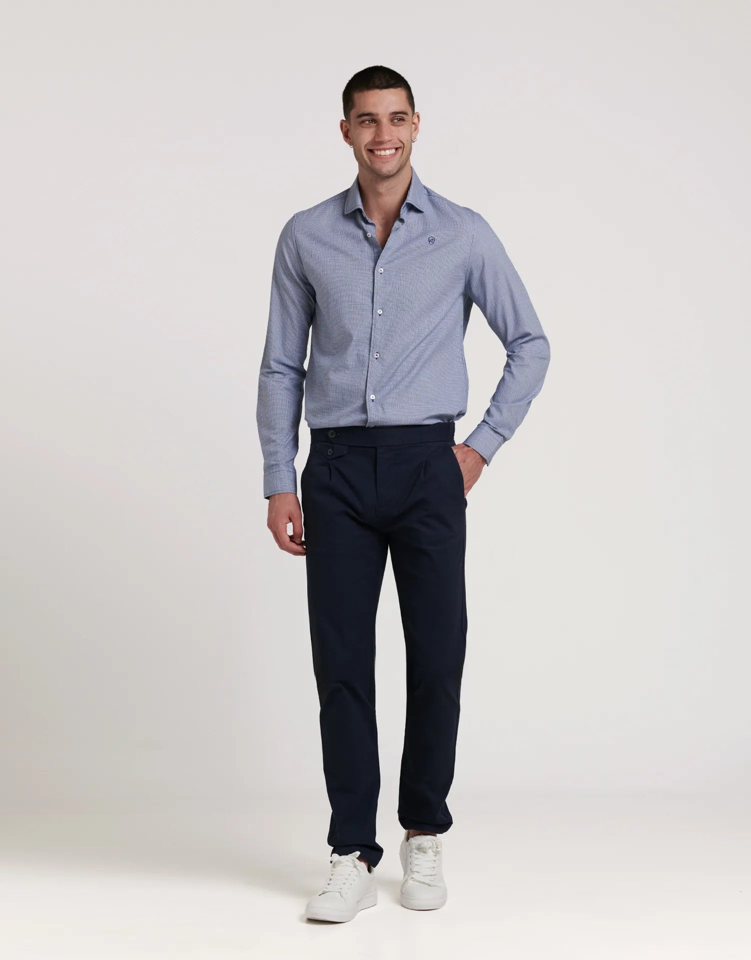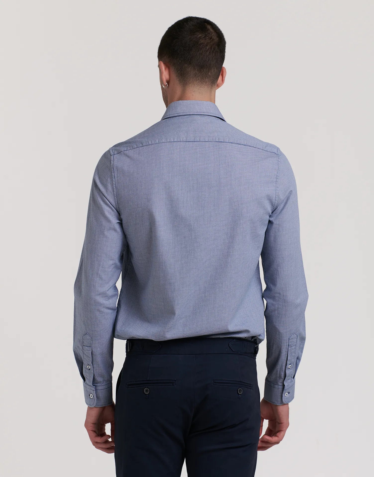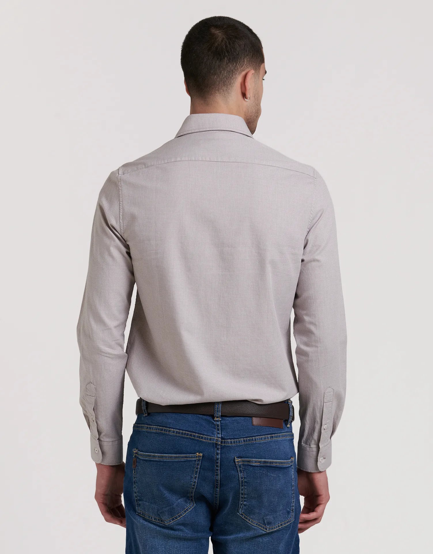 La camisa micro pata de gallo slim fit de JVZ combina elegancia contemporánea y un diseño discreto pero sofisticado. Su microtextura aporta profundidad visual y un acabado distinguido, ideal tanto para looks de oficina como para estilo casual arreglado.