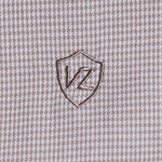 - Tejido micro pata de gallo en tono beige con textura sutil y elegante.