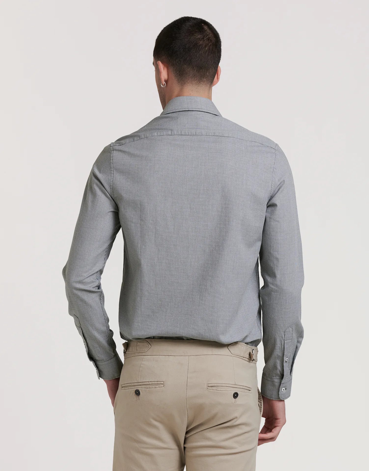 Una camisa versátil que funciona tanto con traje y zapatos de vestir como con vaqueros y sneakers para un look smart casual impecable.