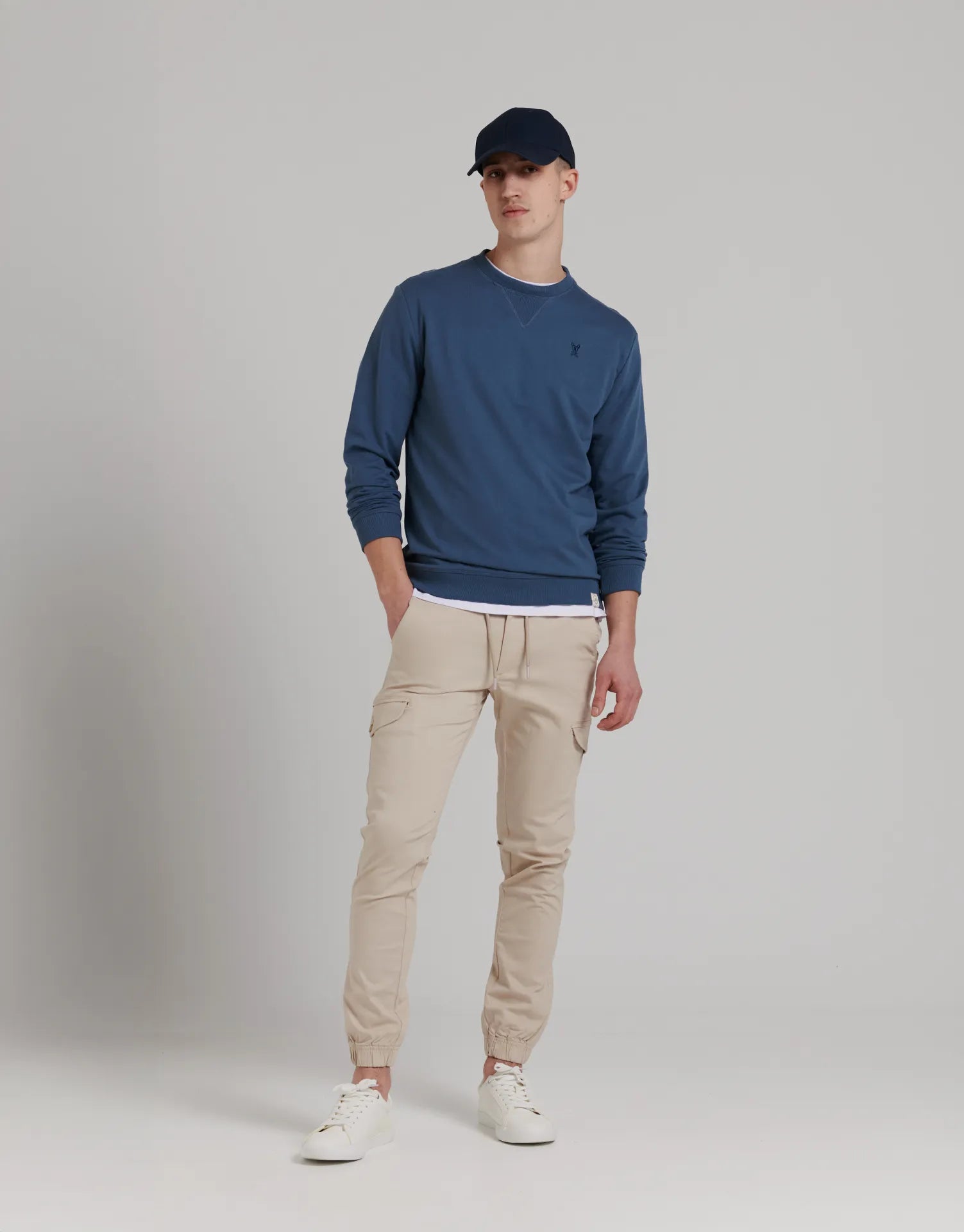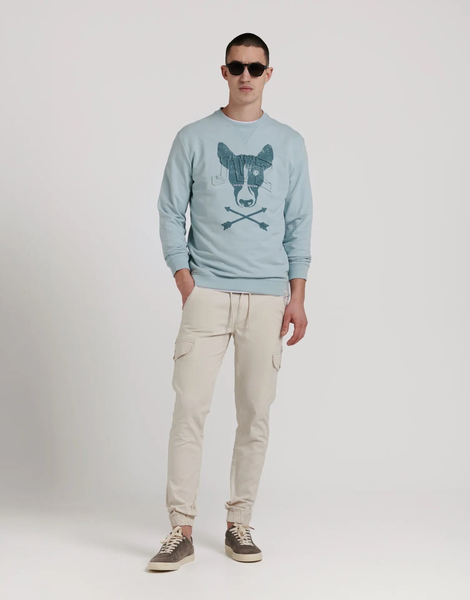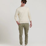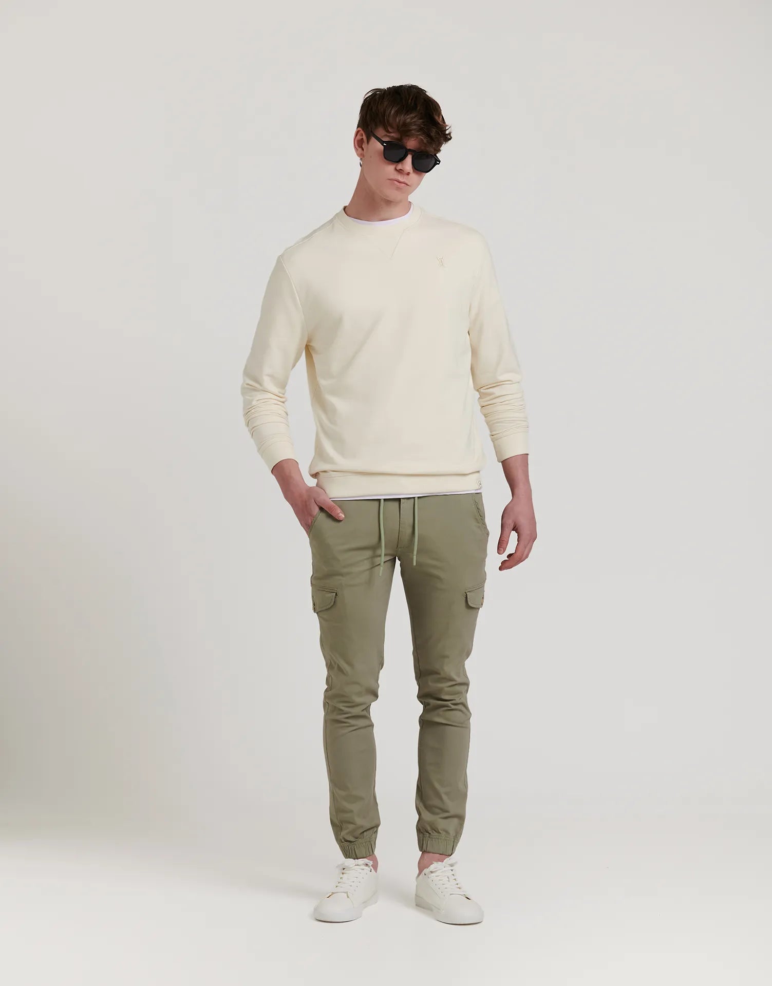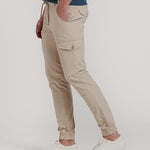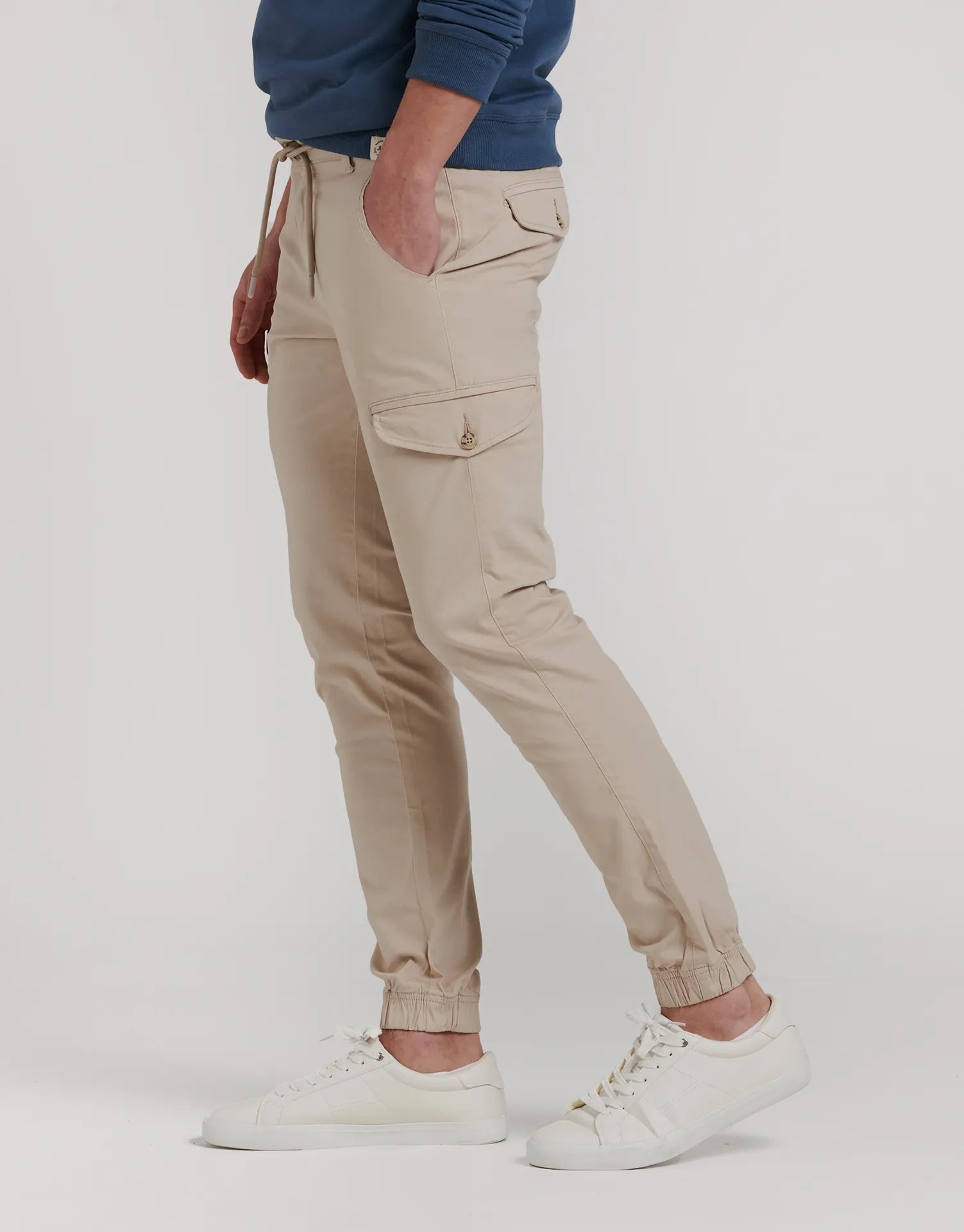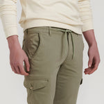 Chino joggers. Slim fit. Side pockets with flap and button closure. Button and zip closure. Back welt pockets with button closure. Elastic cuffs at the hems.