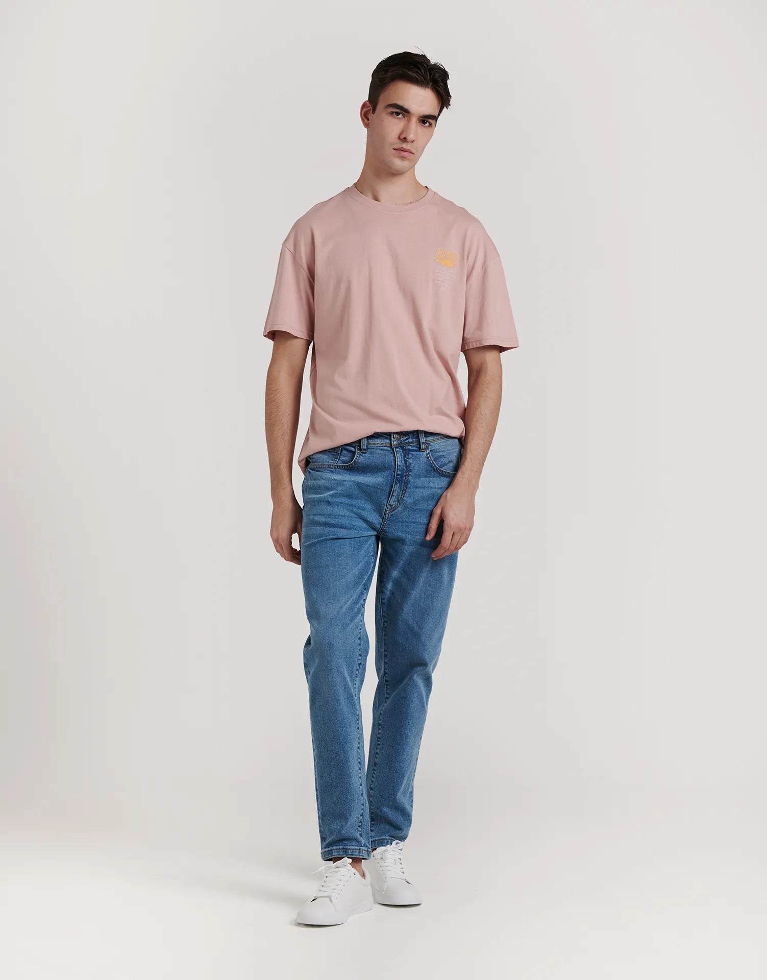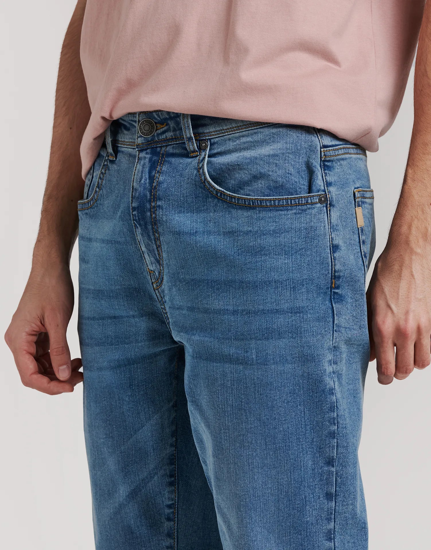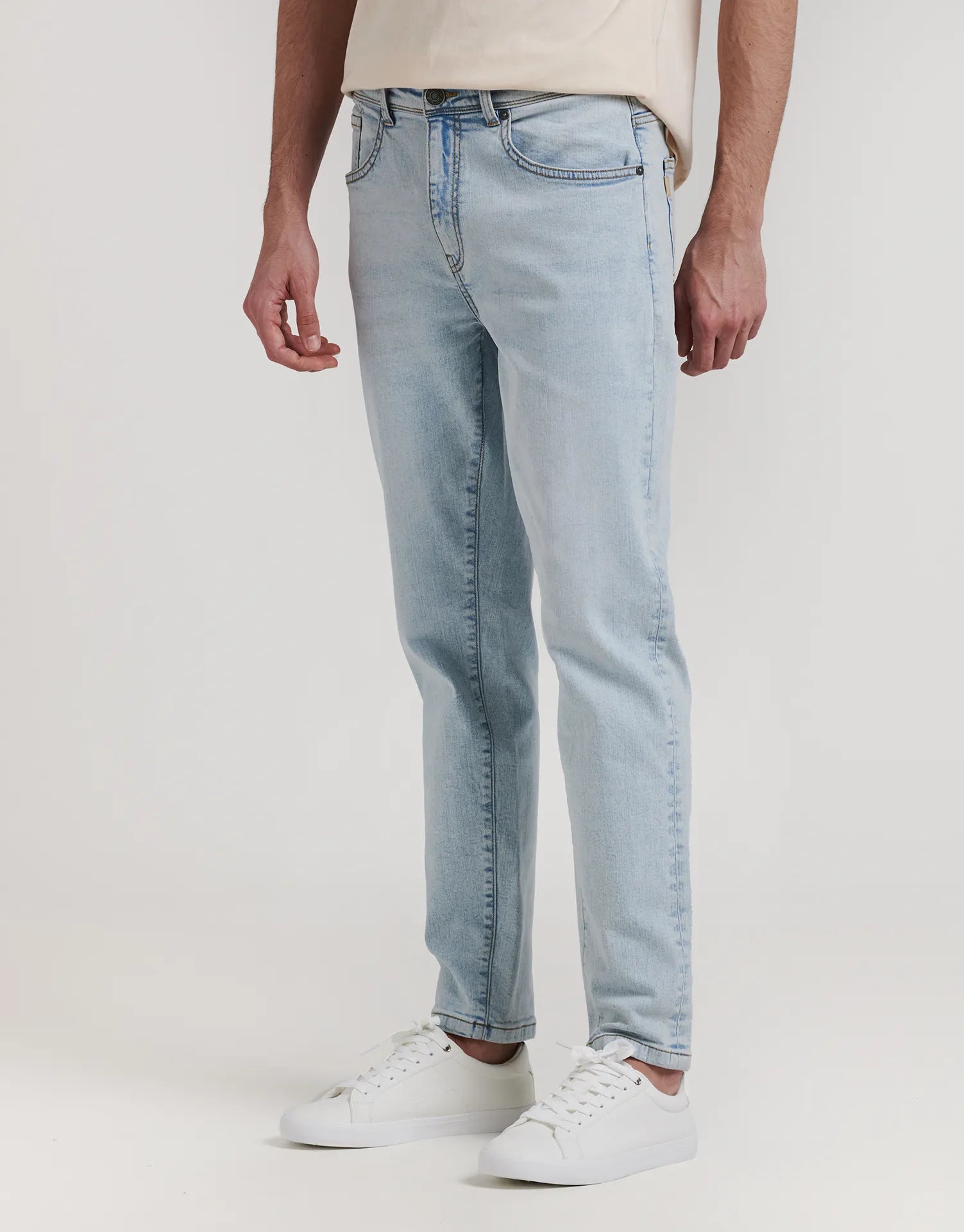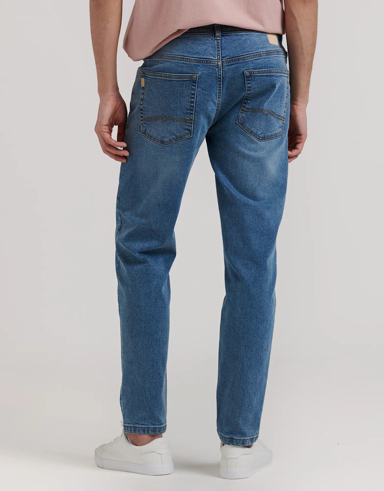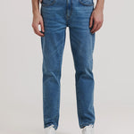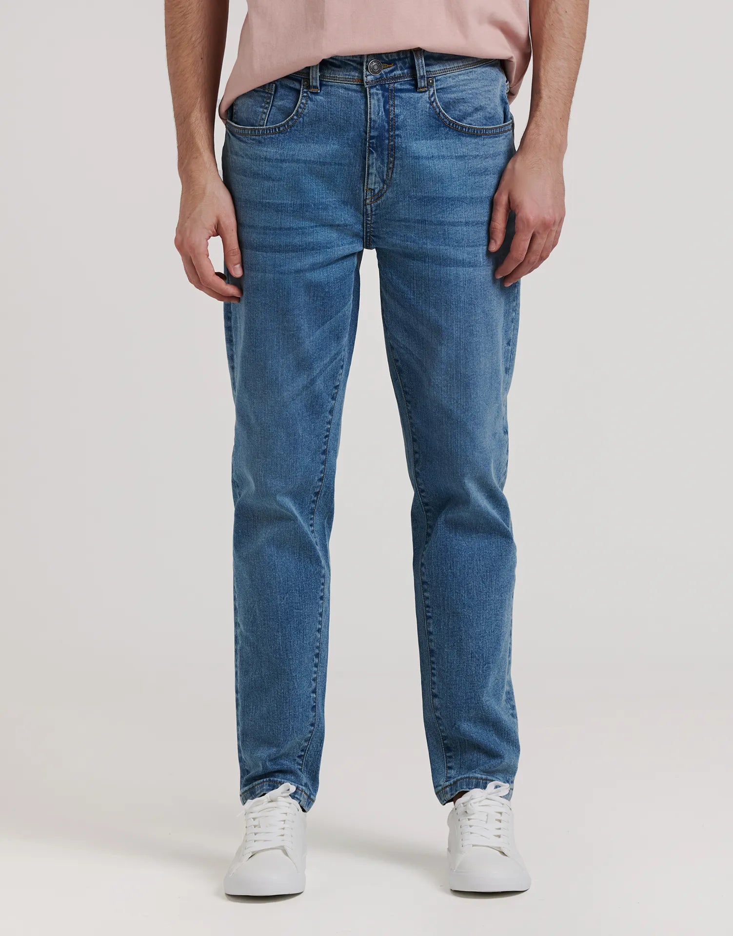 Tapered slim fit jeans with a slight stretch. Mid-rise jeans with a front zip and metal button closure. Five side and back pockets. | Composition: 98% cotton and 2% elastane.