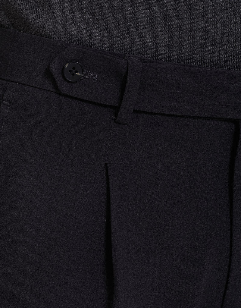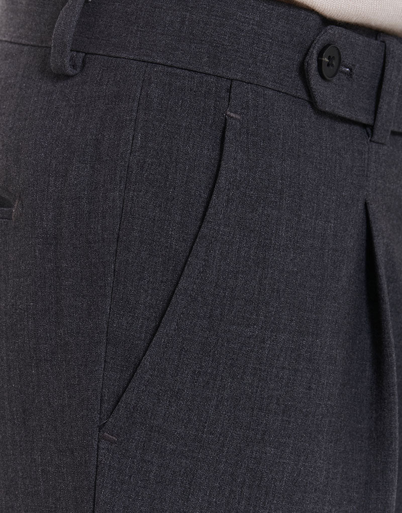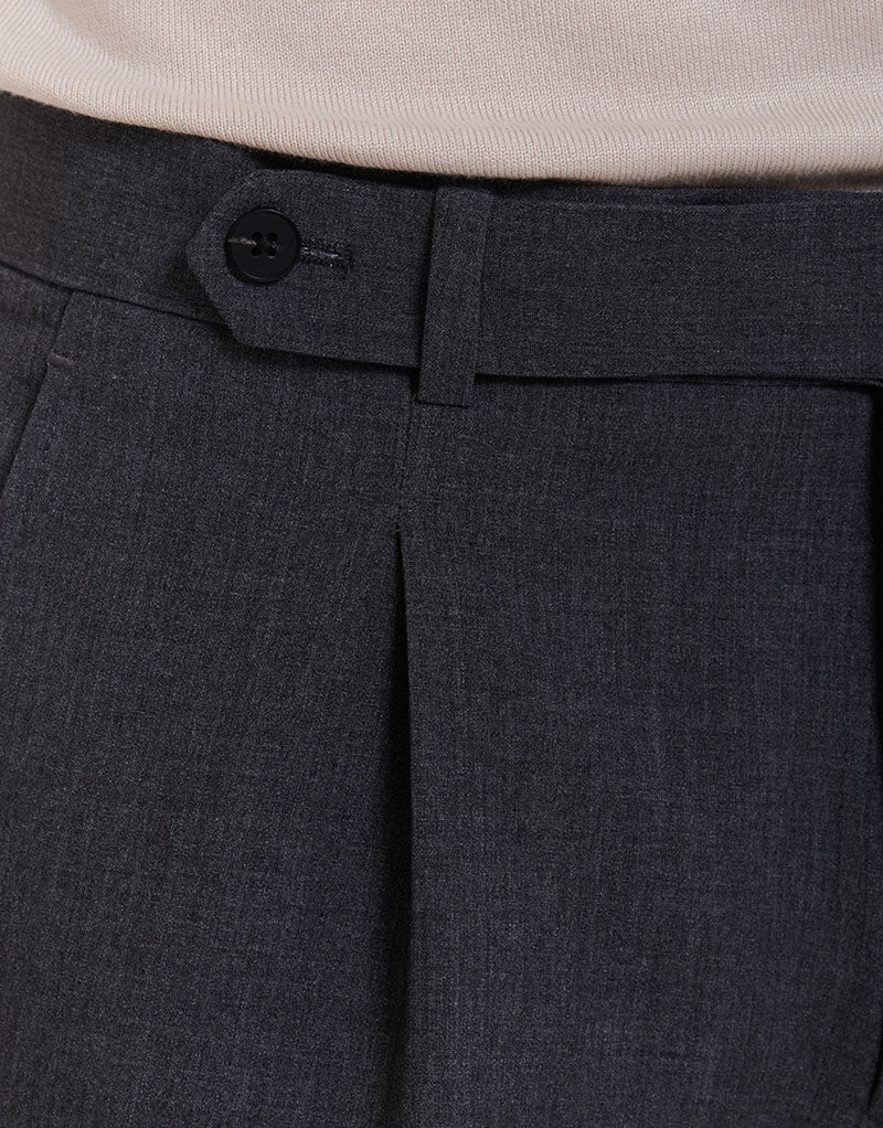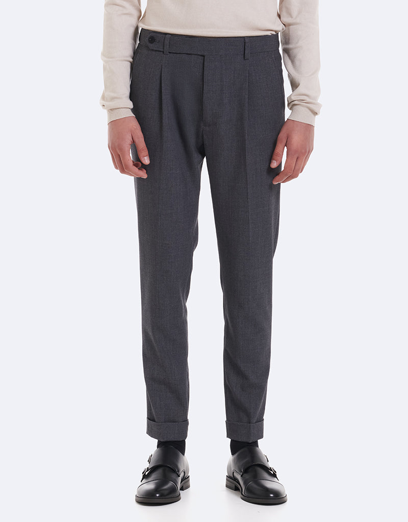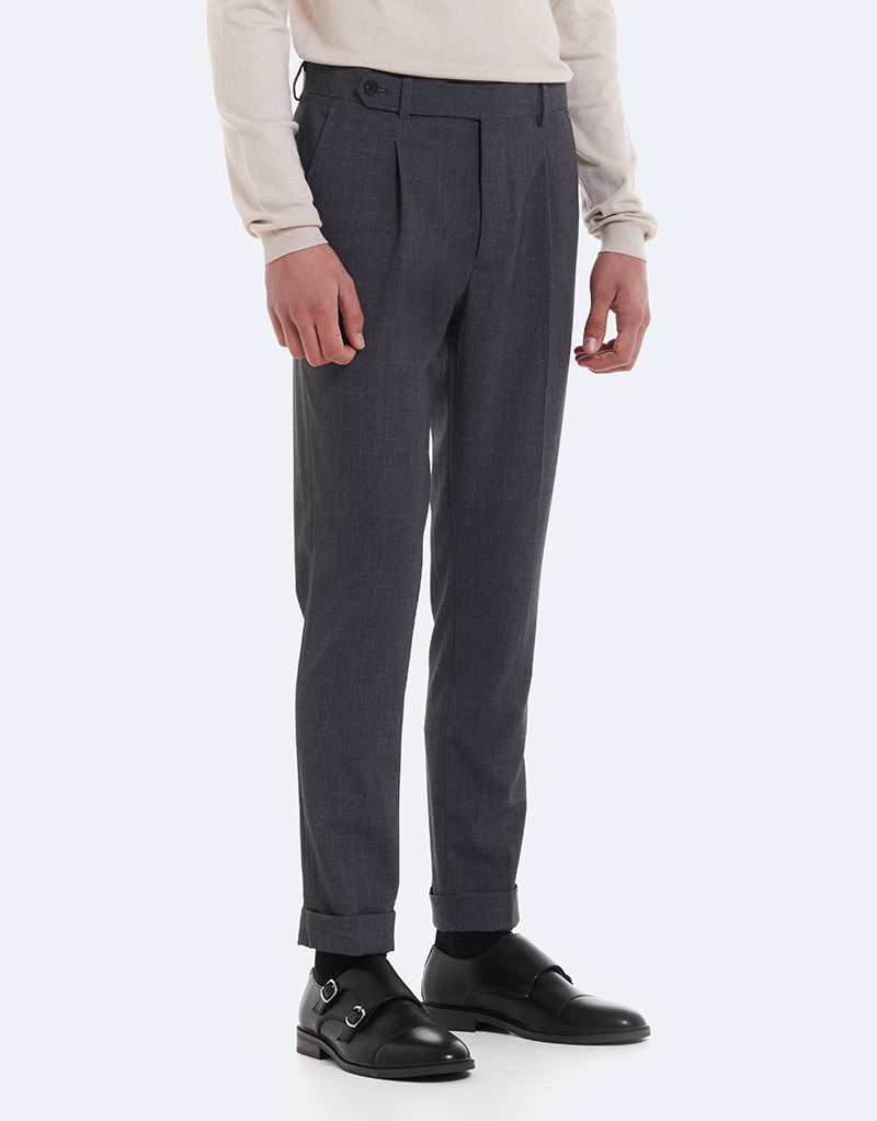 Cropped-fit dress pants with a pleated cut. Zip and button closure. Side and back pockets. Adjustable waist with belt loops. Turn-up hems.
