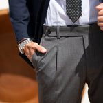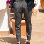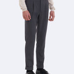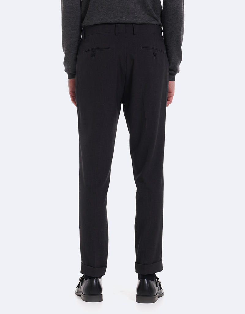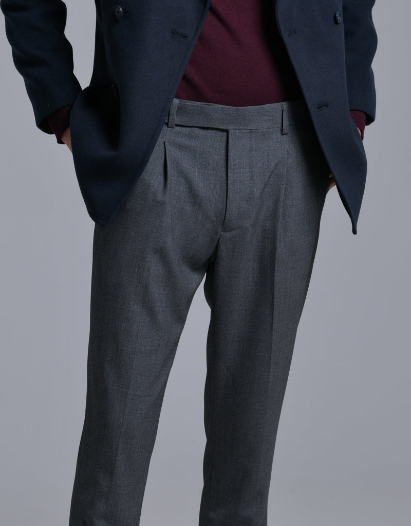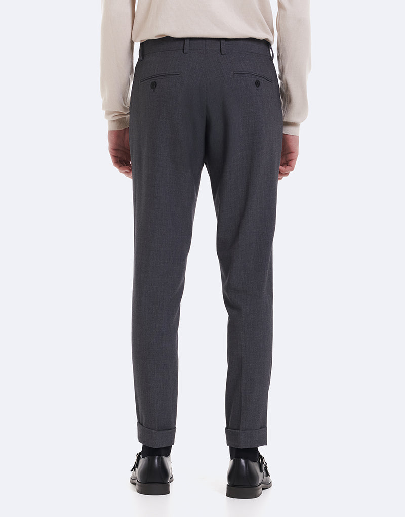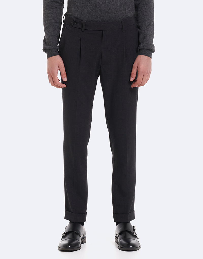 Cropped-fit dress pants with a pleated cut. Zip and button closure. Side and back pockets. Adjustable waist with belt loops. Turn-up hems.