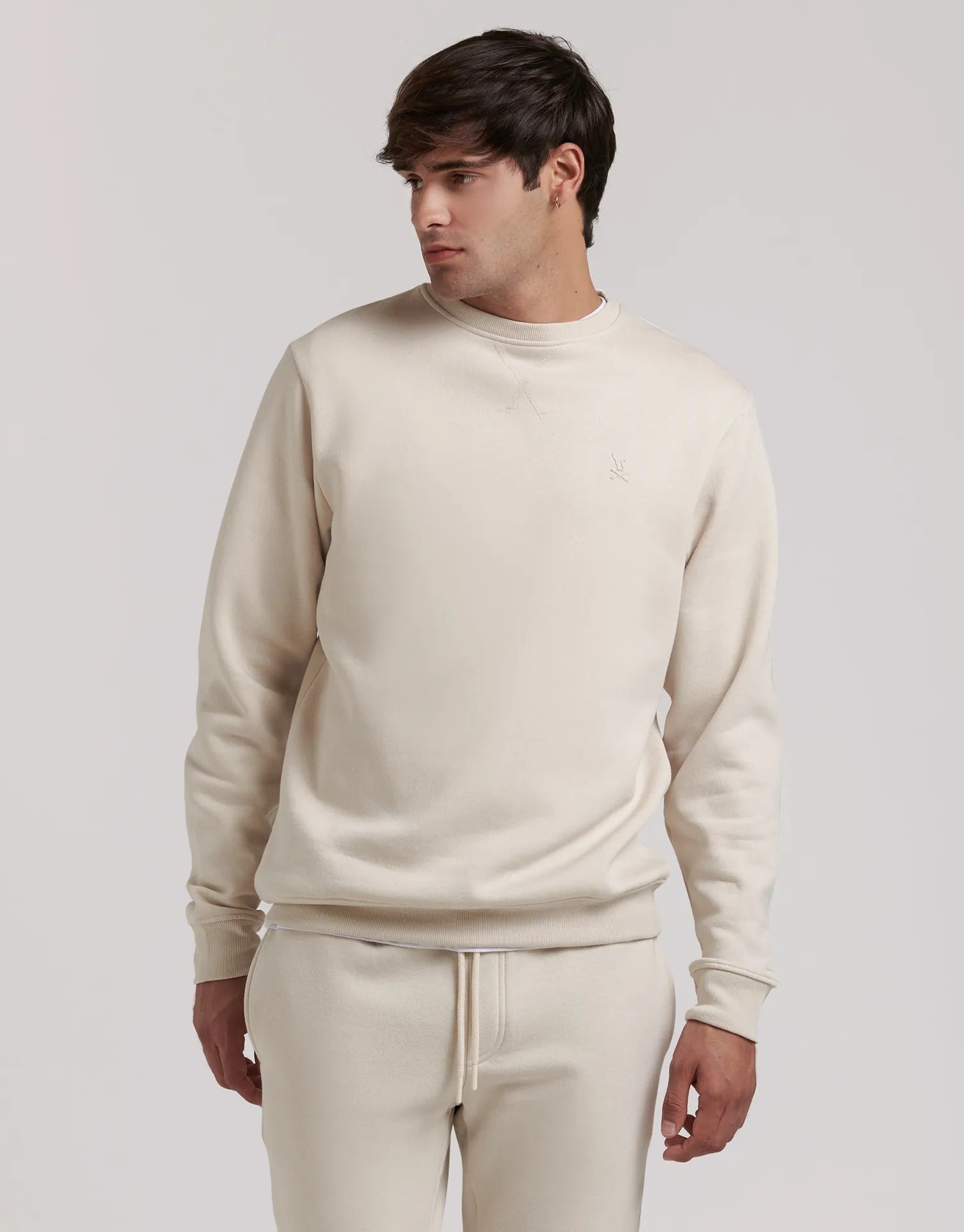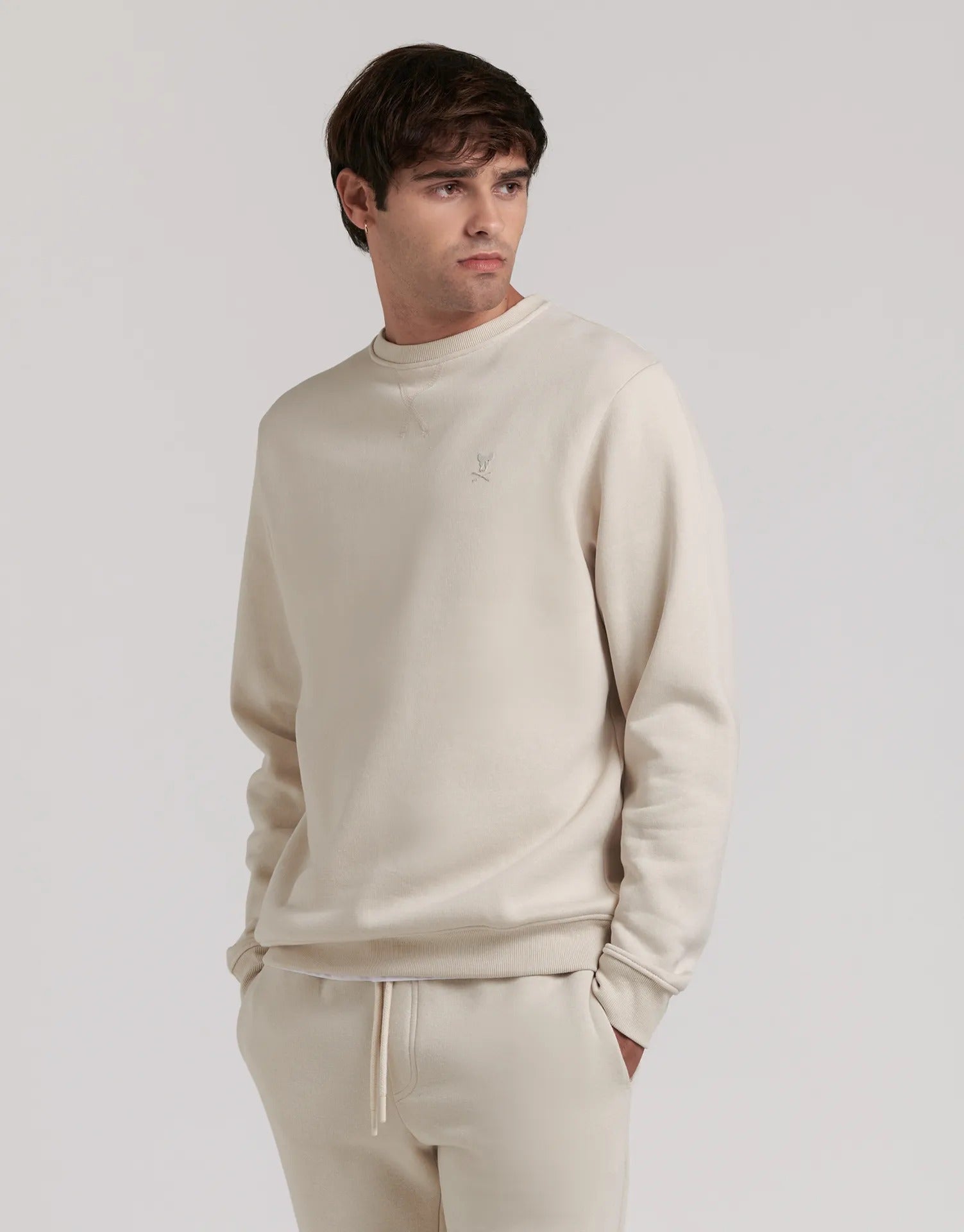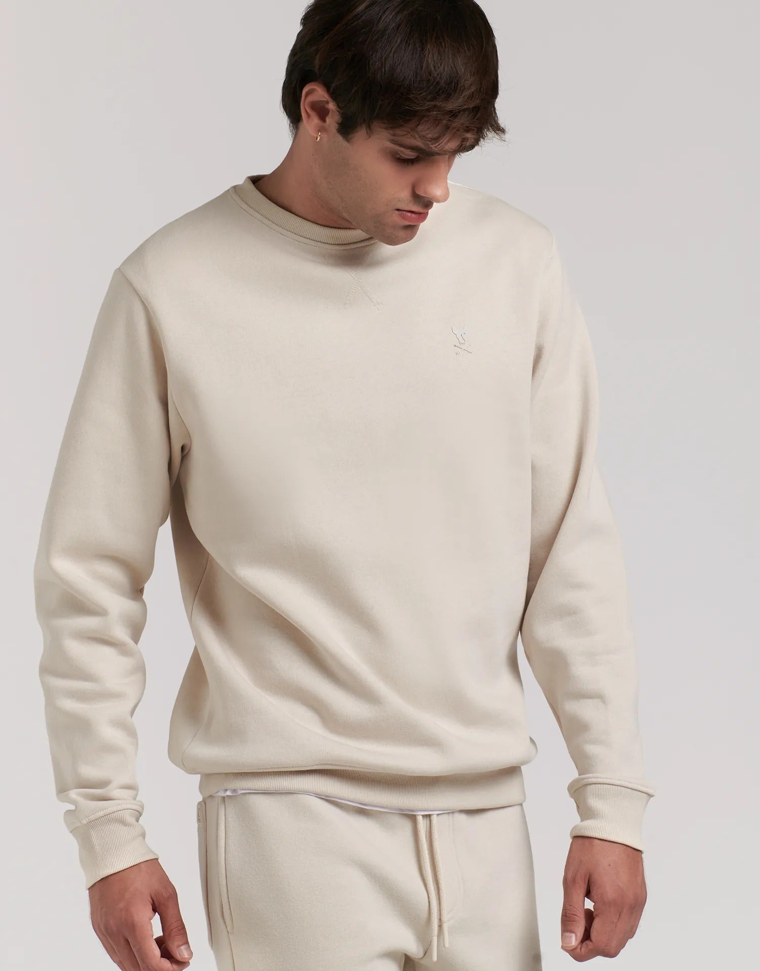 Eleva tus básicos con esta sudadera lisa de hombre con logo minimalista en el pecho. Un diseño limpio y versátil en color arena que combina con todo y te acompaña del sofá a la calle con total comodidad.