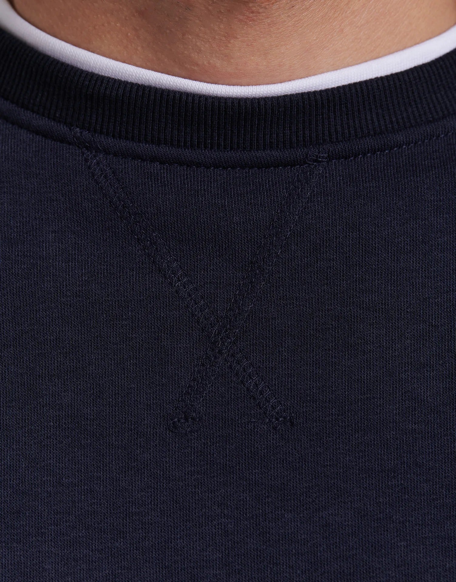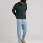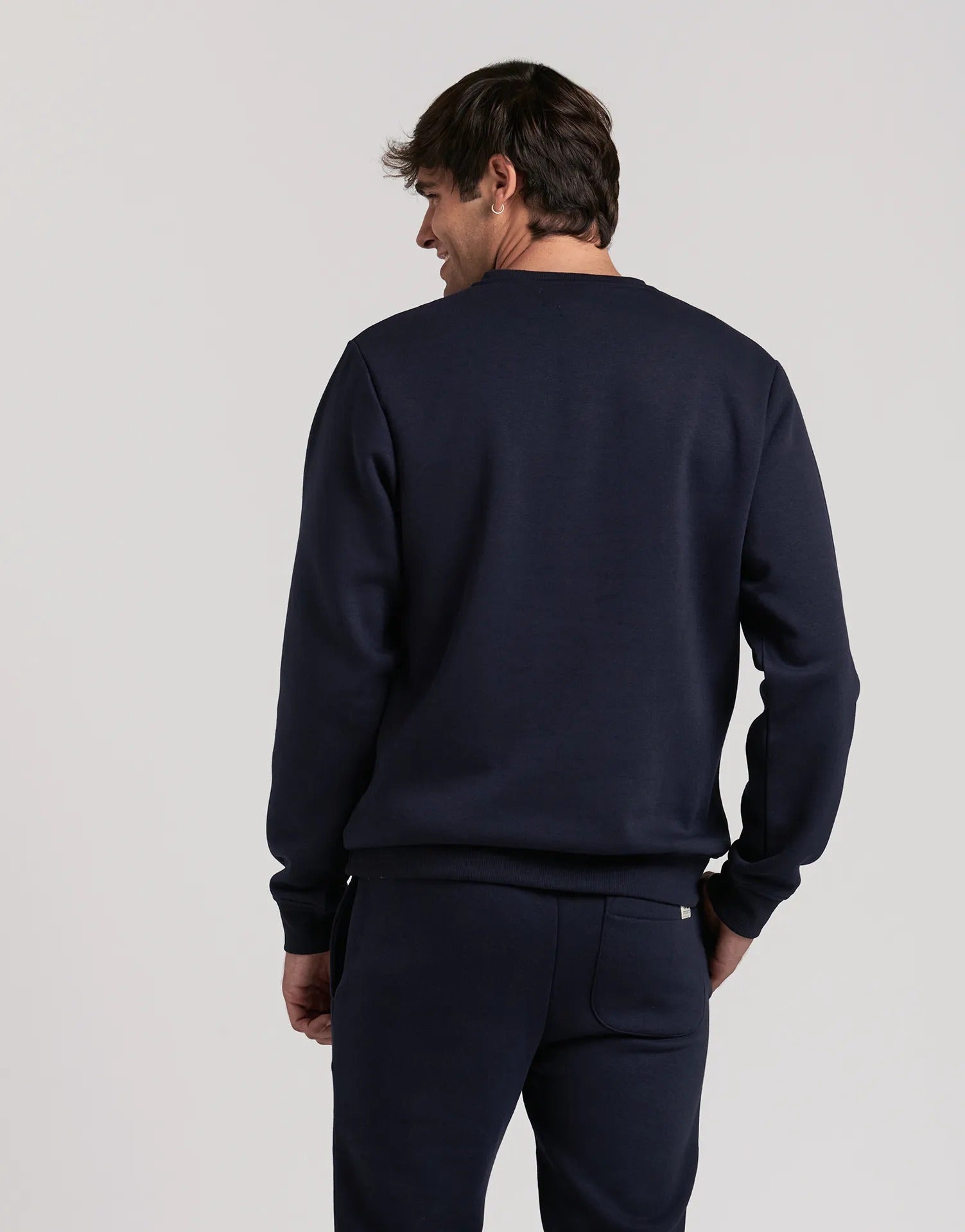 - Cuello redondo con detalle en V, y puños y bajo de canalé para mejor ajuste.