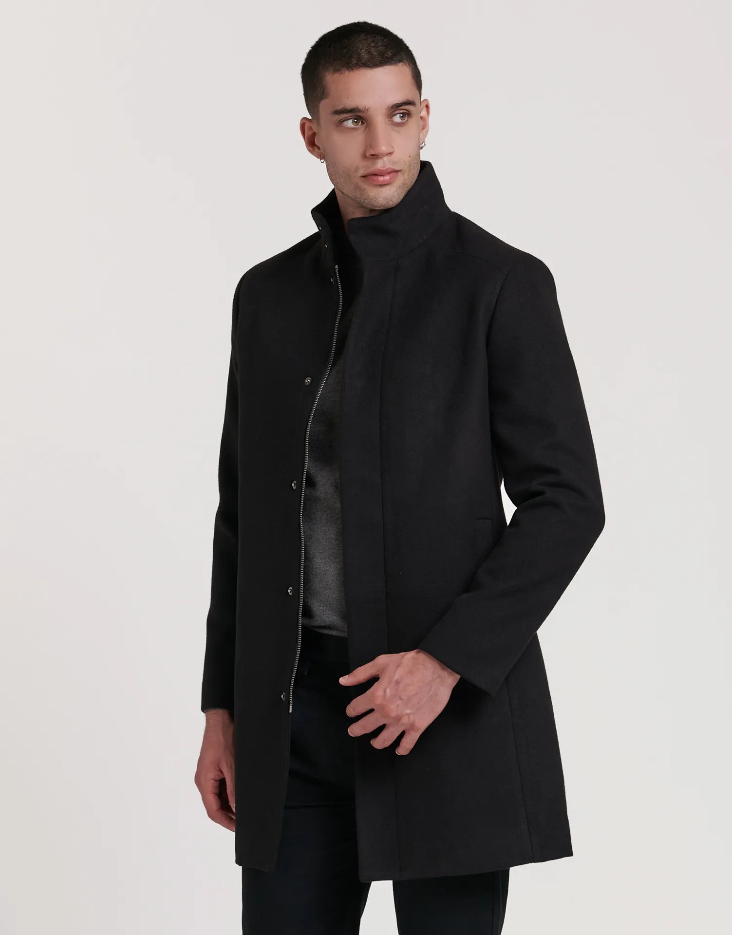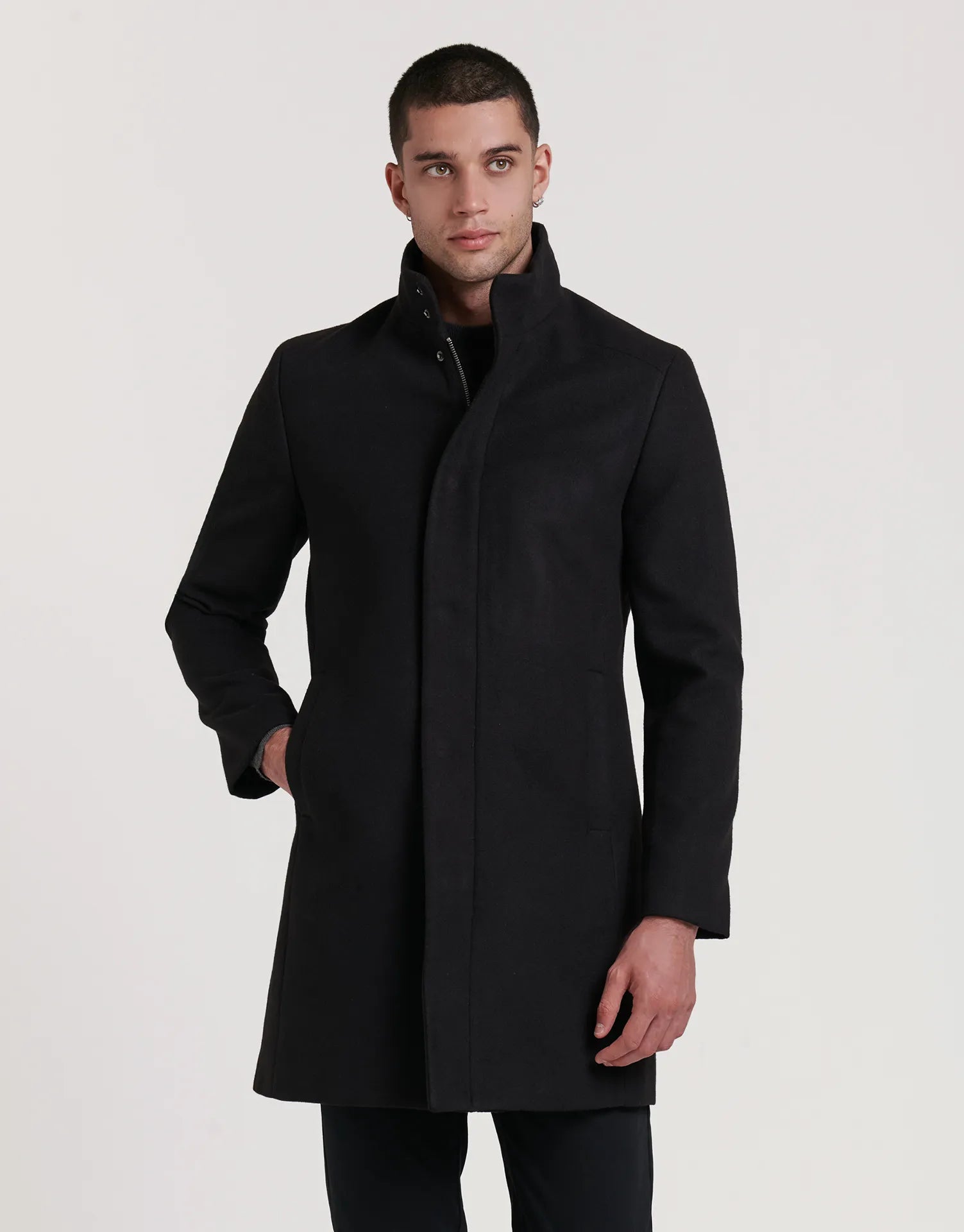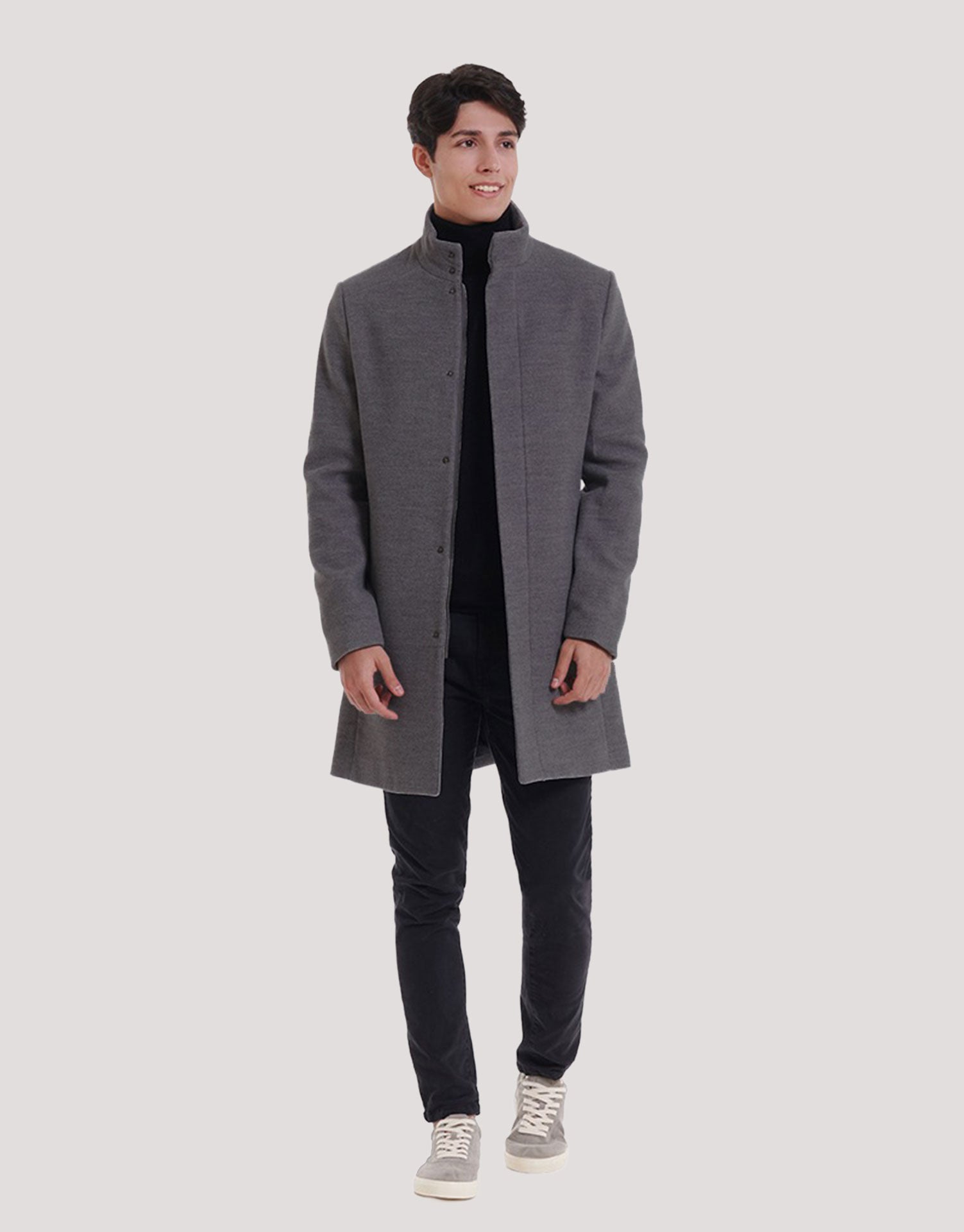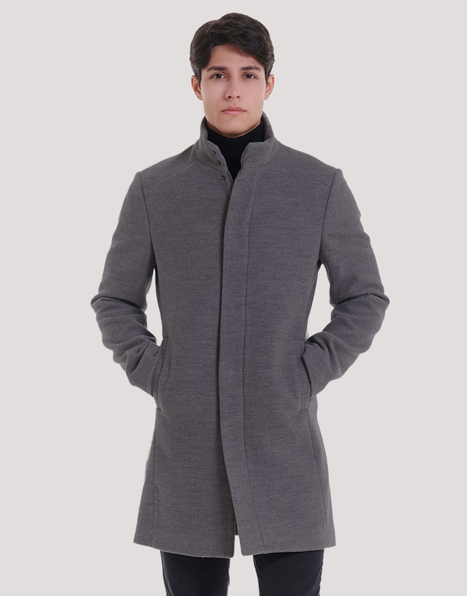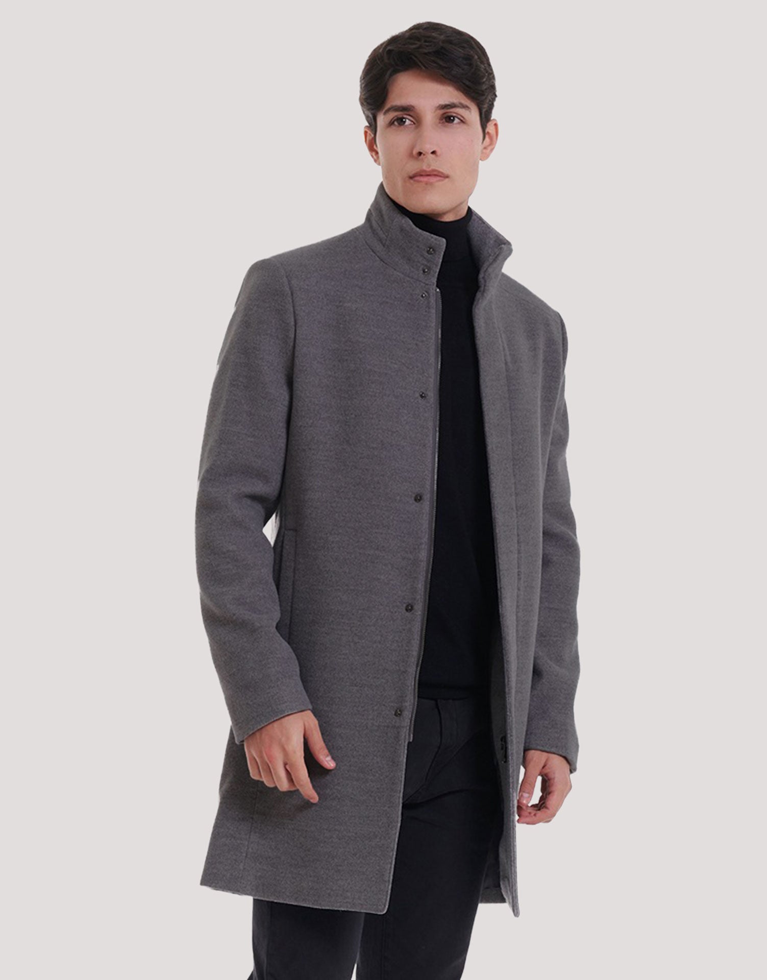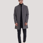 Abrigo largo de paño con cremallera para hombre