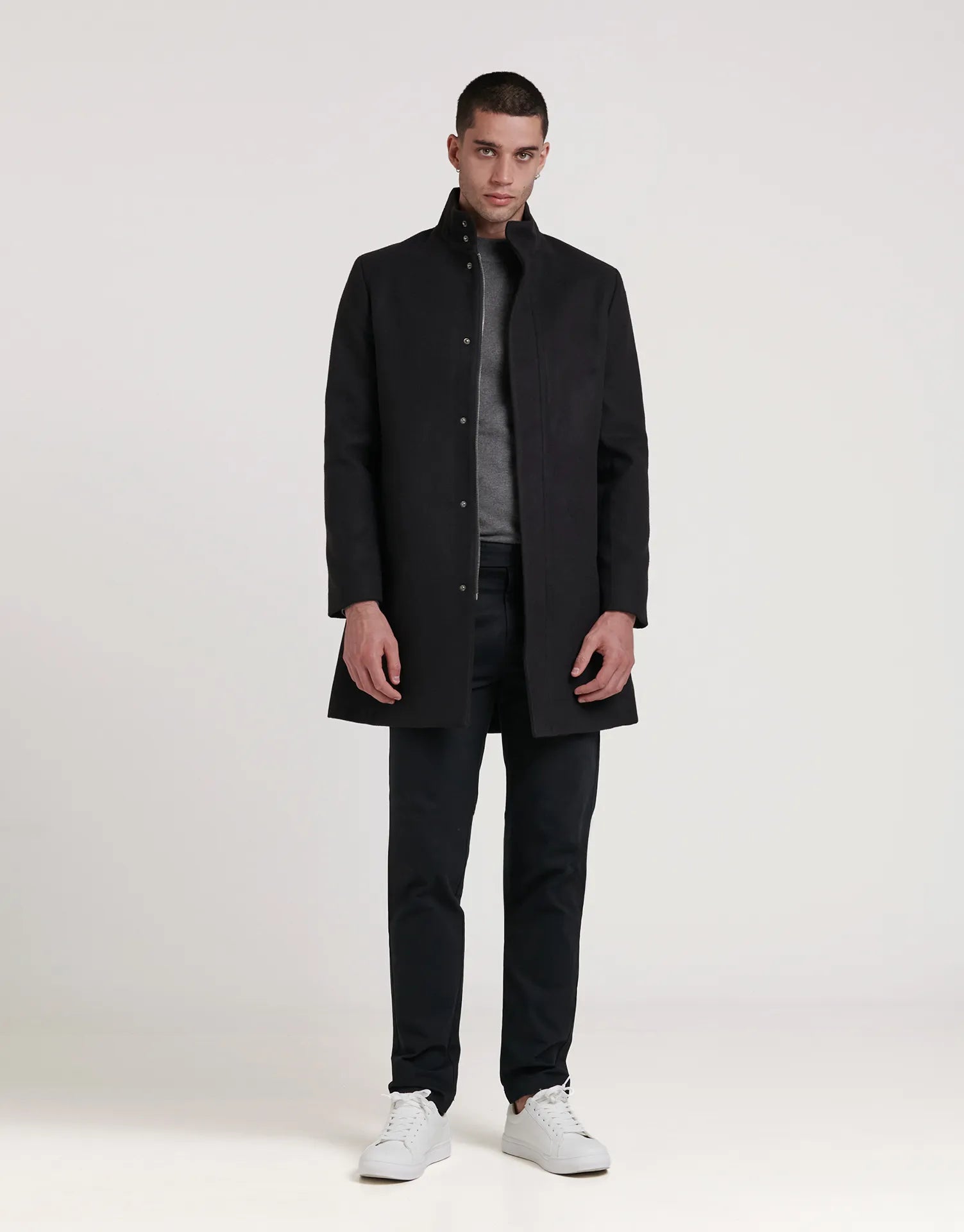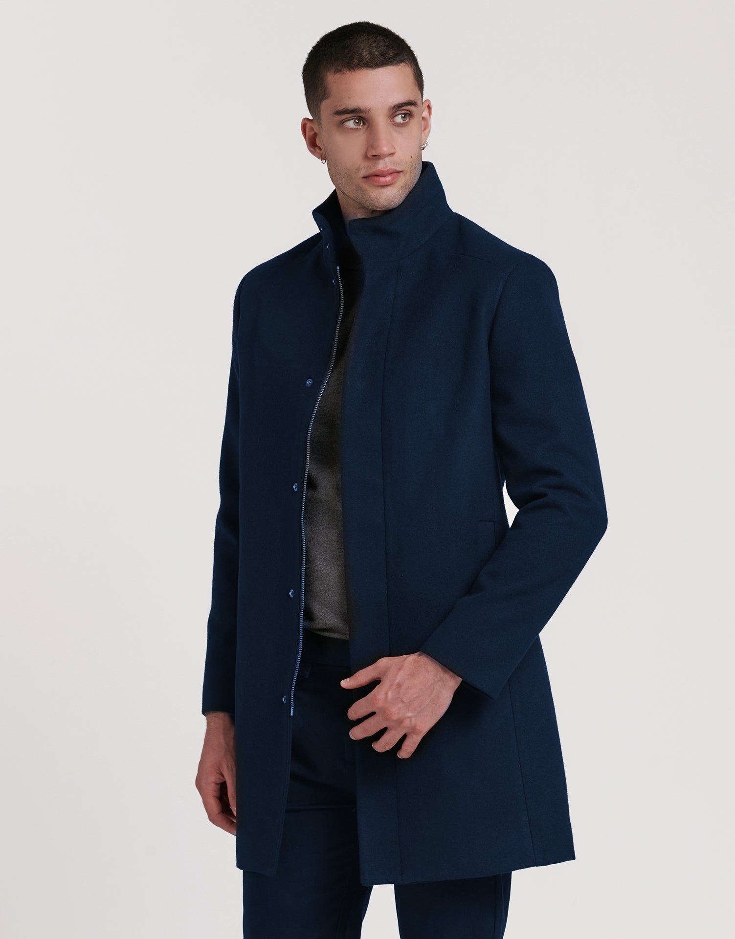 El abrigo largo de paño con cremallera combina elegancia y funcionalidad en una prenda pensada para ofrecer estilo y protección en los días más fríos. Su diseño limpio, con cierre oculto y cuello alto, proyecta una imagen moderna y sofisticada.