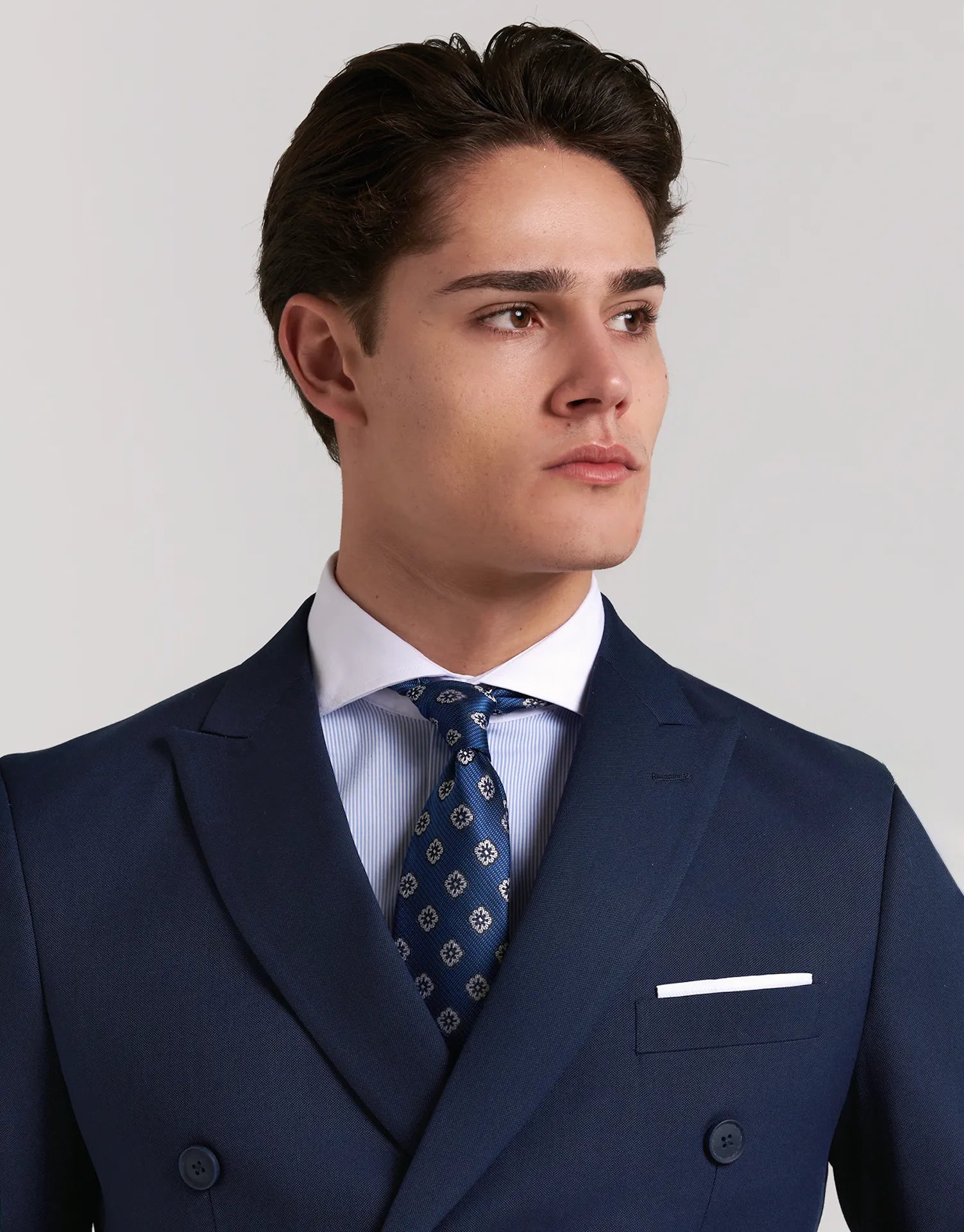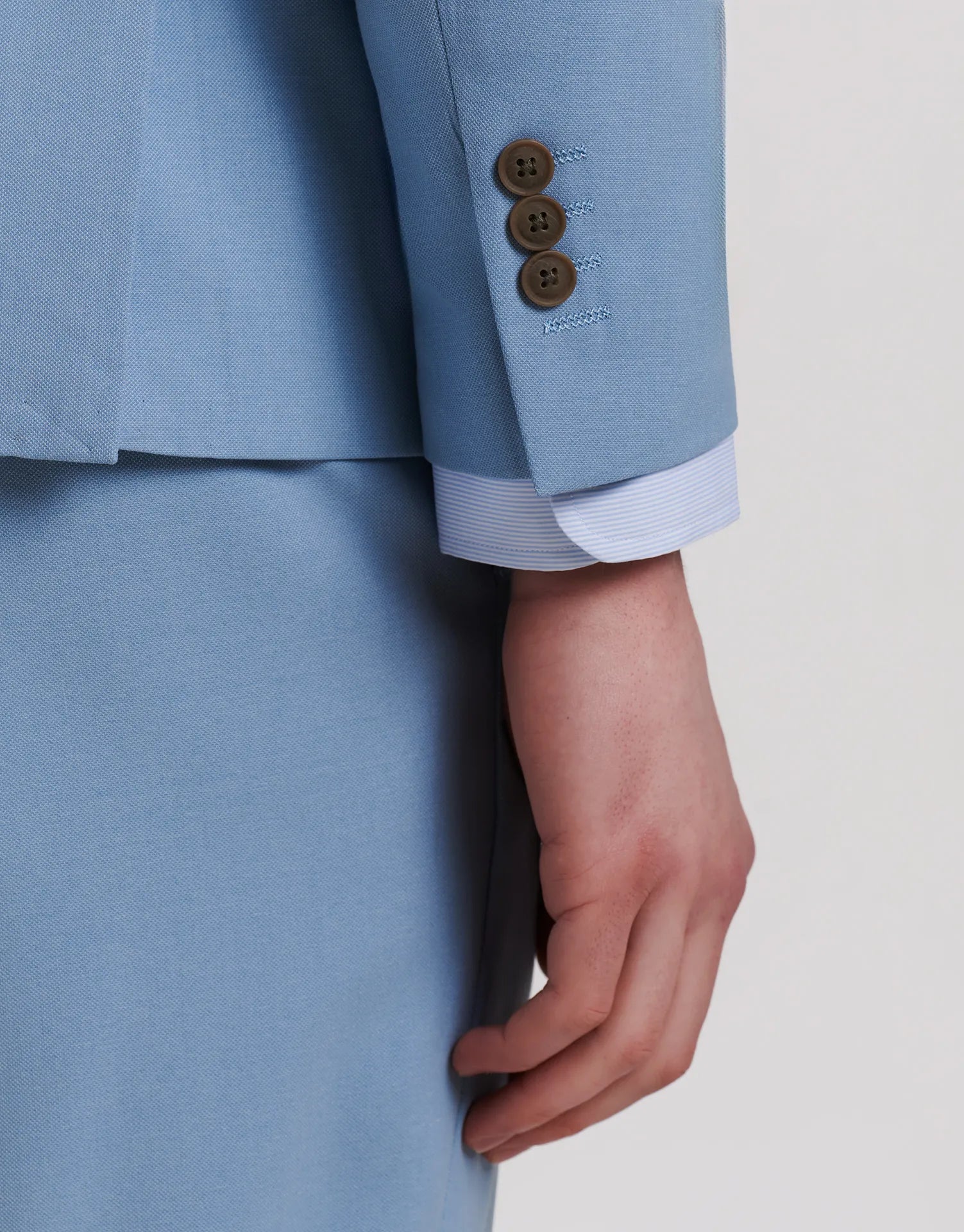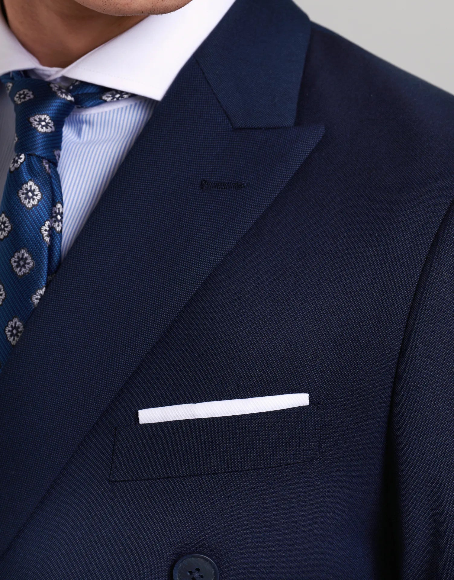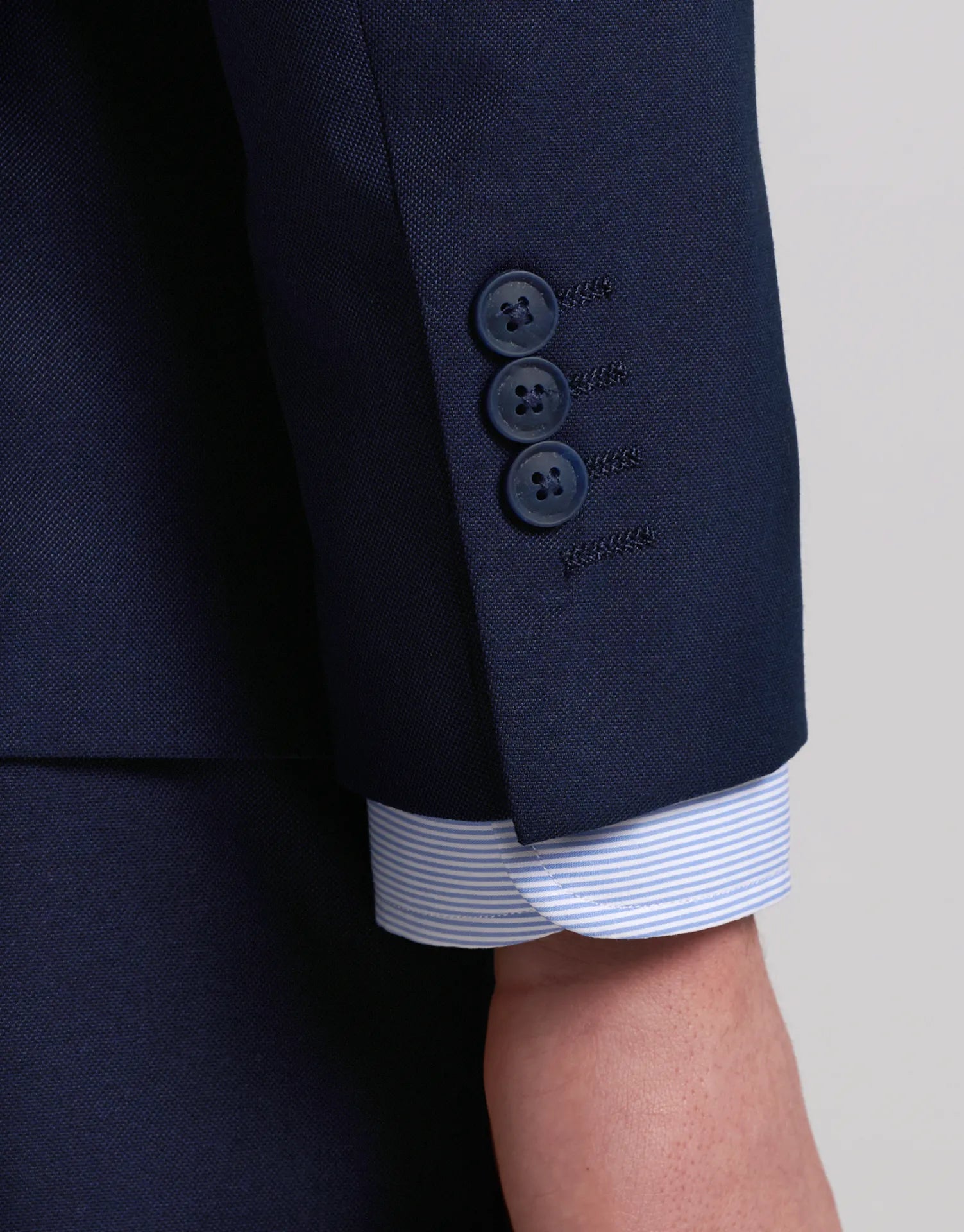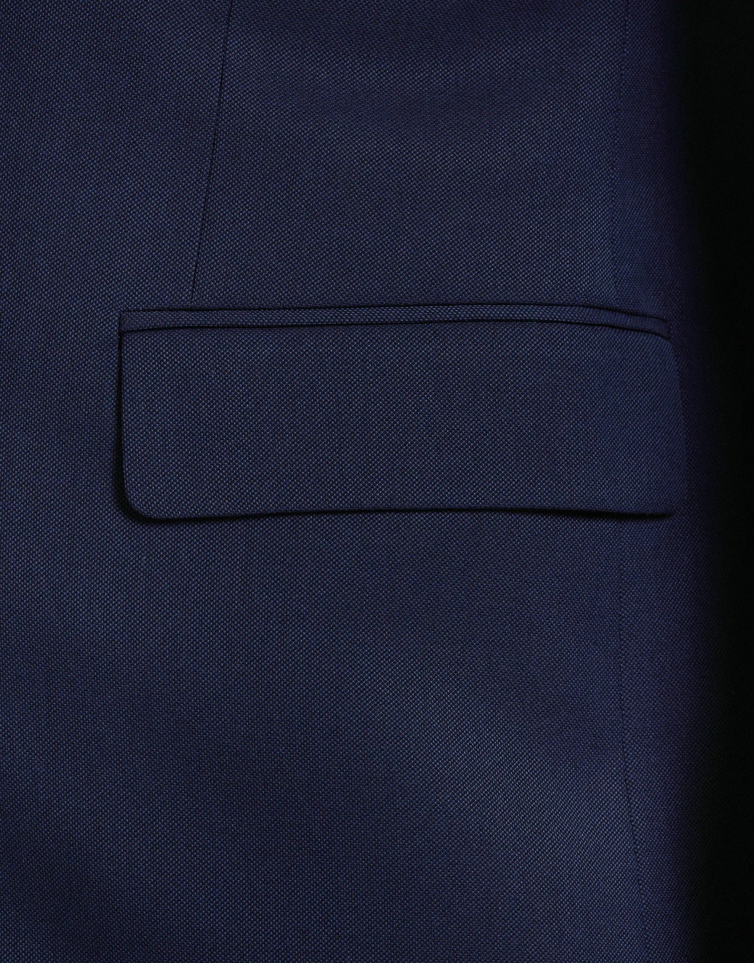 - Bolsillos de solapa frontales y bolsillo superior para pañuelo.