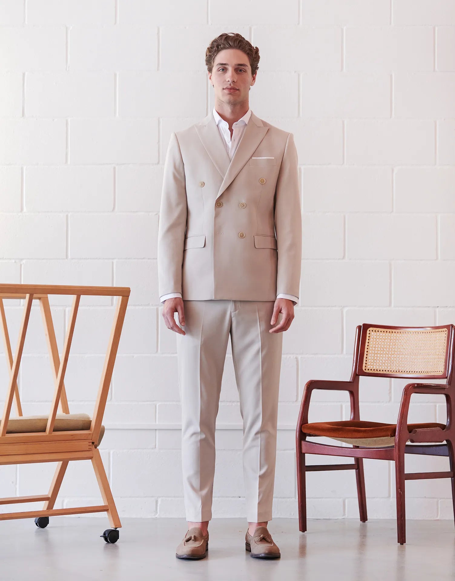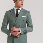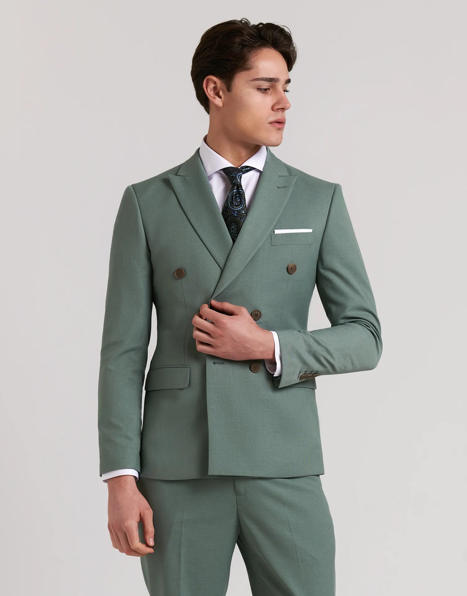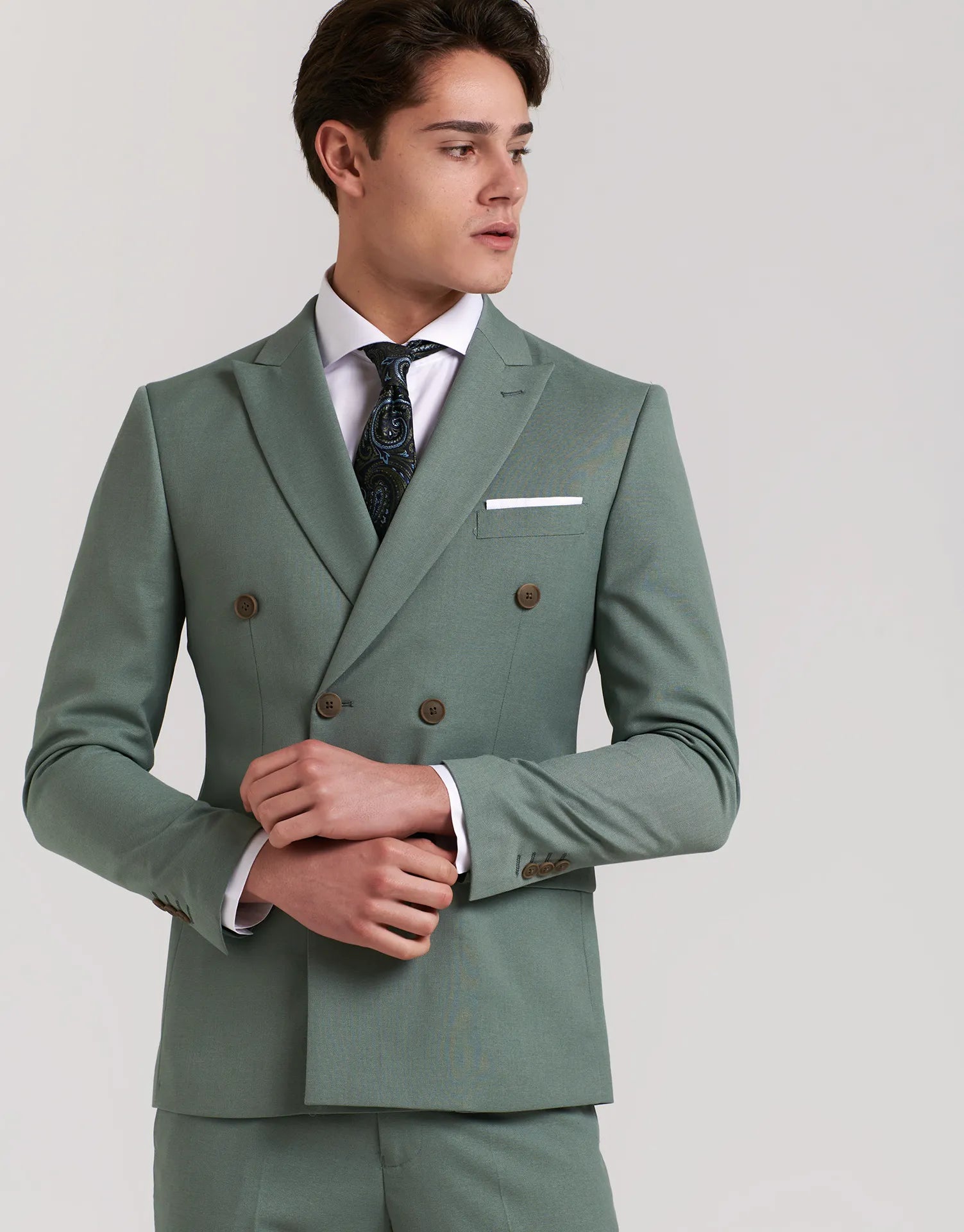La americana de traje cruzado Mezclilla es una prenda con carácter, pensada para quienes buscan diferenciarse sin renunciar a la elegancia. Su diseño cruzado aporta presencia y sofisticación, mientras que el tejido en tono verde suaviza el conjunto con un aire moderno y actual.