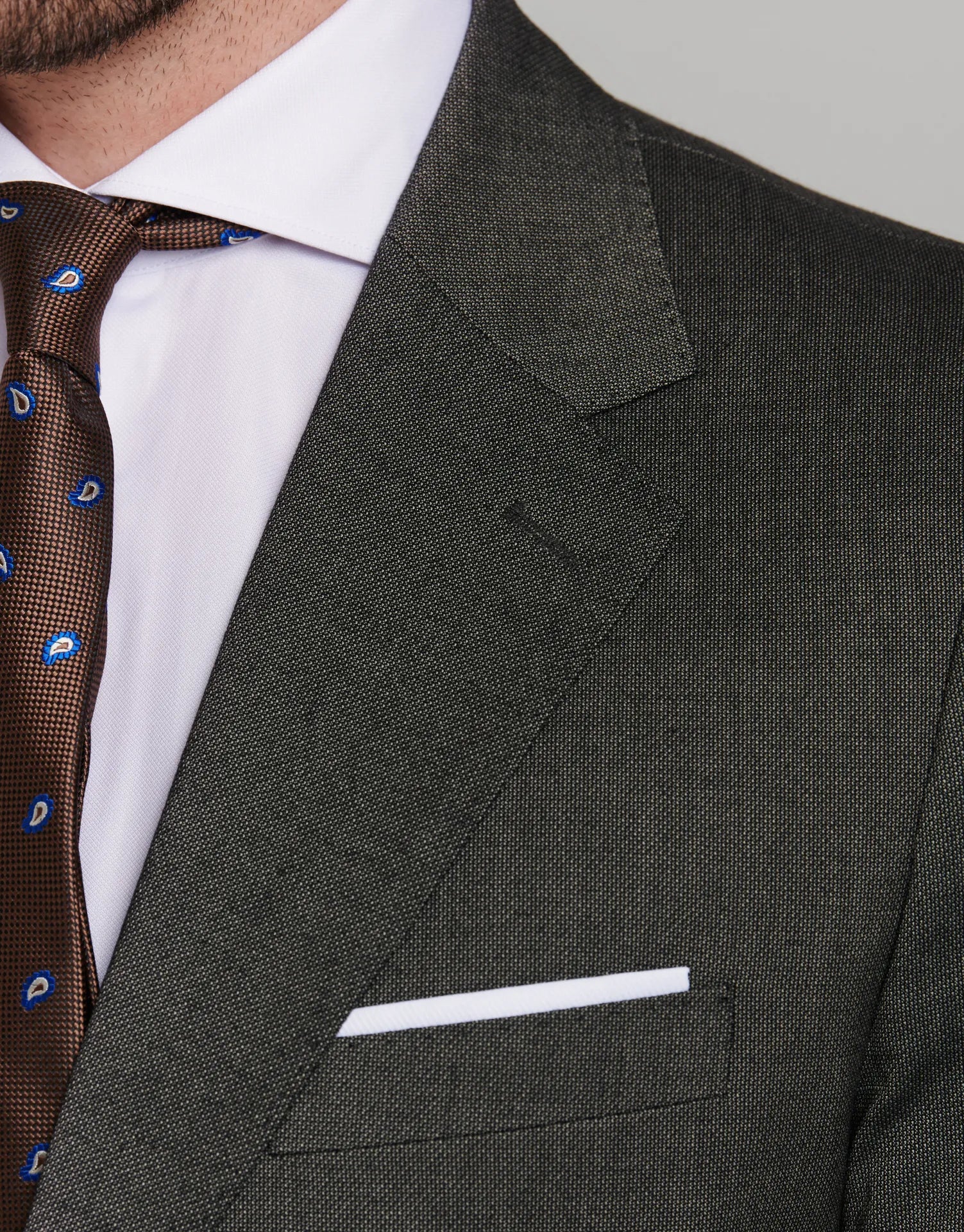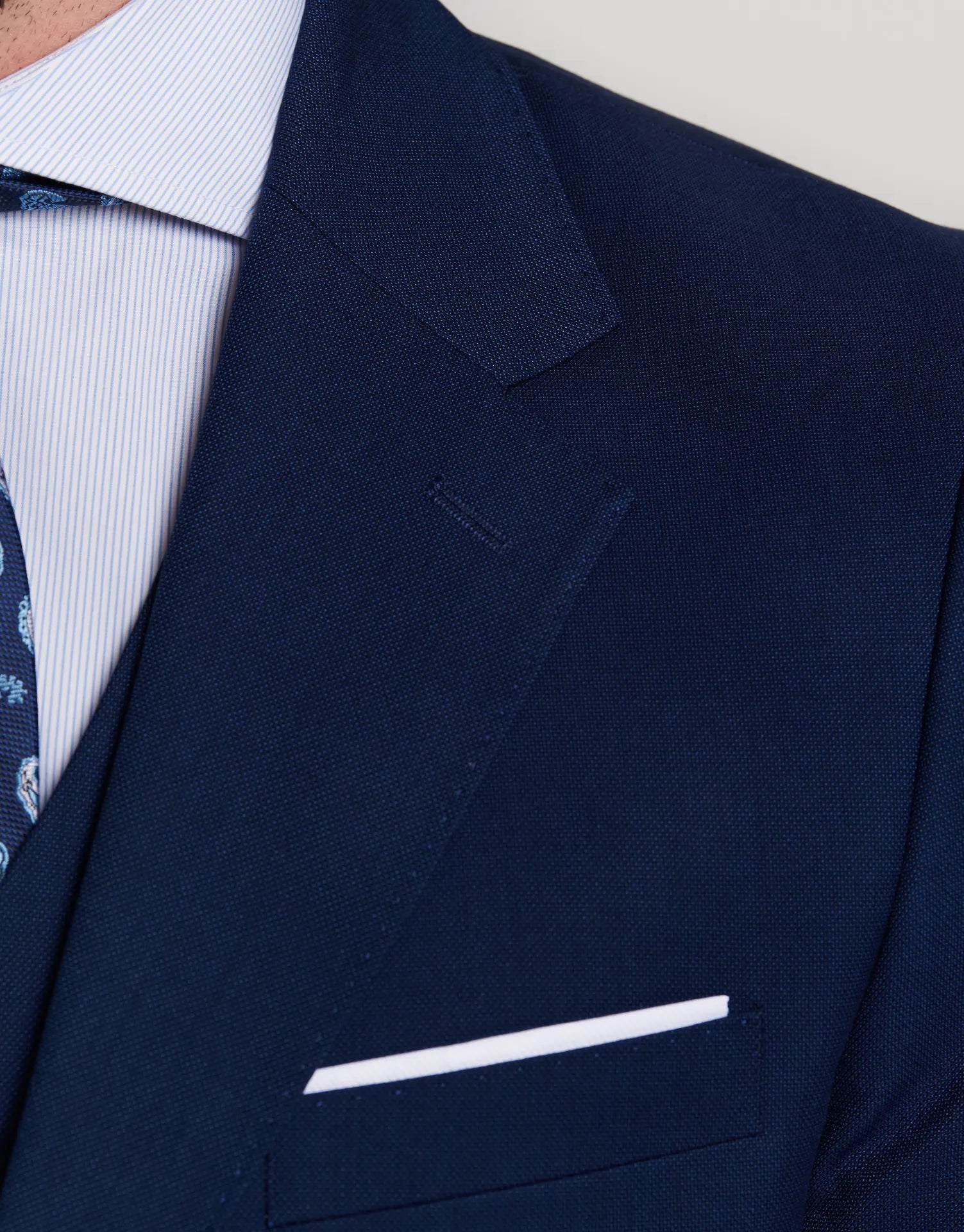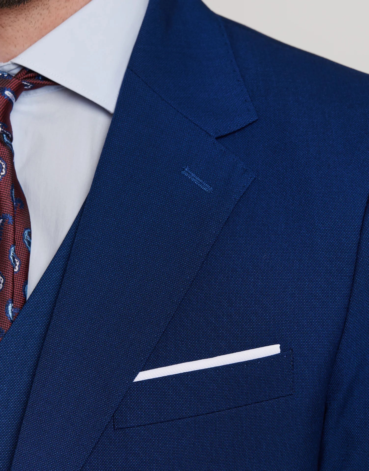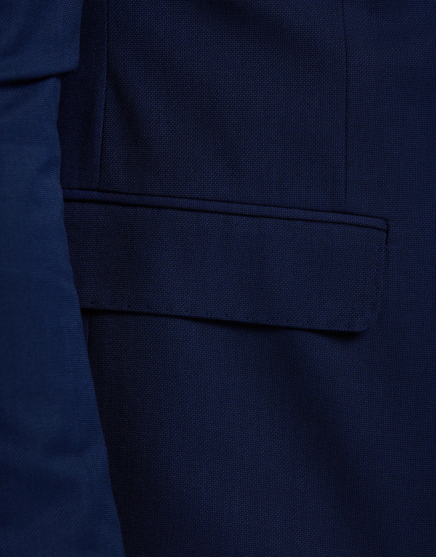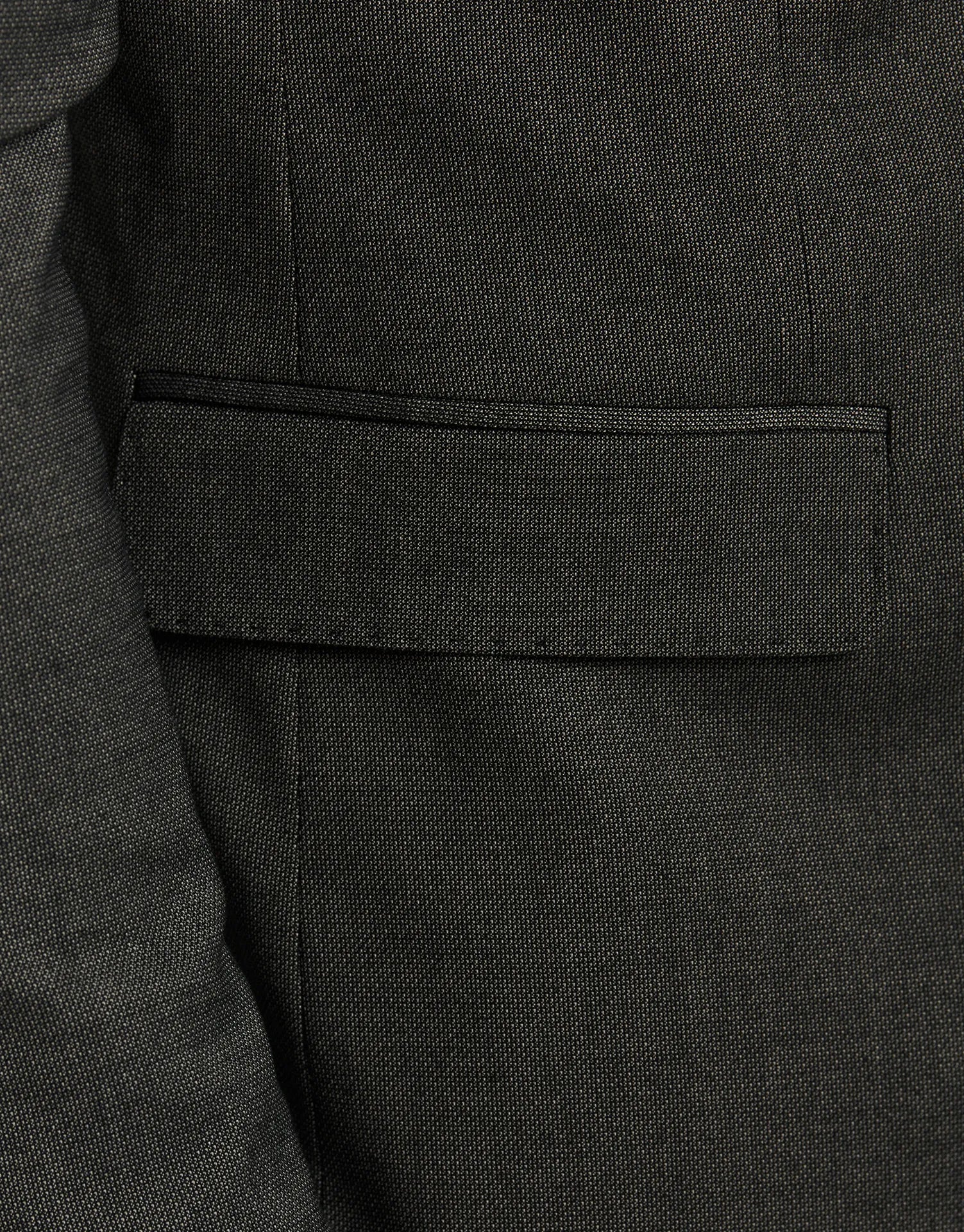 Americana de corte entallado confeccionada en tejido ojo de perdiz, un acabado sutil que aporta textura y profundidad al diseño. Presenta un cierre de dos botones, solapa clásica, bolsillos con solapa y un pañuelo incluido en el bolsillo superior que eleva el look con un toque distintivo. Diseñada para ofrecer una silueta limpia y actual, esta prenda es ideal tanto para eventos formales como para un estilo business impecable.