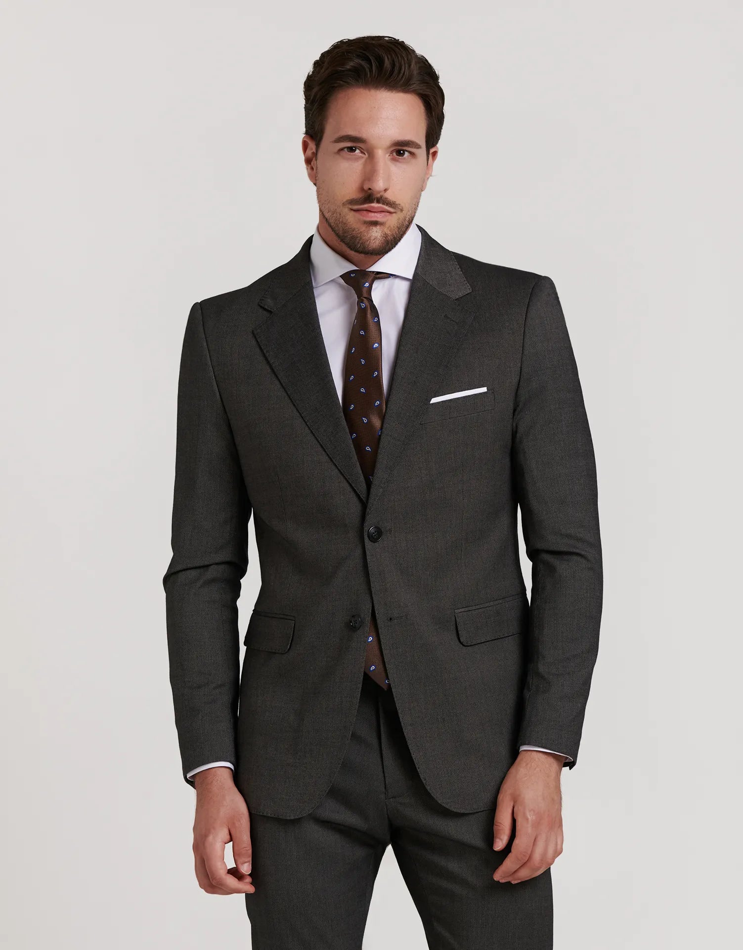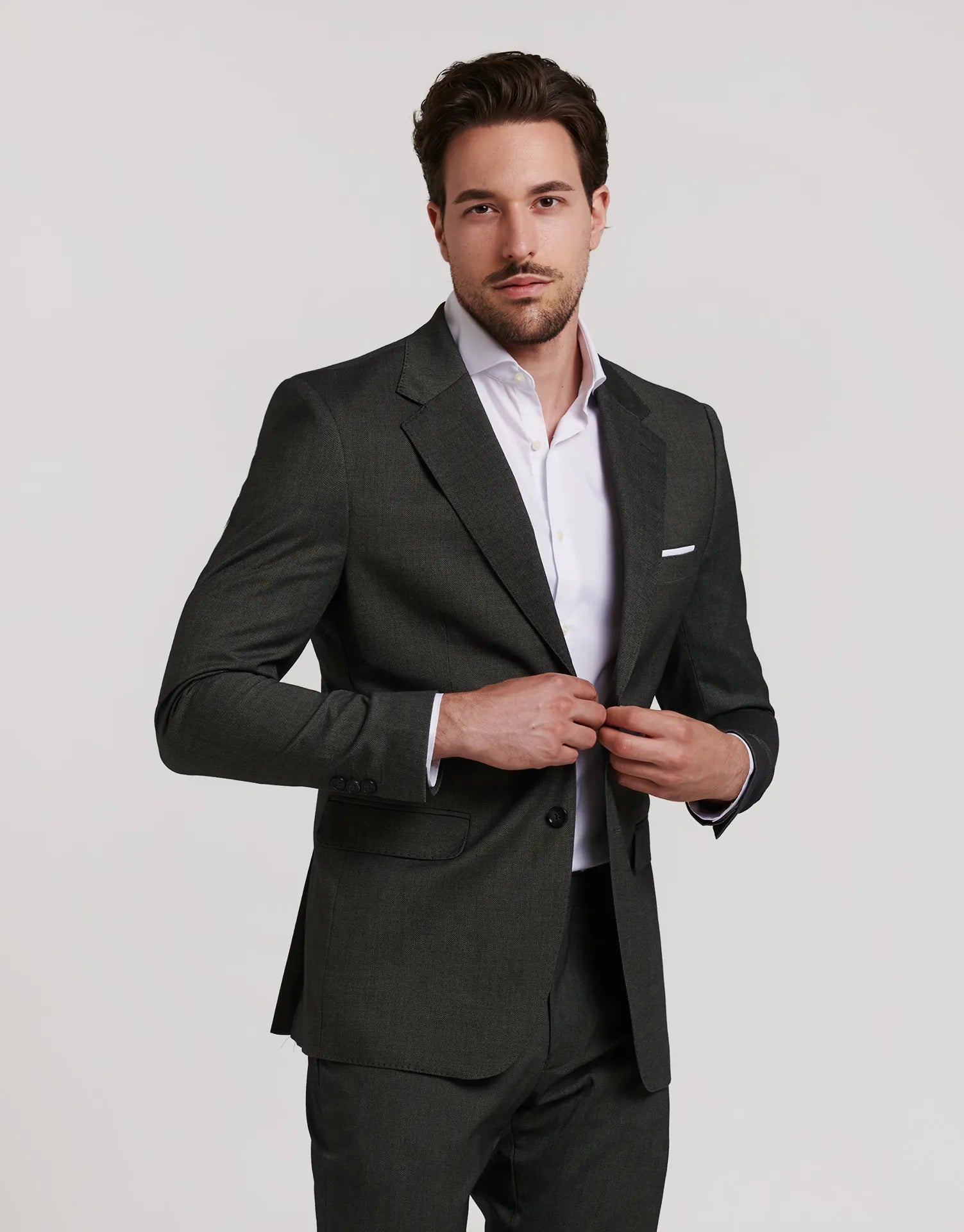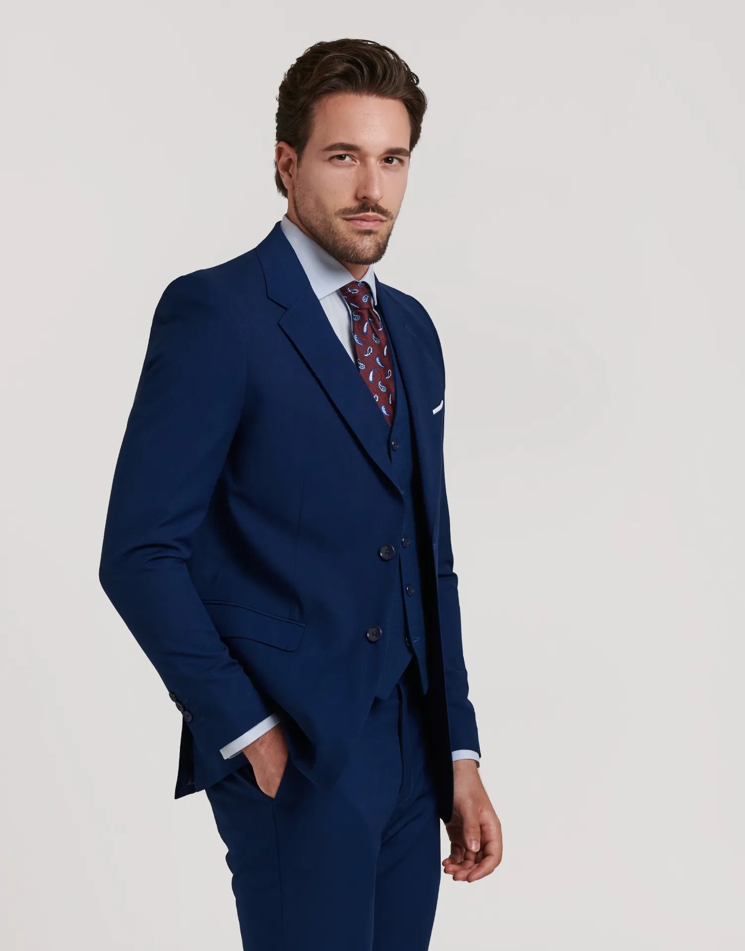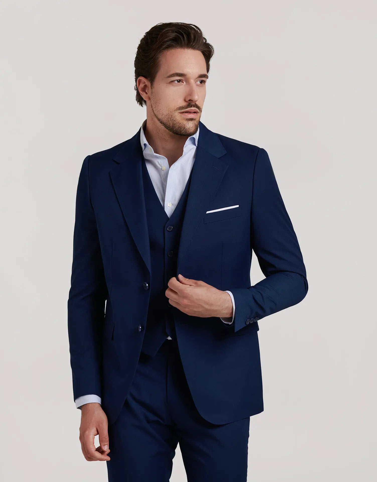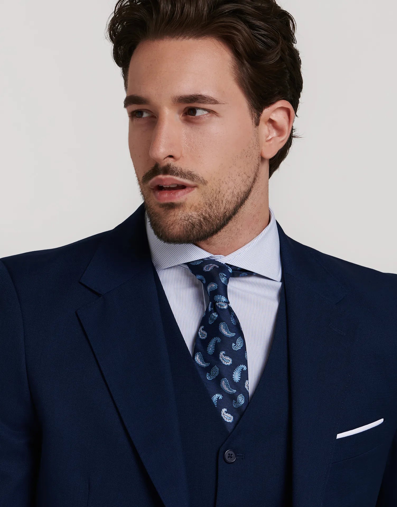 Americana de corte entallado confeccionada en tejido ojo de perdiz, un acabado sutil que aporta textura y profundidad al diseño. Presenta un cierre de dos botones, solapa clásica, bolsillos con solapa y un pañuelo incluido en el bolsillo superior que eleva el look con un toque distintivo. Diseñada para ofrecer una silueta limpia y actual, esta prenda es ideal tanto para eventos formales como para un estilo business impecable.