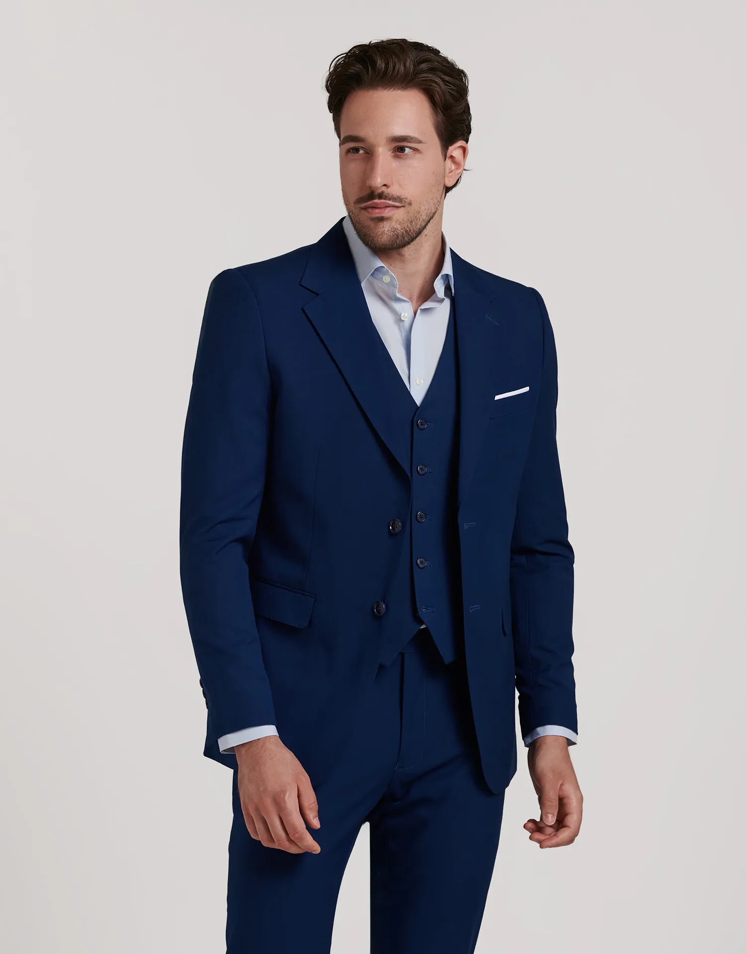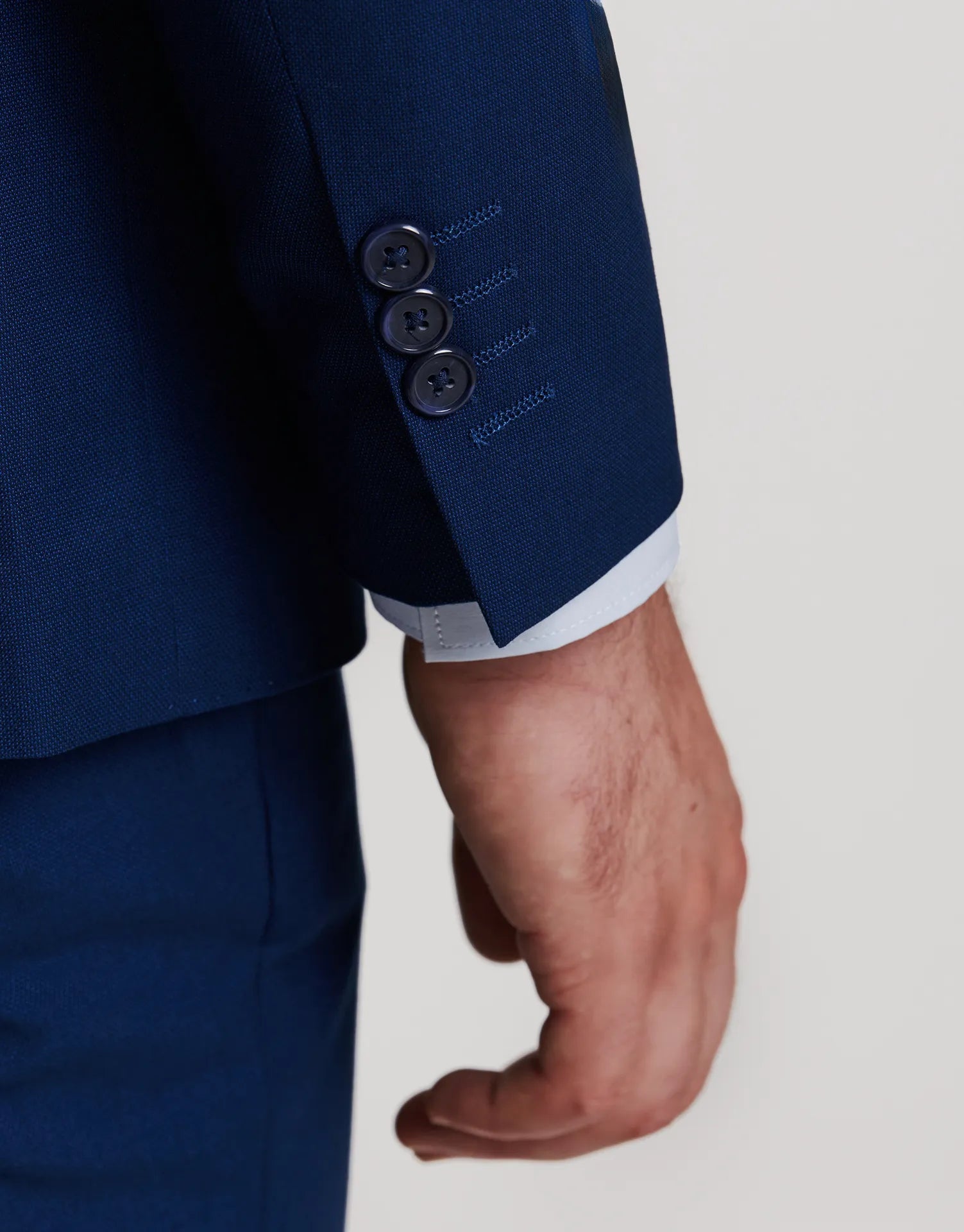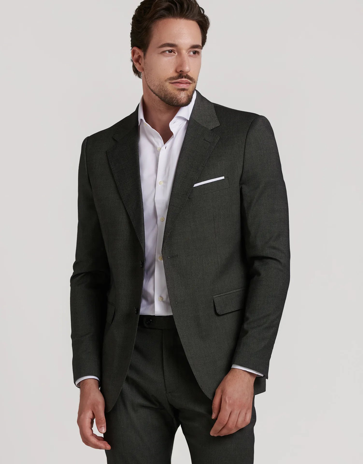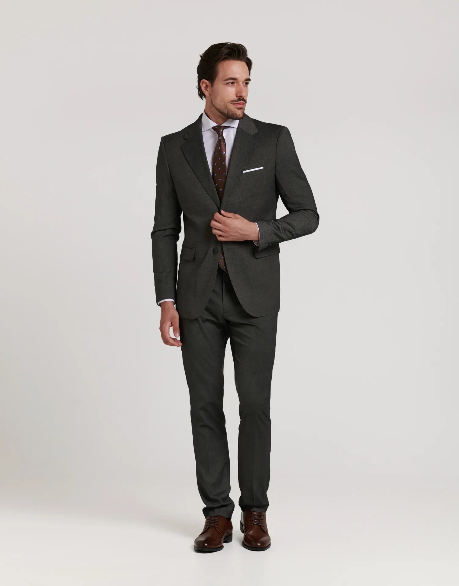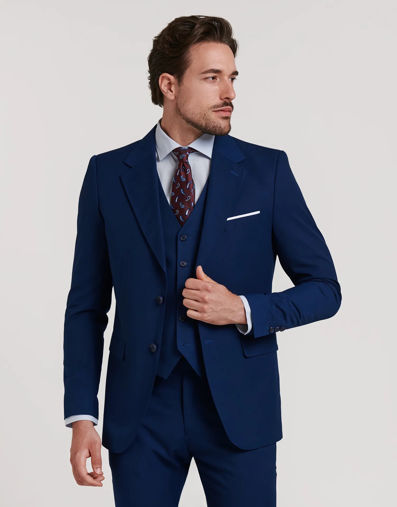 Americana de corte entallado confeccionada en tejido ojo de perdiz, un acabado sutil que aporta textura y profundidad al diseño. Presenta un cierre de dos botones, solapa clásica, bolsillos con solapa y un pañuelo incluido en el bolsillo superior que eleva el look con un toque distintivo. Diseñada para ofrecer una silueta limpia y actual, esta prenda es ideal tanto para eventos formales como para un estilo business impecable.