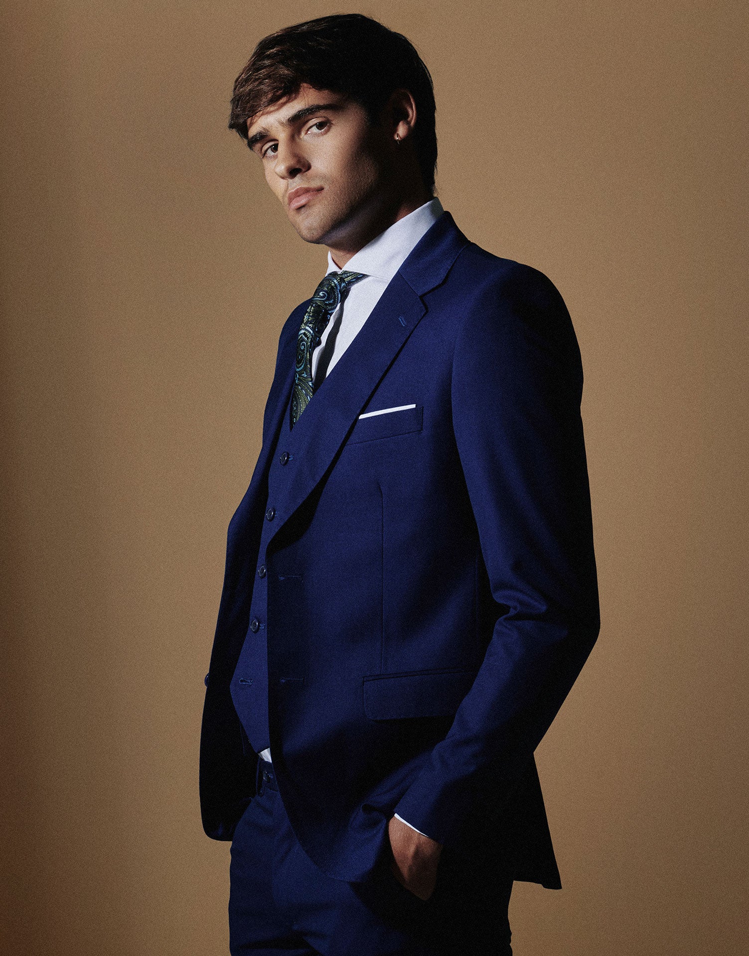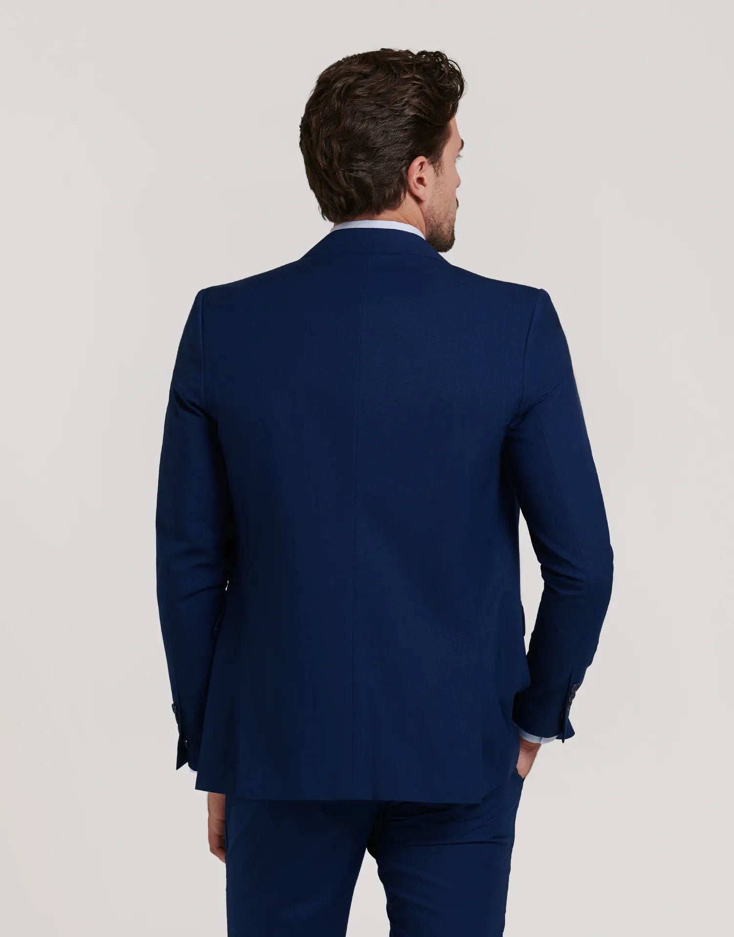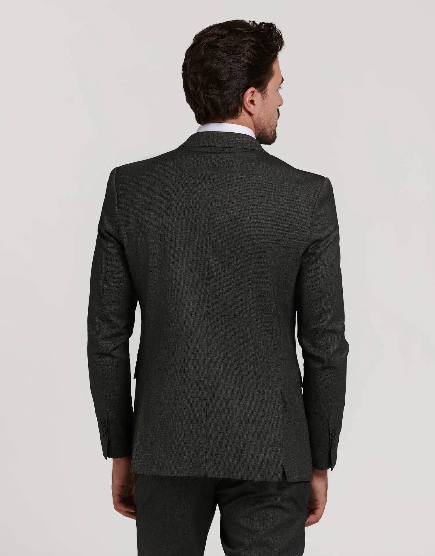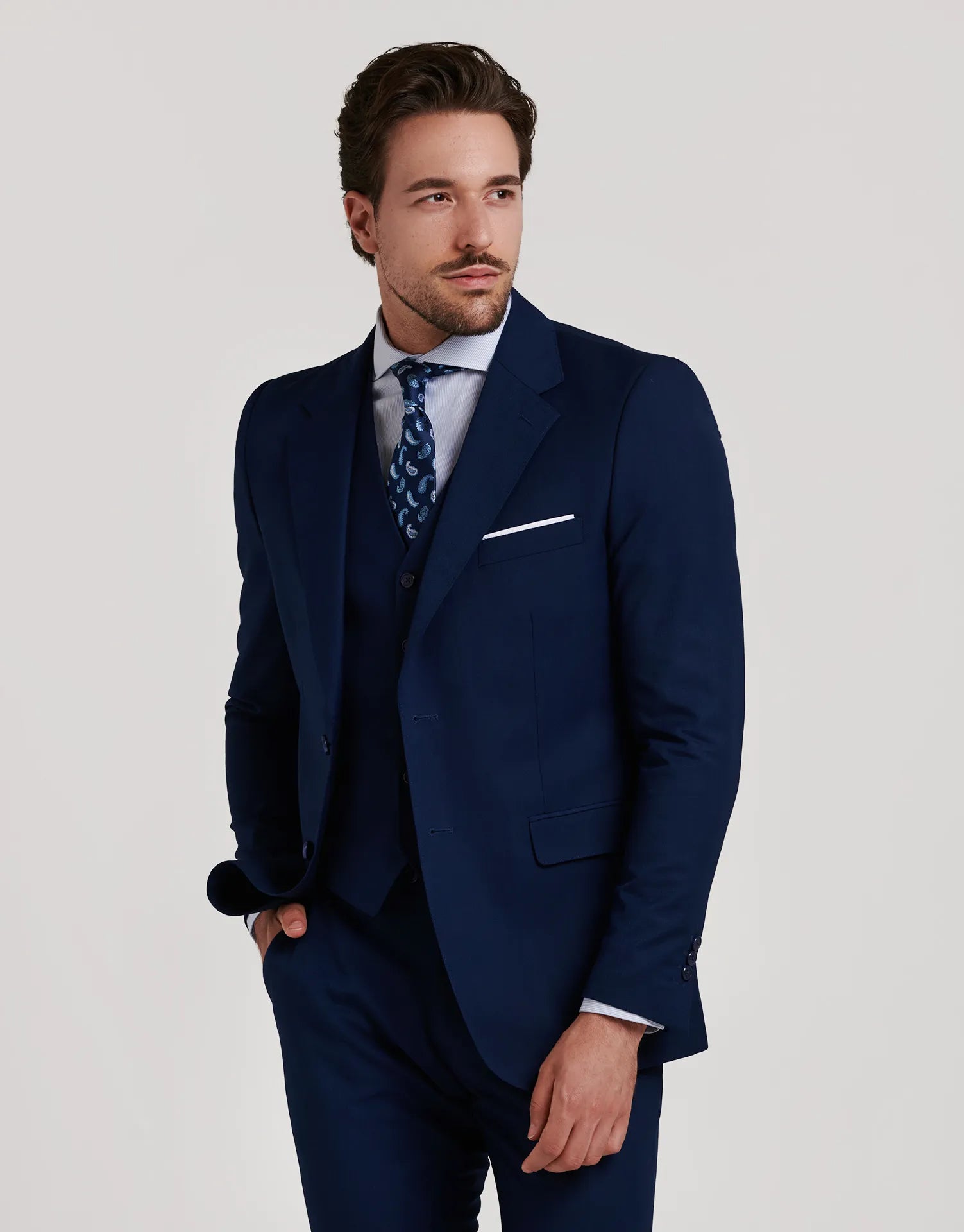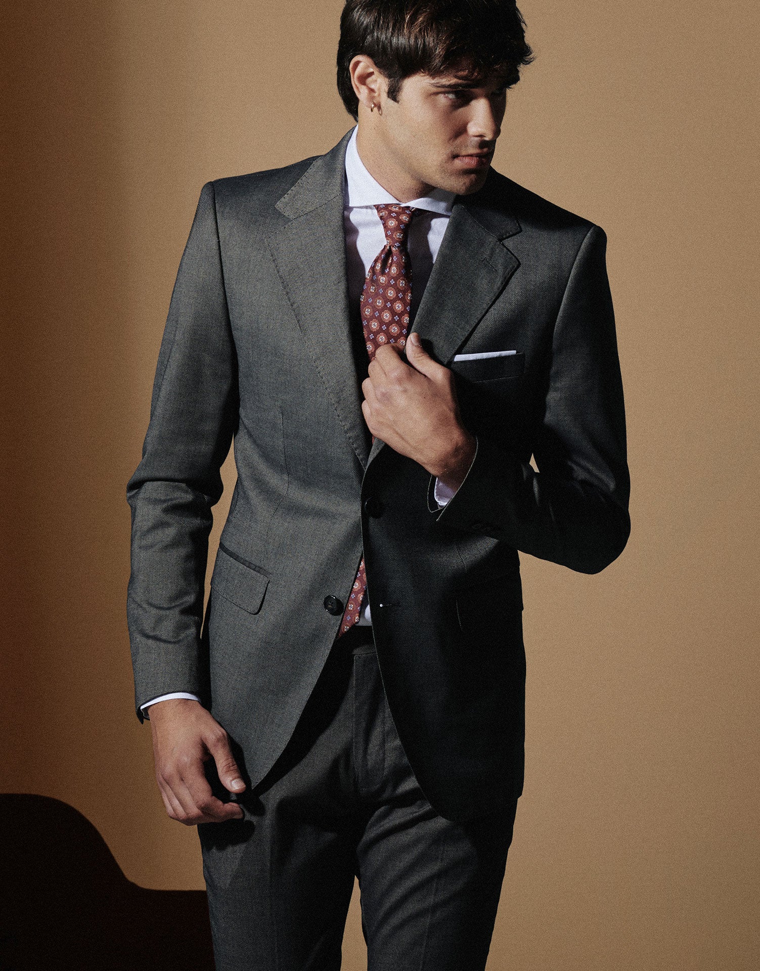 Americana de corte entallado confeccionada en tejido ojo de perdiz, un acabado sutil que aporta textura y profundidad al diseño. Presenta un cierre de dos botones, solapa clásica, bolsillos con solapa y un pañuelo incluido en el bolsillo superior que eleva el look con un toque distintivo. Diseñada para ofrecer una silueta limpia y actual, esta prenda es ideal tanto para eventos formales como para un estilo business impecable.