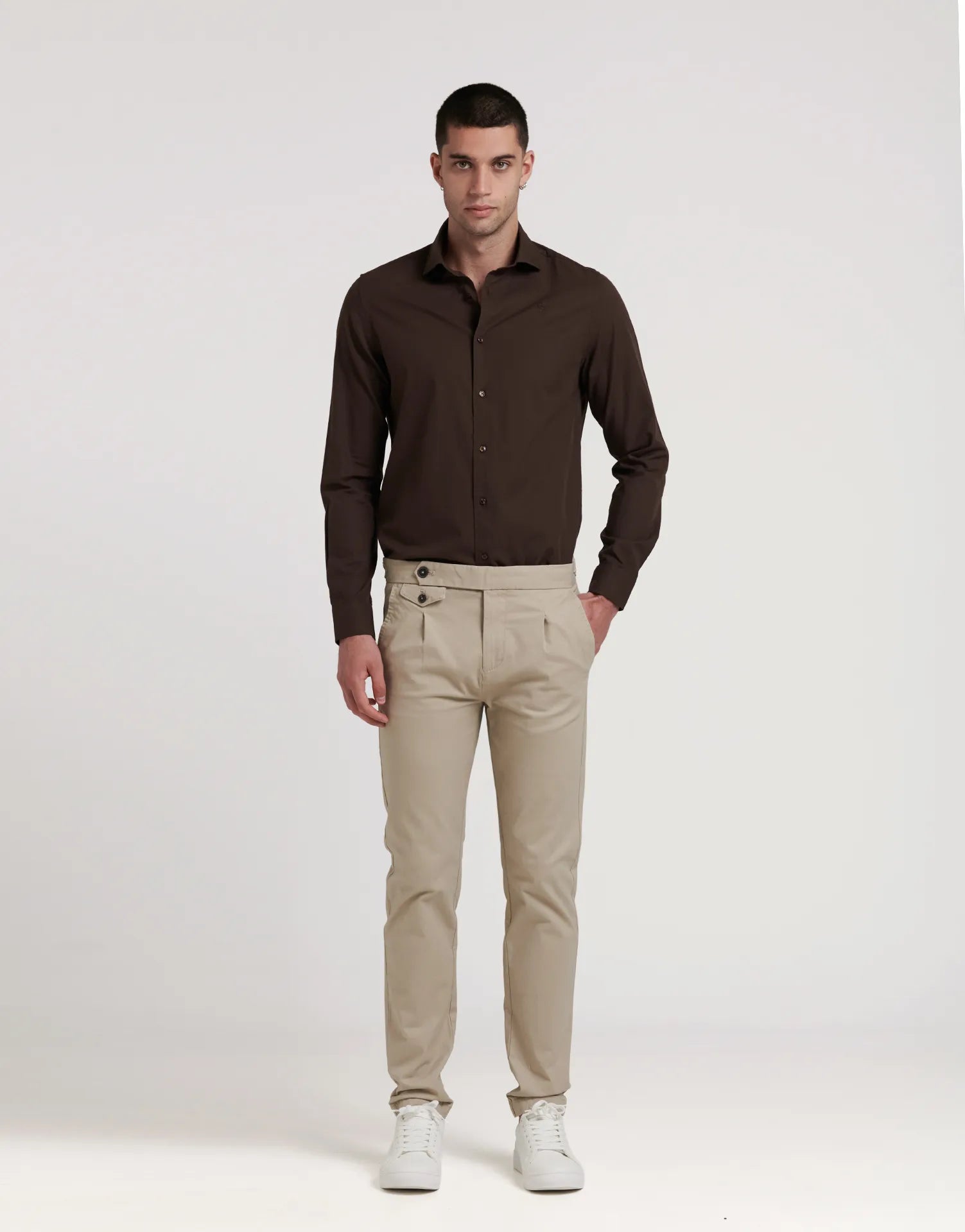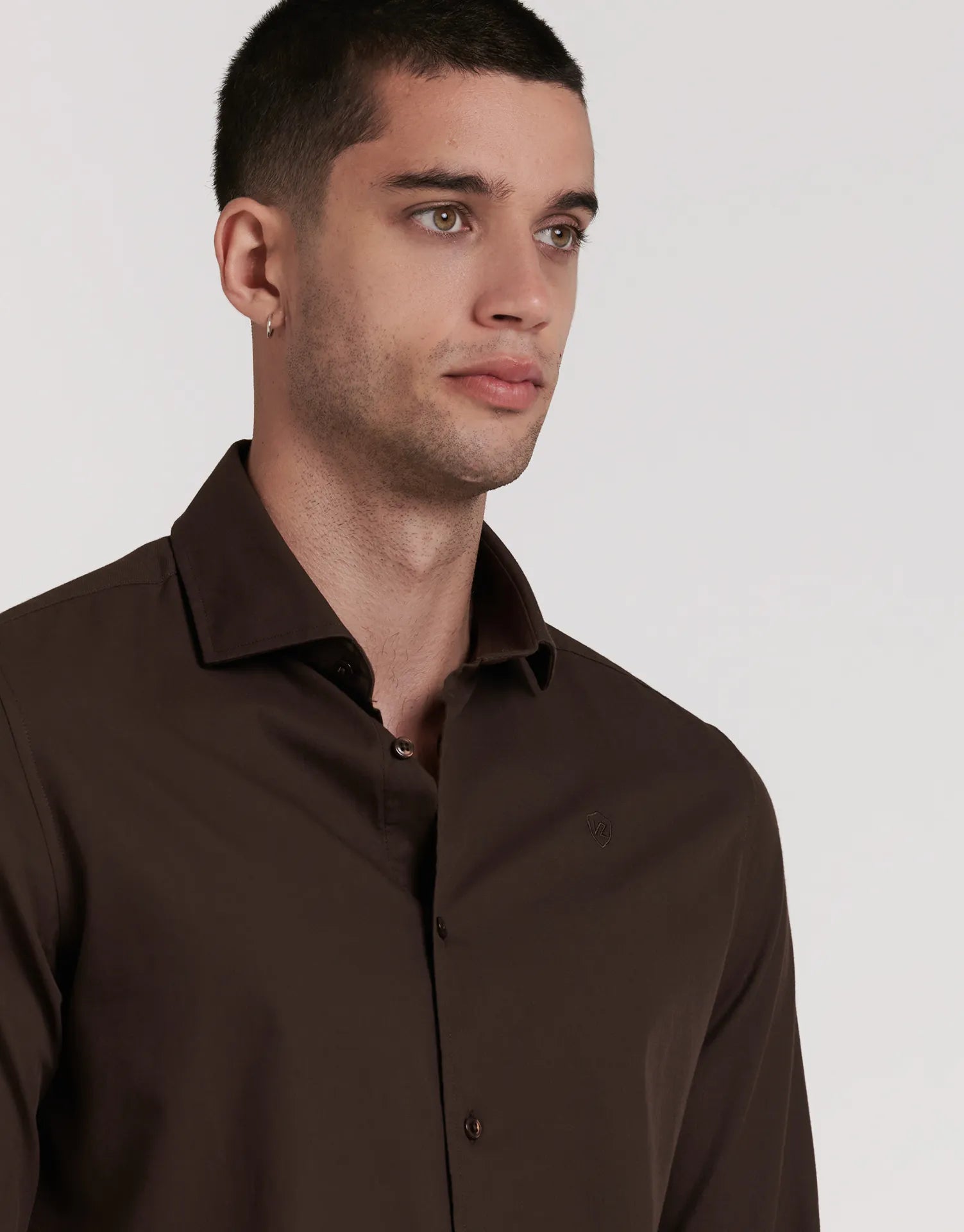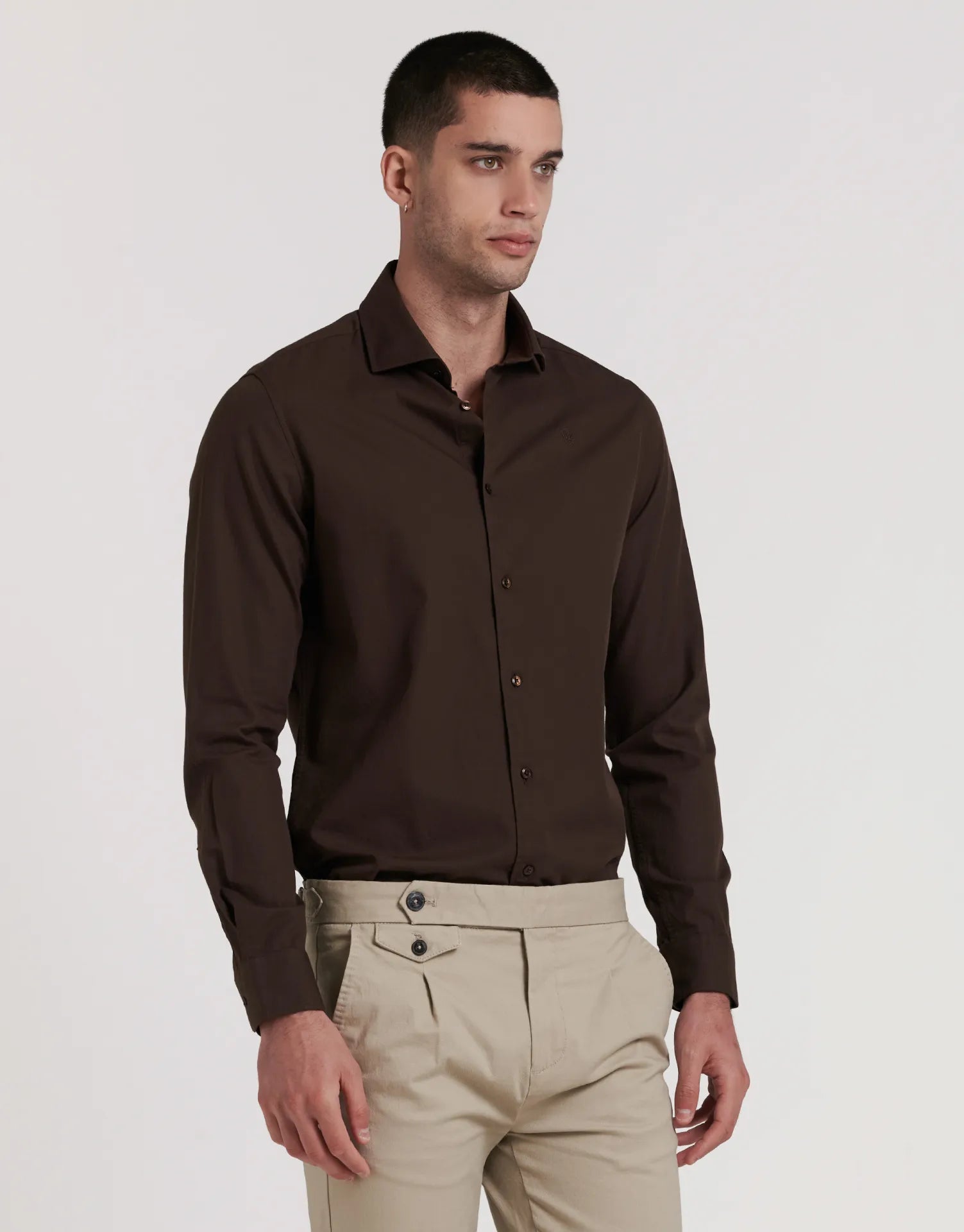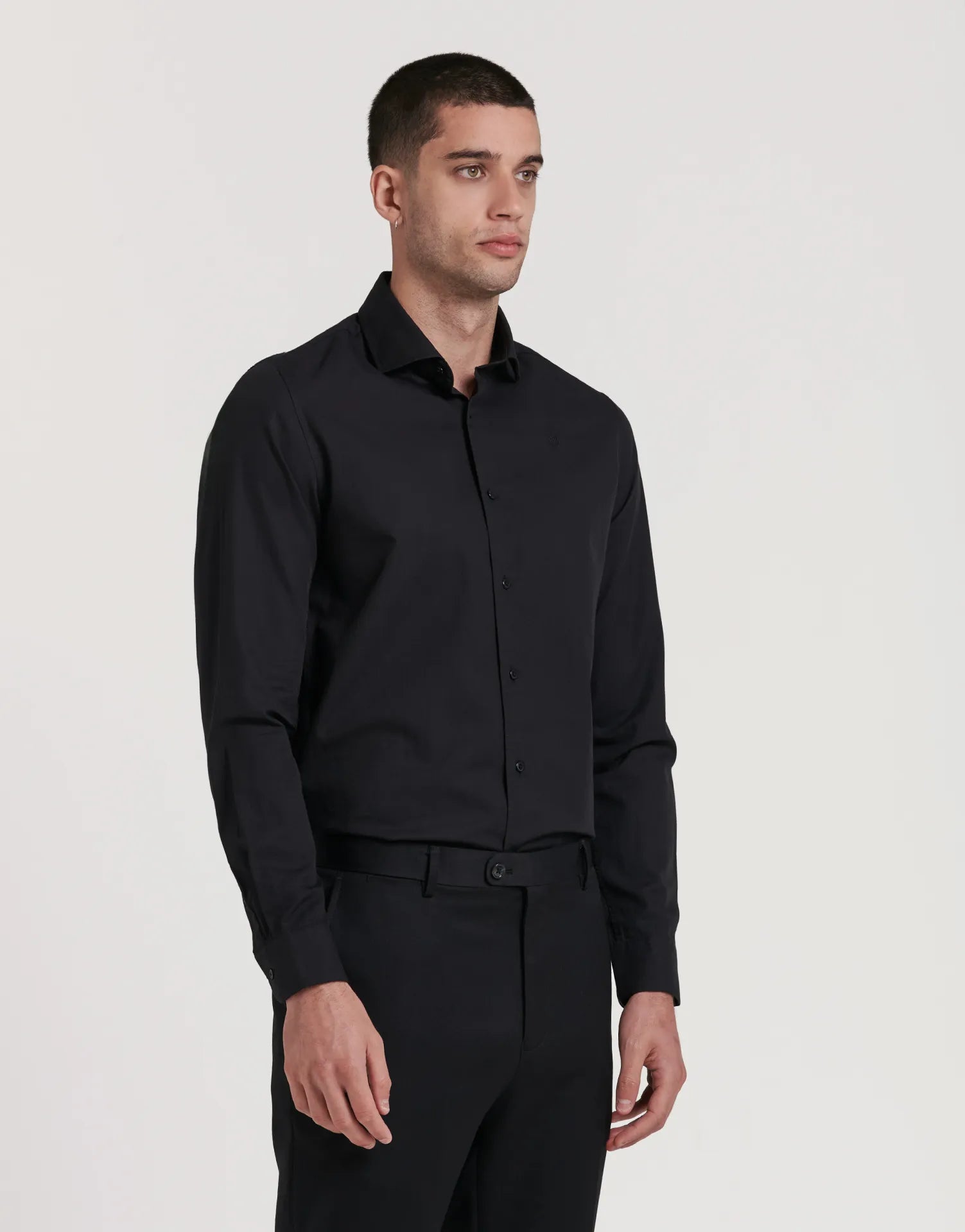 La camisa estructura slim fit cuello alto de JVZ está pensada para quienes buscan un look pulido y actual sin renunciar a la comodidad. Su tejido con ligera estructura y el patrón entallado estilizan la figura, mientras que el cuello alto aporta un plus de presencia ideal para ocasiones formales o para elevar tus looks de oficina.