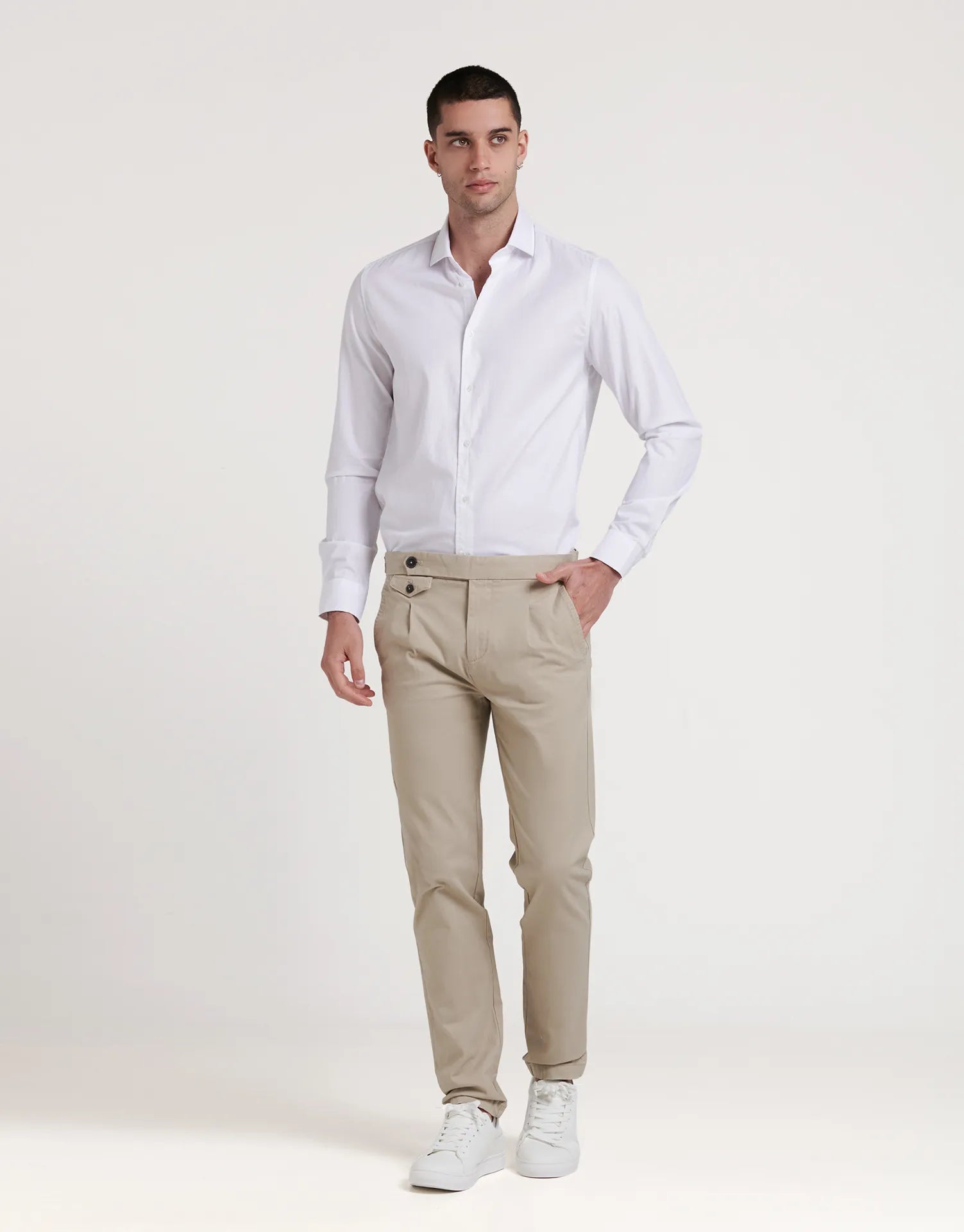 Una camisa versátil que funciona tanto con traje y zapato de vestir en eventos y reuniones, como combinada con chinos y americana para un look smart casual de diario. Si buscas una camisa blanca con un toque especial, este modelo de estructura y cuello alto será tu mejor aliado de fondo de armario.