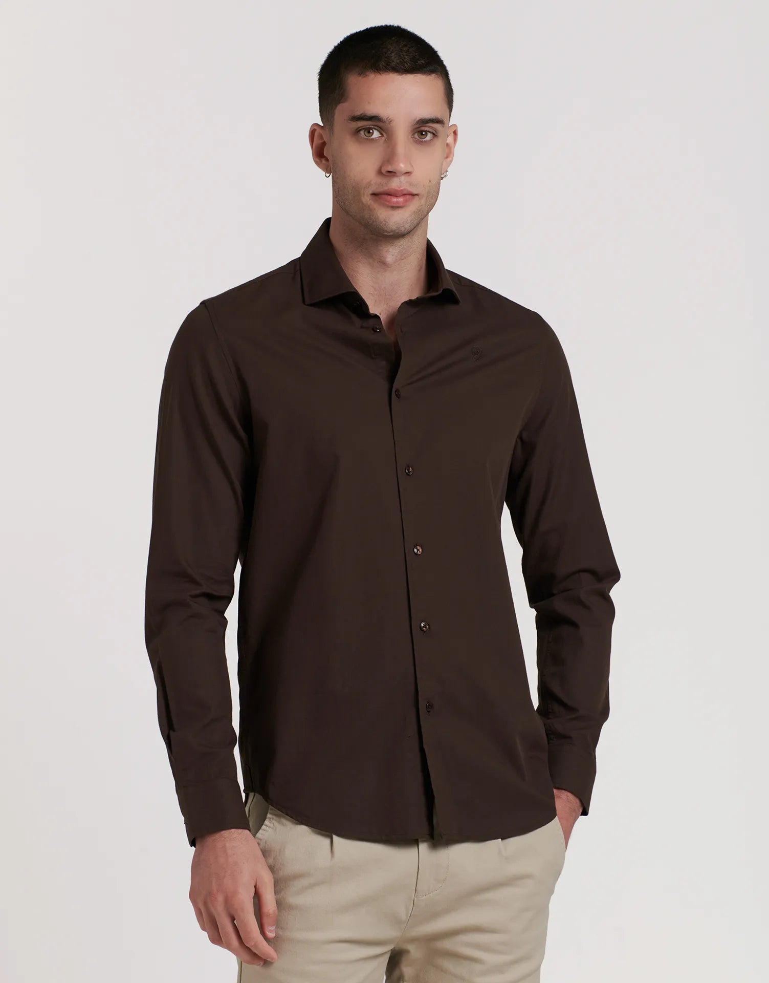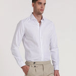 - Tejido con estructura fina que aporta cuerpo a la camisa y una apariencia más sofisticada que una lisa básica.