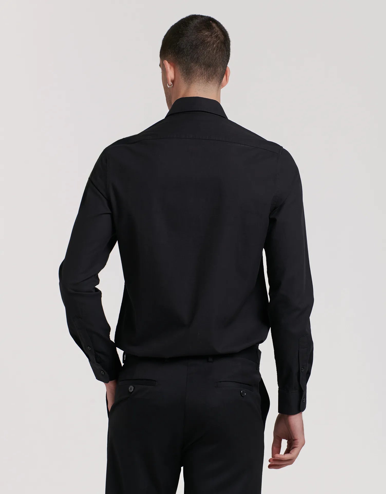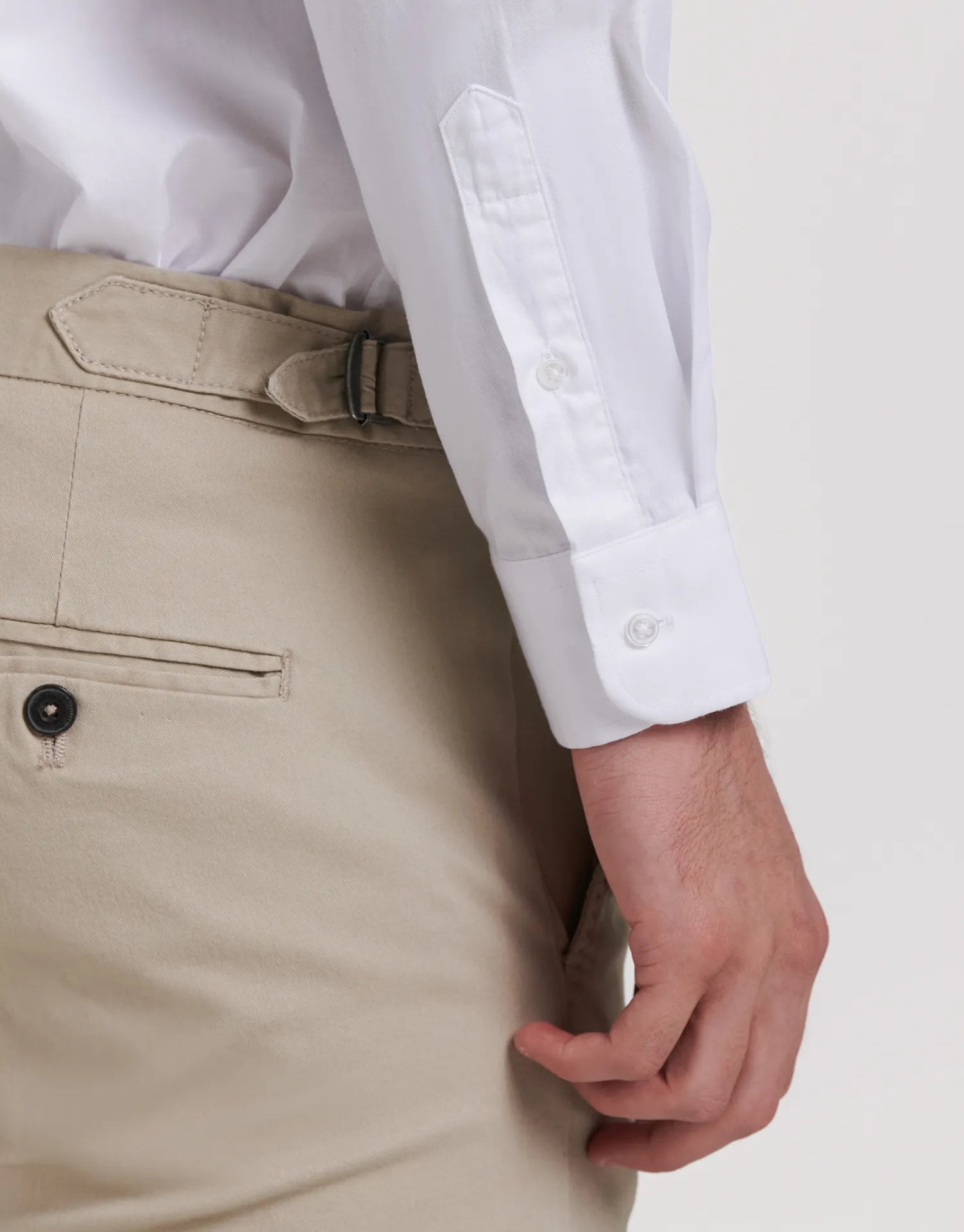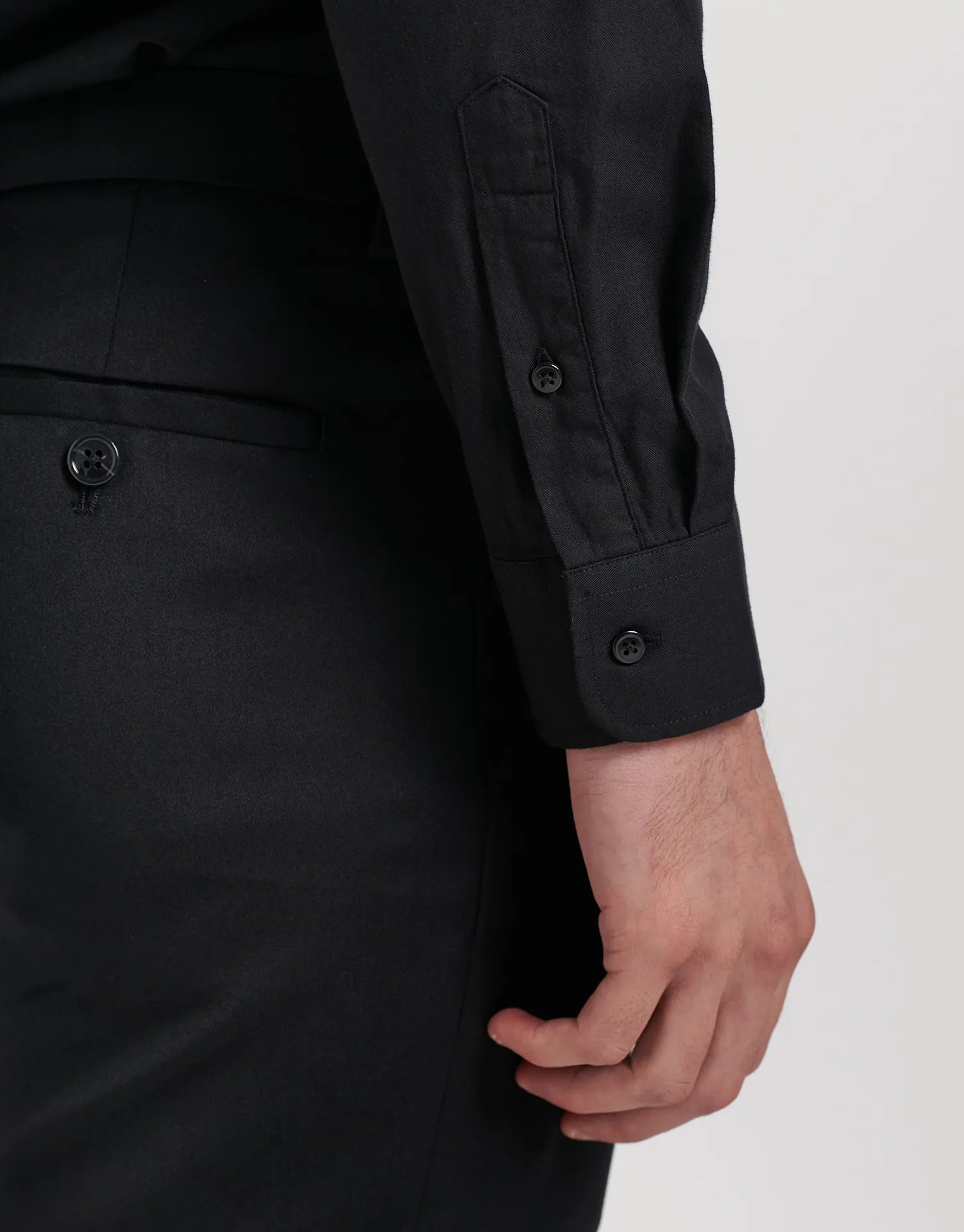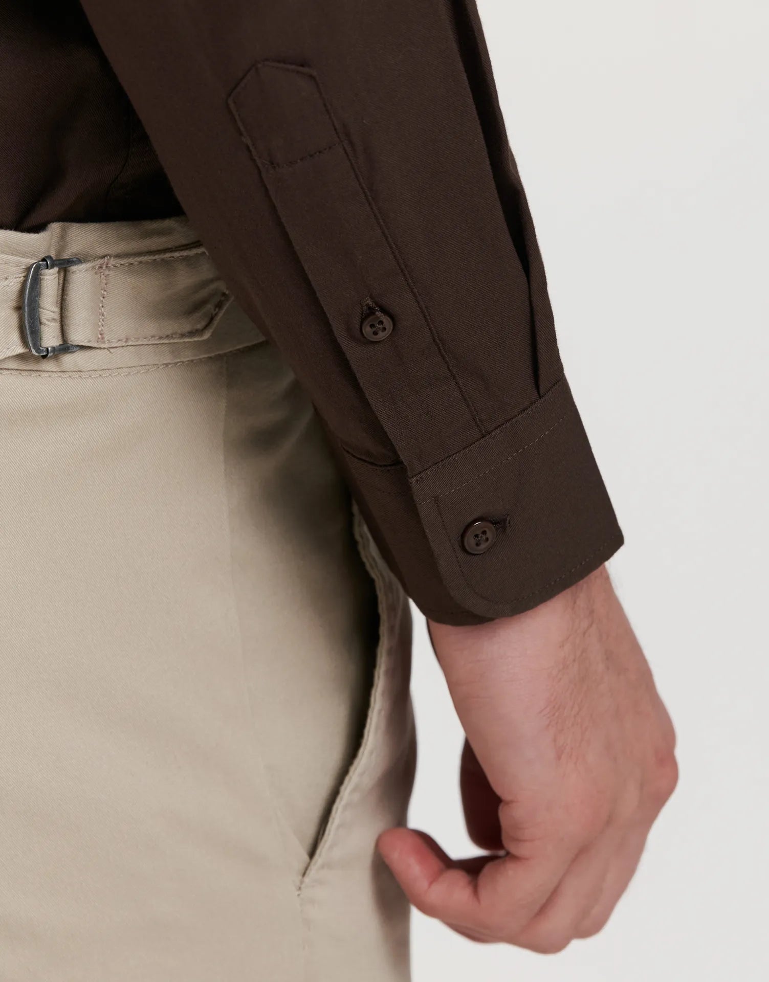 - Manga larga con puño clásico abotonado para ajustar al ancho de la muñeca.