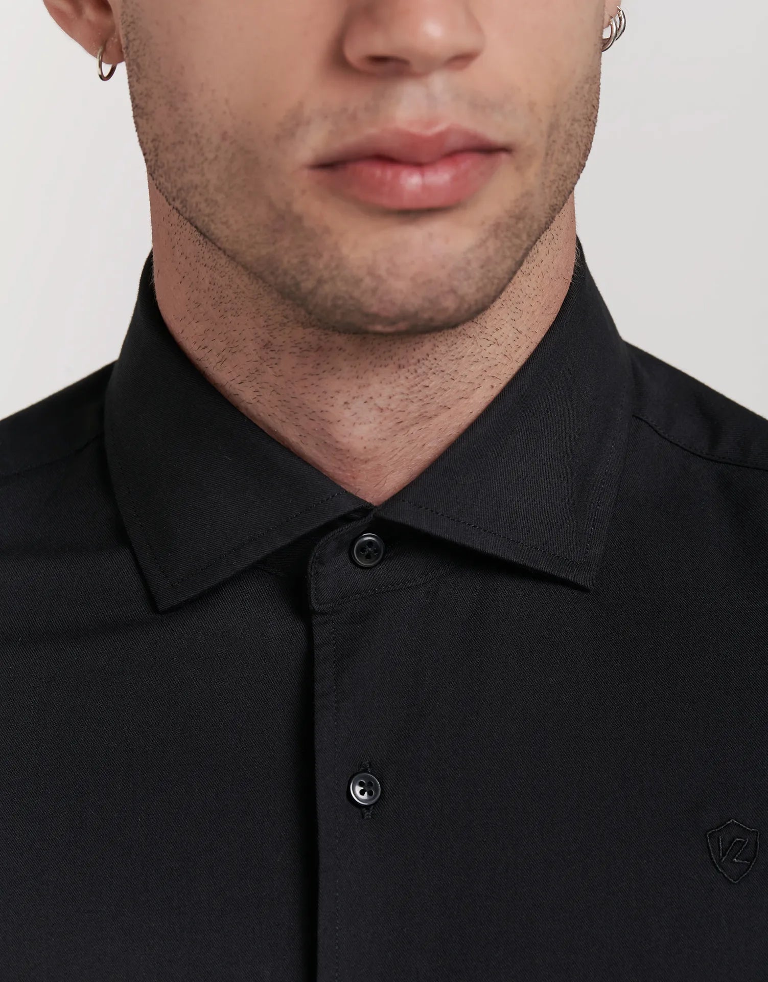 - Logo JVZ bordado a tono en el pecho, un detalle sutil que refuerza la identidad de la prenda.