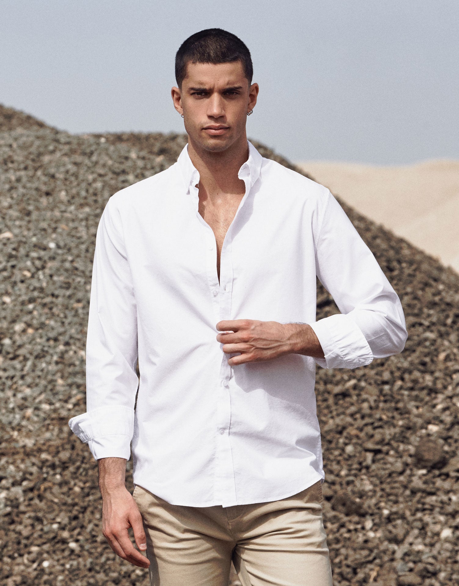 Camisa lisa Oxford. El básico atemporal del armario masculino Camisa de manga larga confeccionada en tejido Oxford, reconocible por su textura ligera y resistente, que aporta un equilibrio perfecto entre estilo y comodidad. Su diseño liso y versátil la convierte en una prenda imprescindible tanto para looks formales como para outfits más relajados. Cuenta con cuello abotonado, cierre frontal con botones y logo bordado en el pecho, aportando un toque distintivo sin perder la sobriedad clásica de la prenda. Su corte moderno ofrece una silueta favorecedora que se adapta a diferentes estilos y ocasiones. Una camisa Oxford atemporal, ideal para combinar con chinos, vaqueros o traje, que nunca pasa de moda y eleva cualquier look con un acabado elegante y sofisticado. Composición: 100% Algodón.