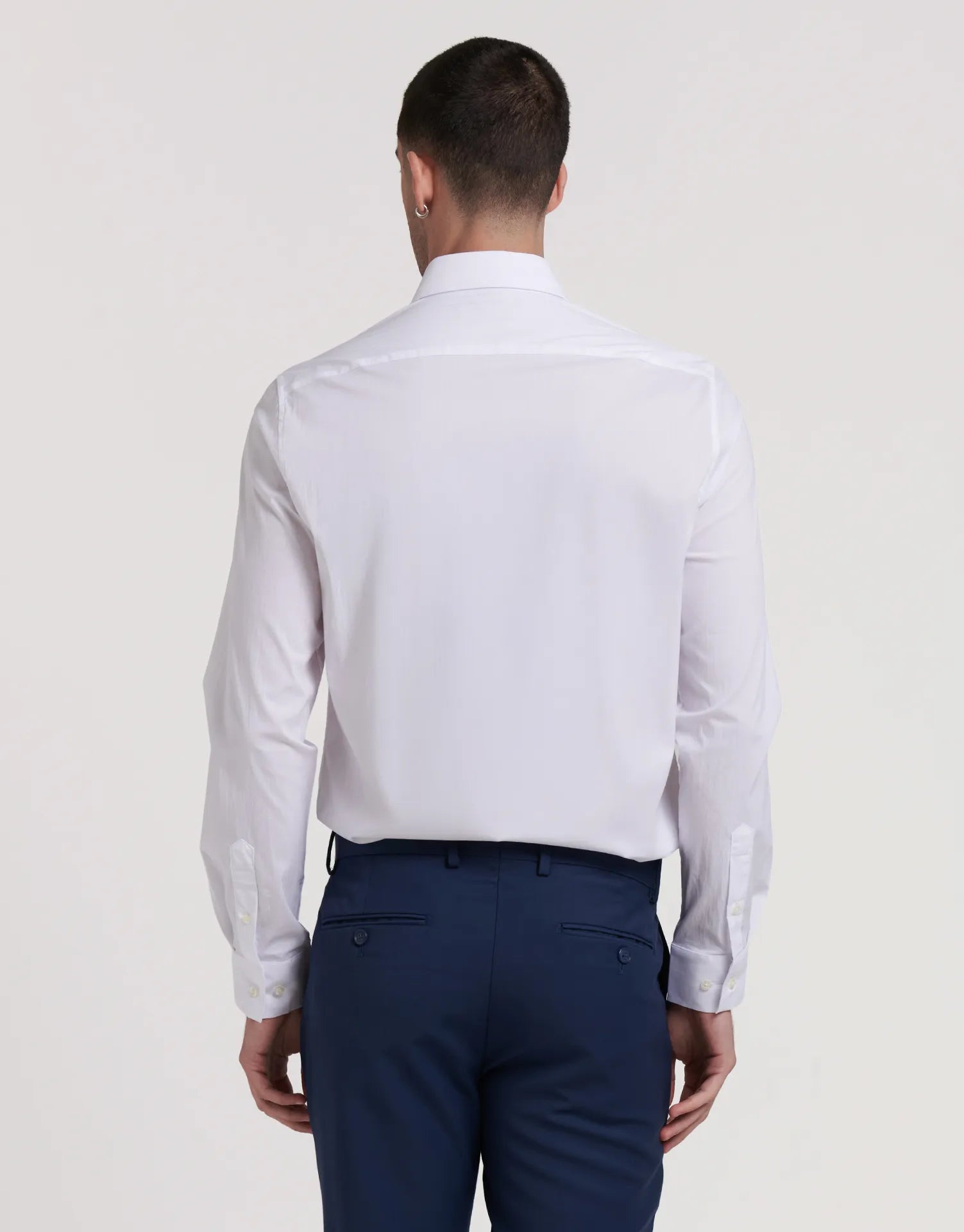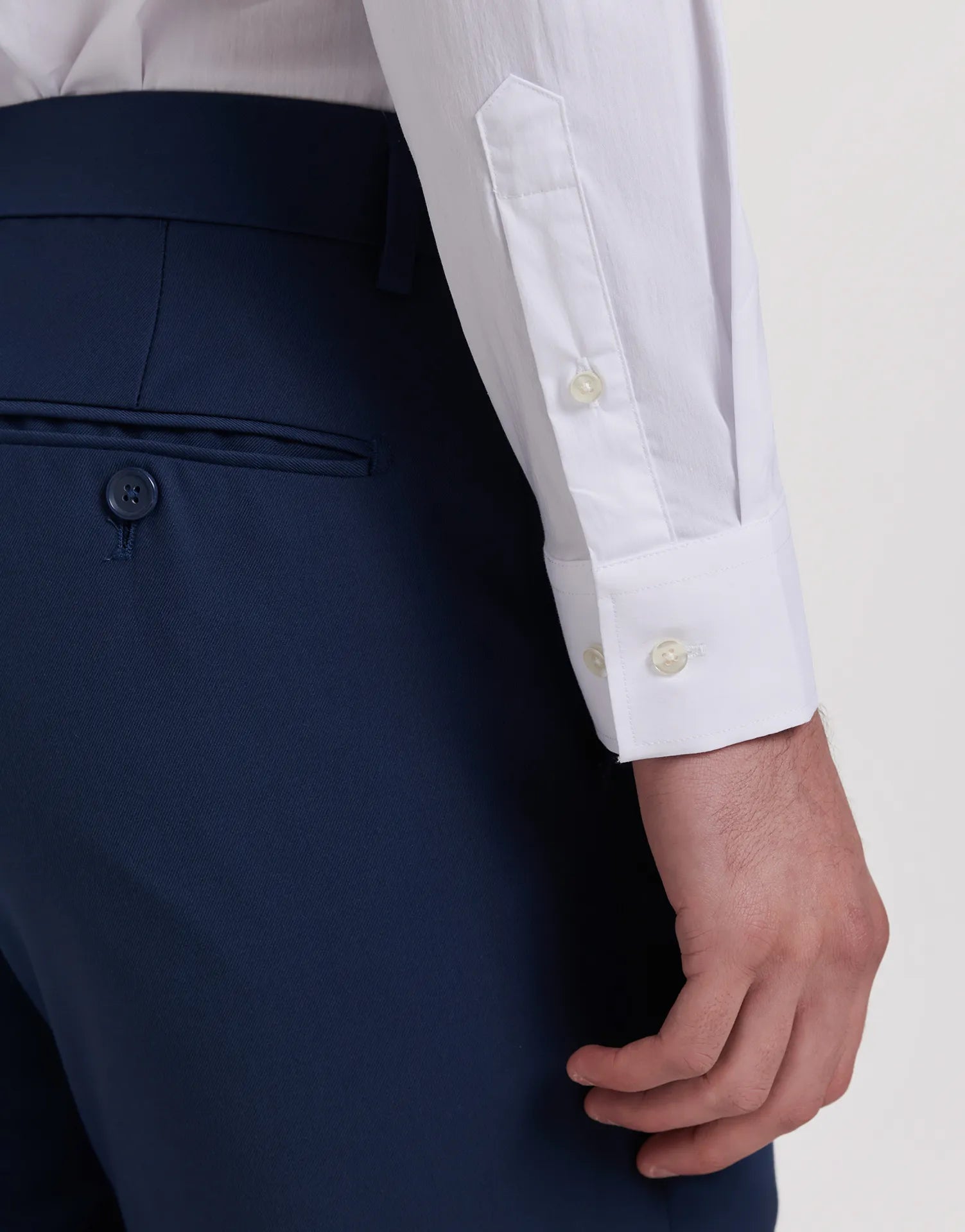 - Manga larga con puño clásico y doble botón ajustable.