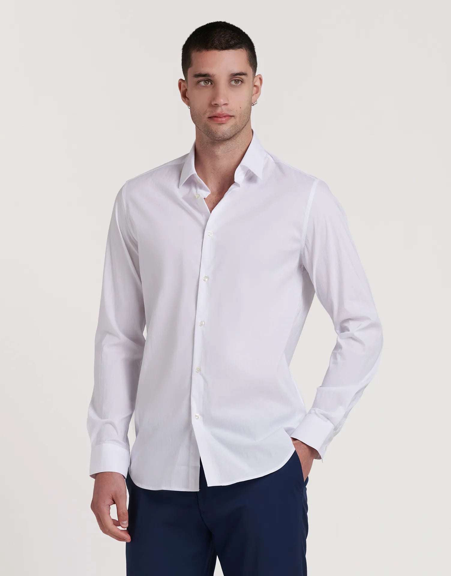 La camisa vestir elástica Comfort Fit de JVZ es la opción ideal para quienes buscan máxima comodidad sin renunciar a una apariencia cuidada y elegante. Su tejido elástico ofrece libertad de movimiento durante todo el día, manteniendo un look impecable tanto en ocasiones formales como en el día a día profesional.