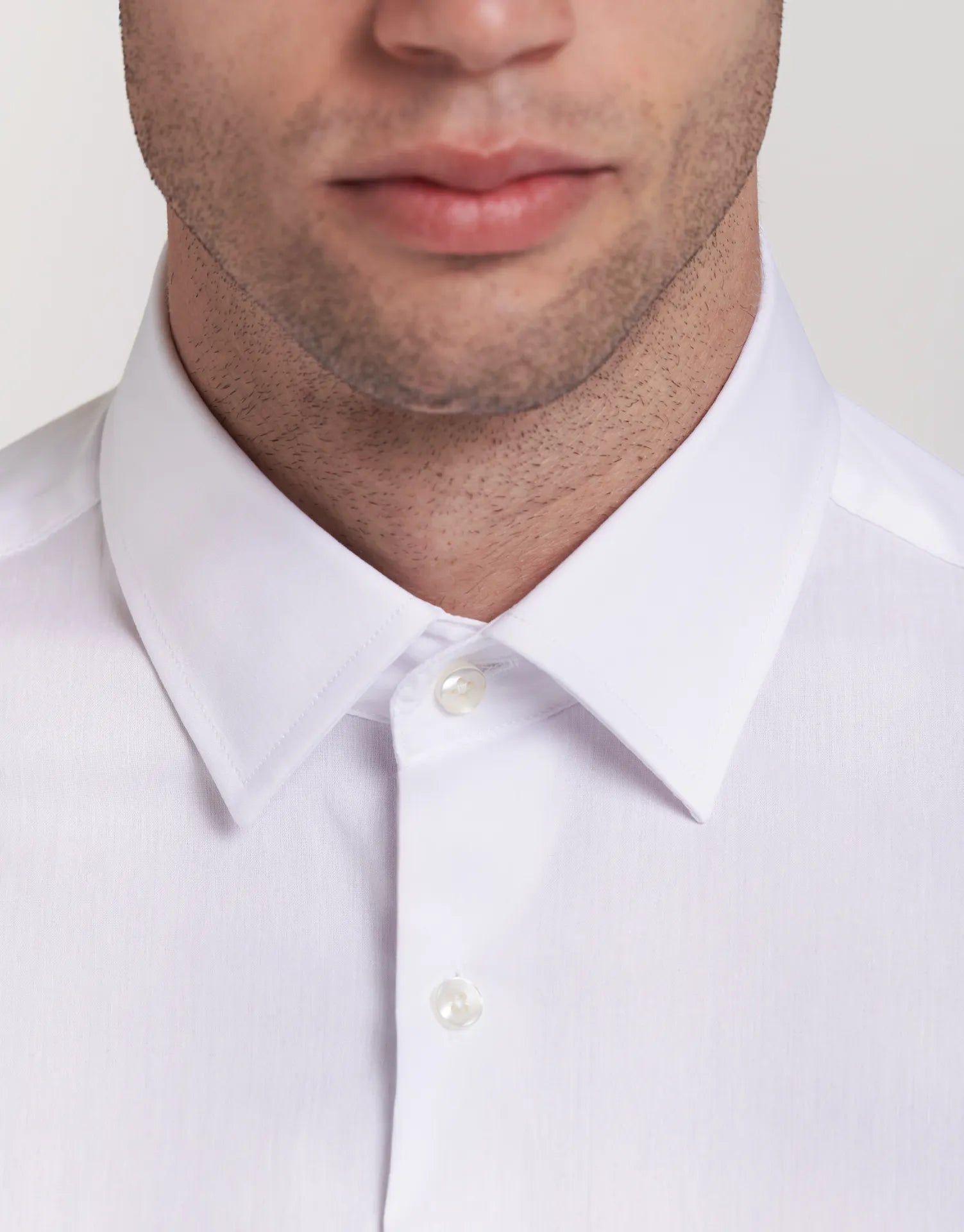 - Cuello italiano estructurado, perfecto para llevar con o sin corbata.