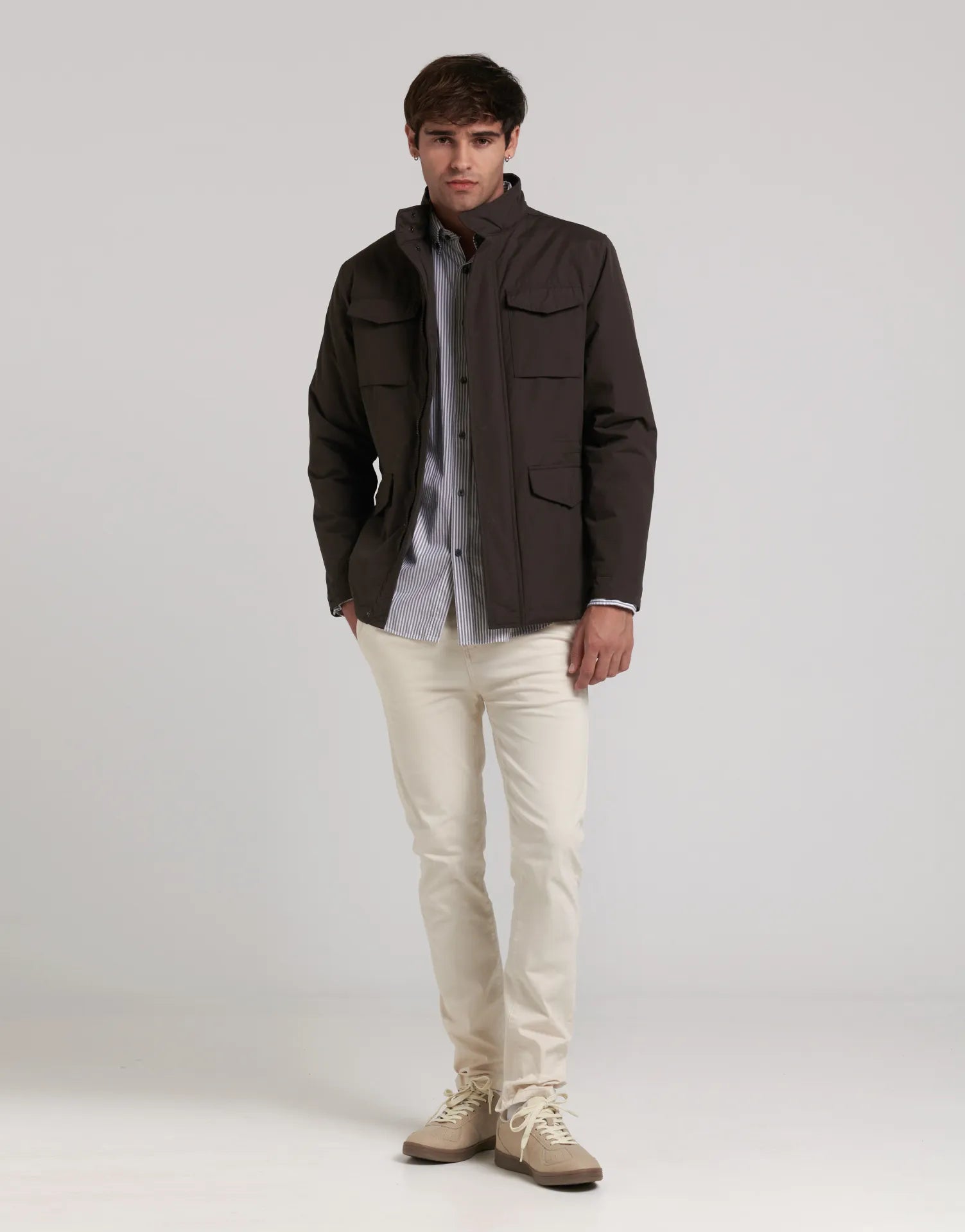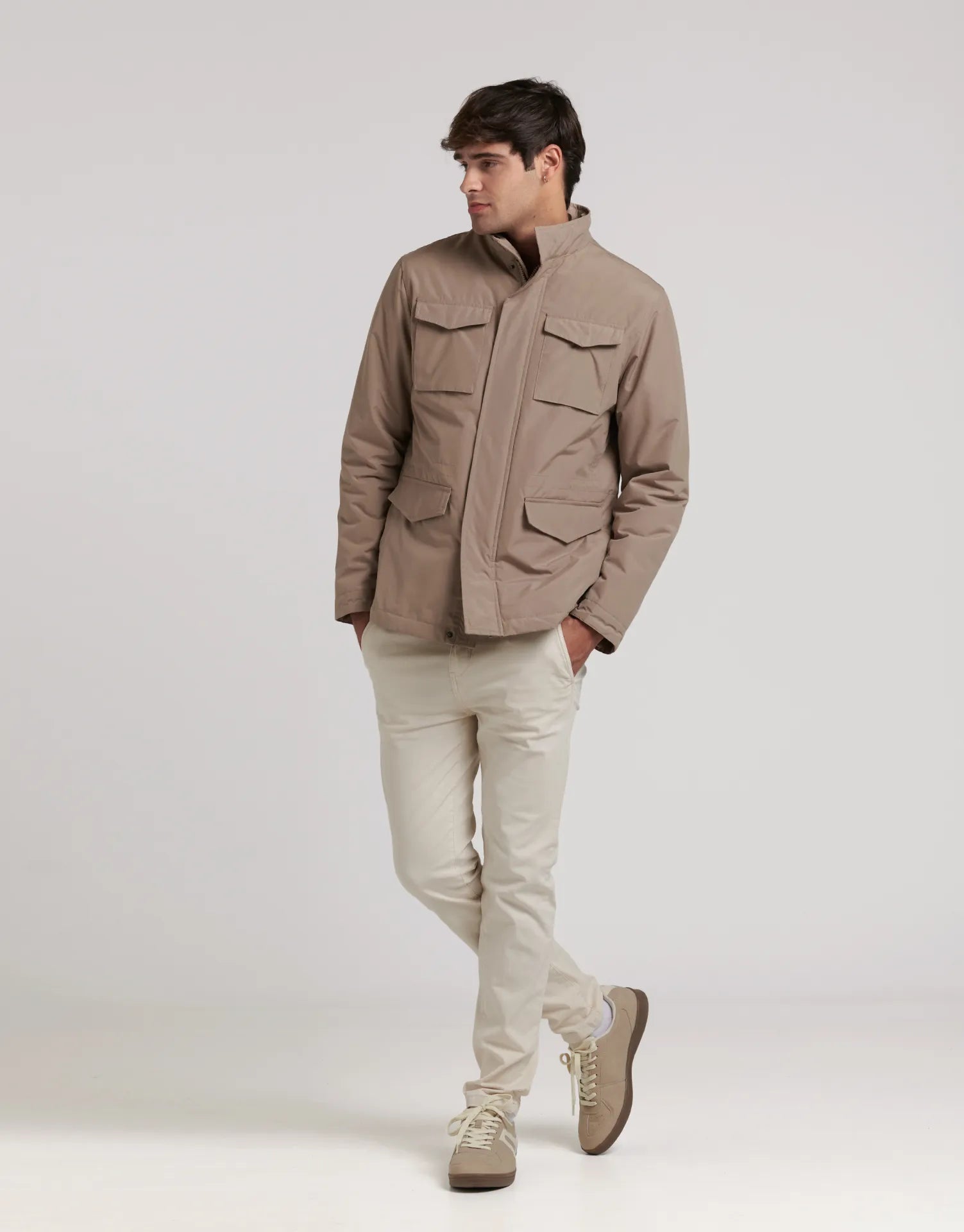 La cazadora acolchada con bolsillos de JVZ combina un diseño funcional con un estilo contemporáneo, ideal para los meses más fríos. Su confección en tejido técnico aporta resistencia, confort y un acabado elegante, convirtiéndola en una prenda imprescindible en tu armario.