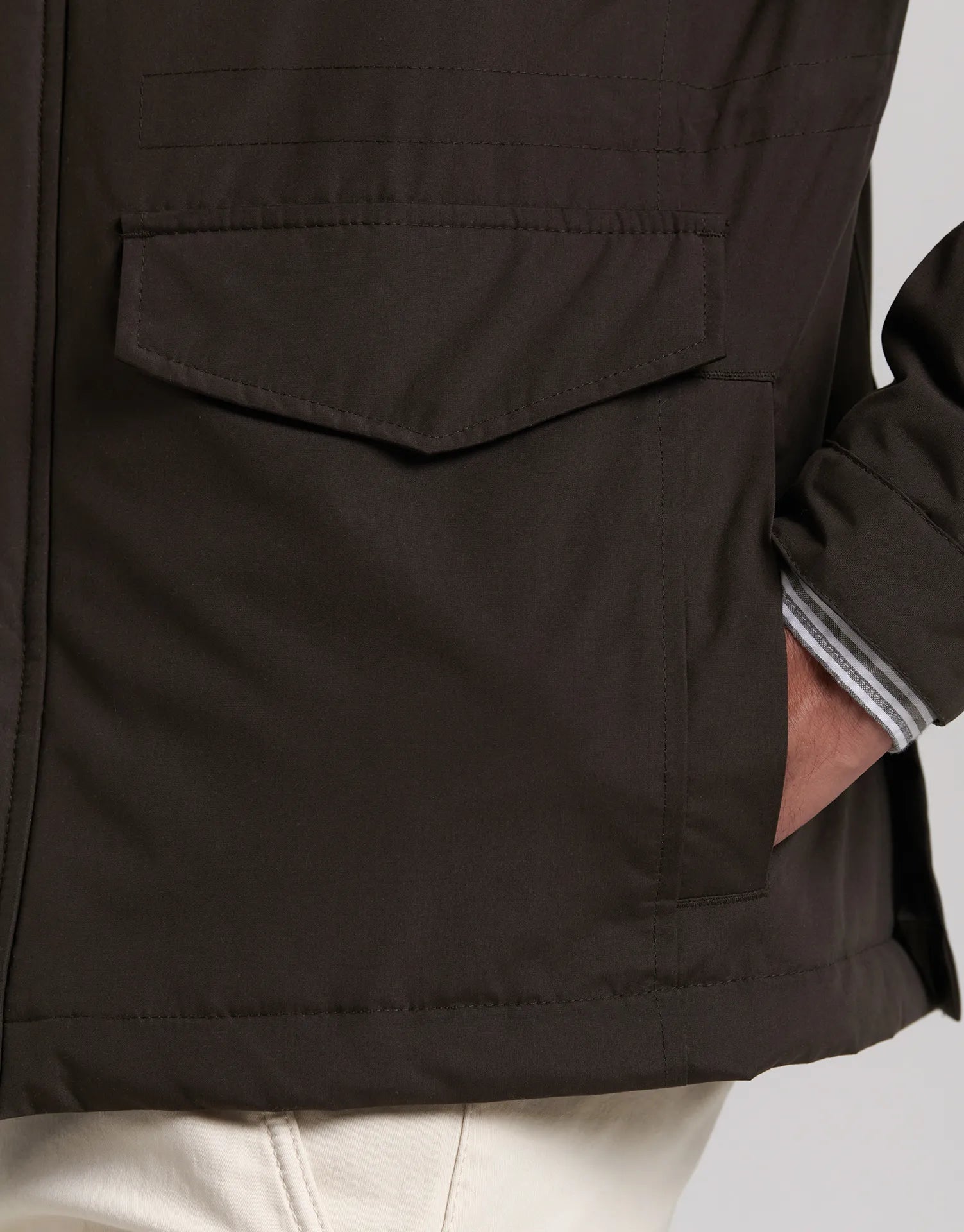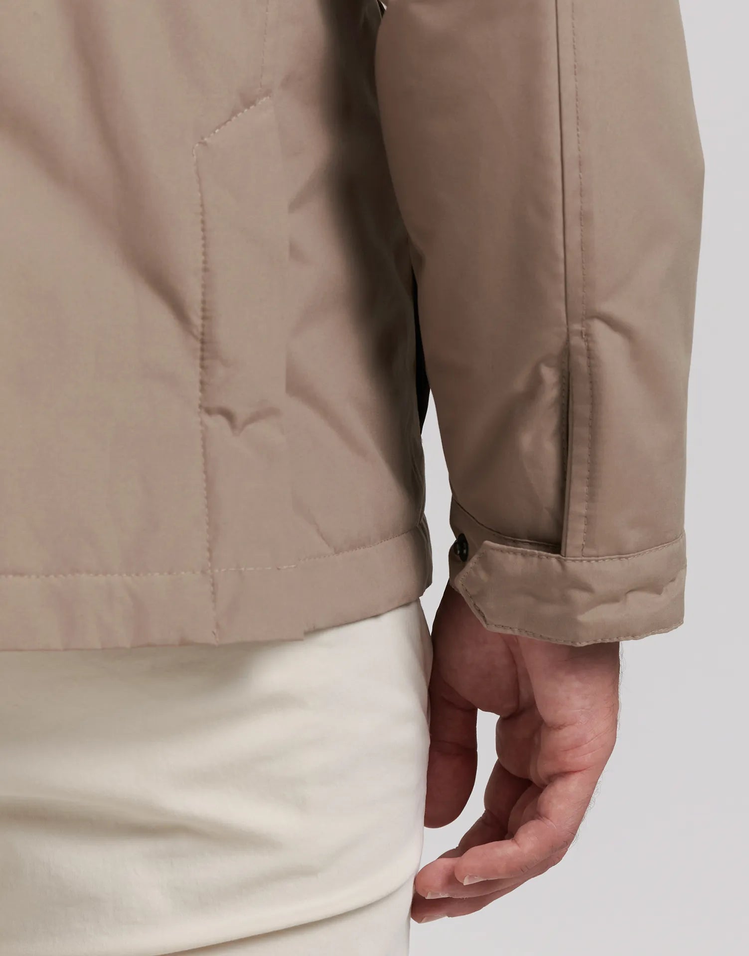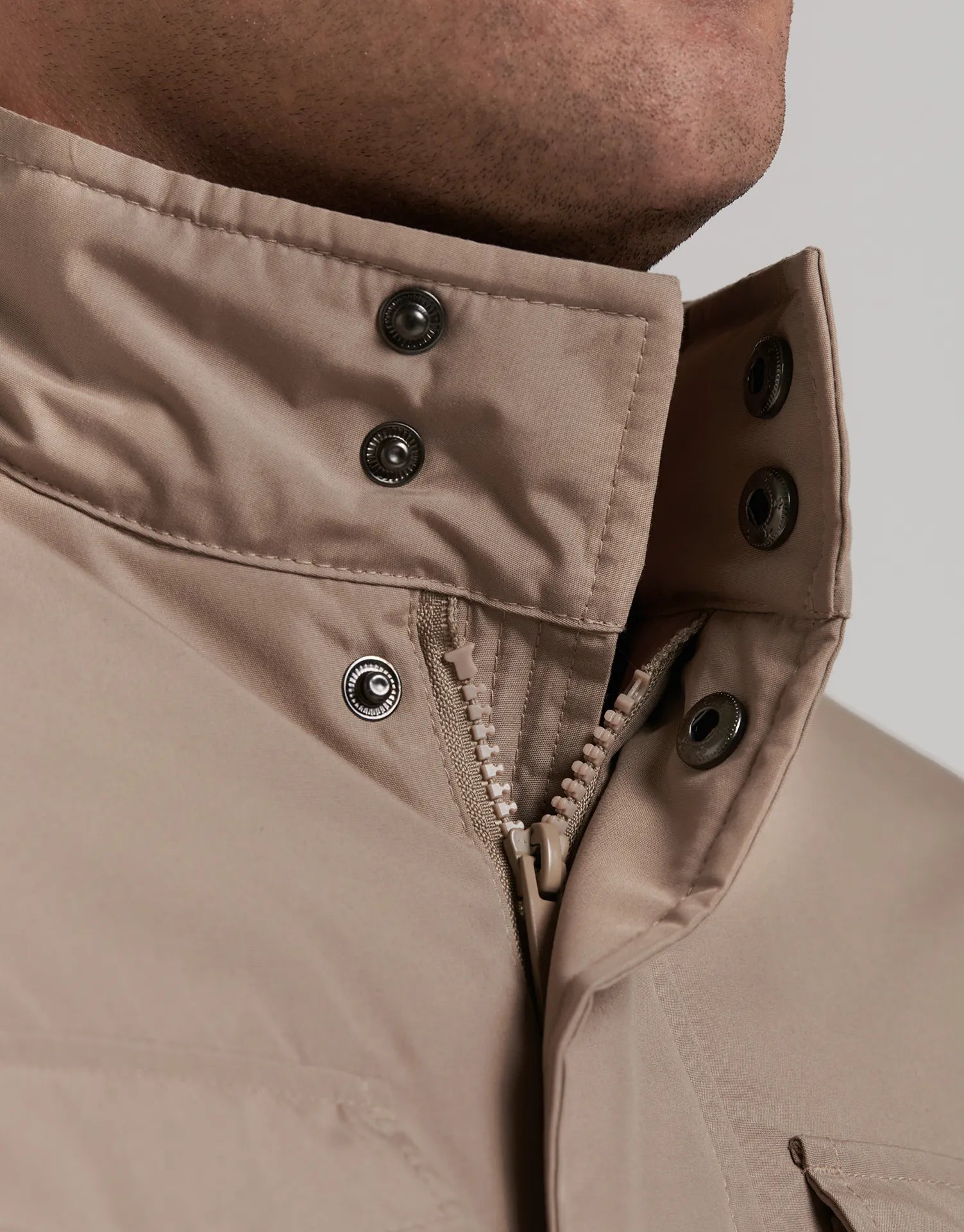 - Tejido exterior de acabado mate con tacto suave y estructura resistente al viento.