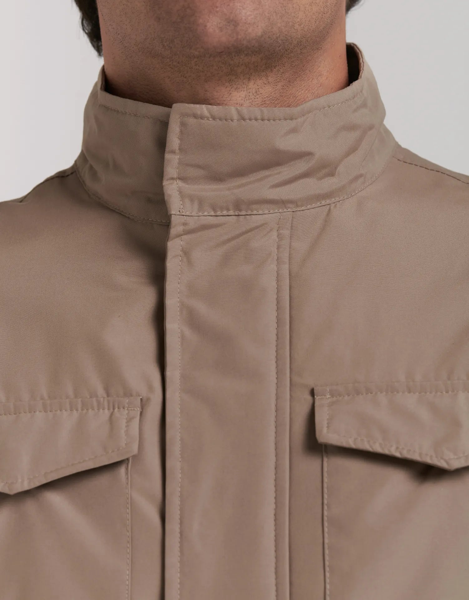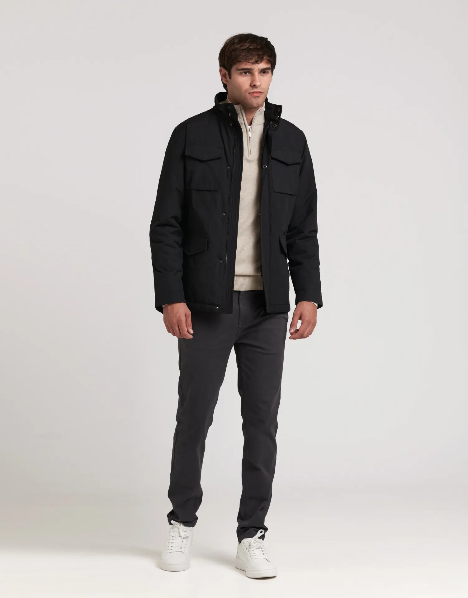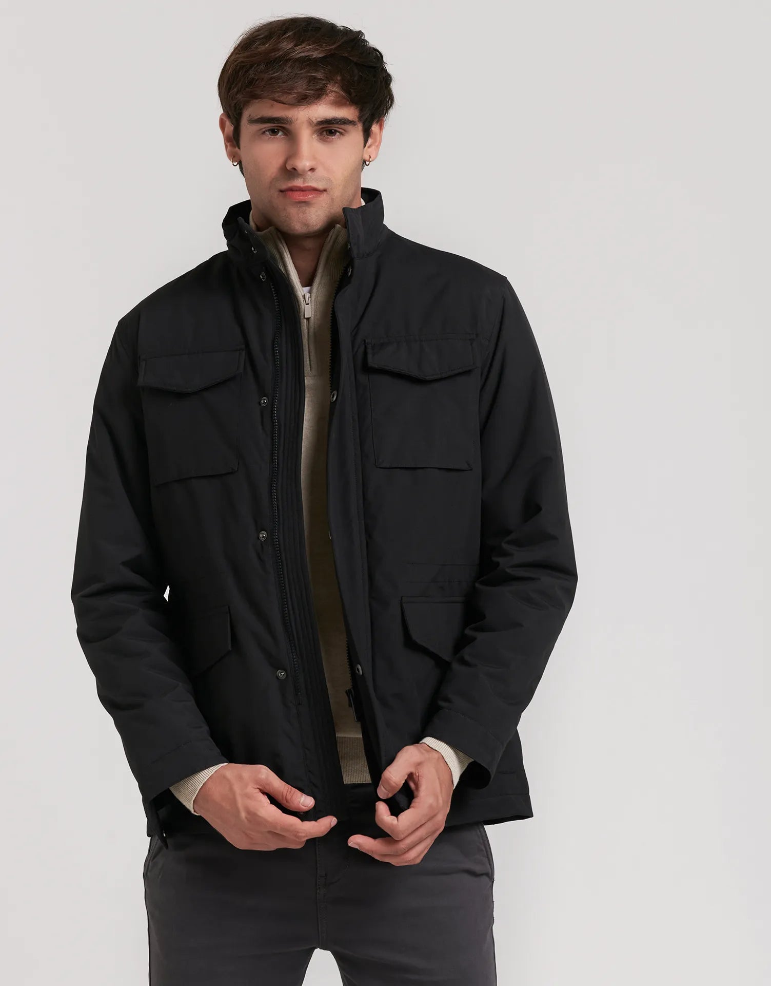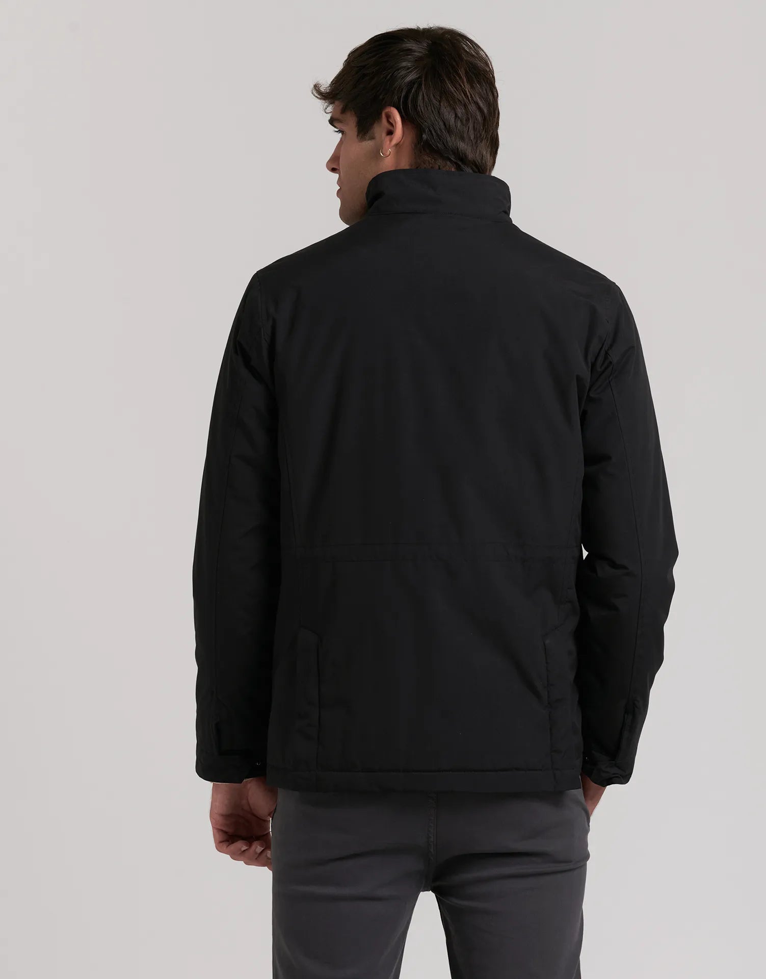 - Cuello alto estructurado con cierre de corchetes, ideal para proteger del frío.