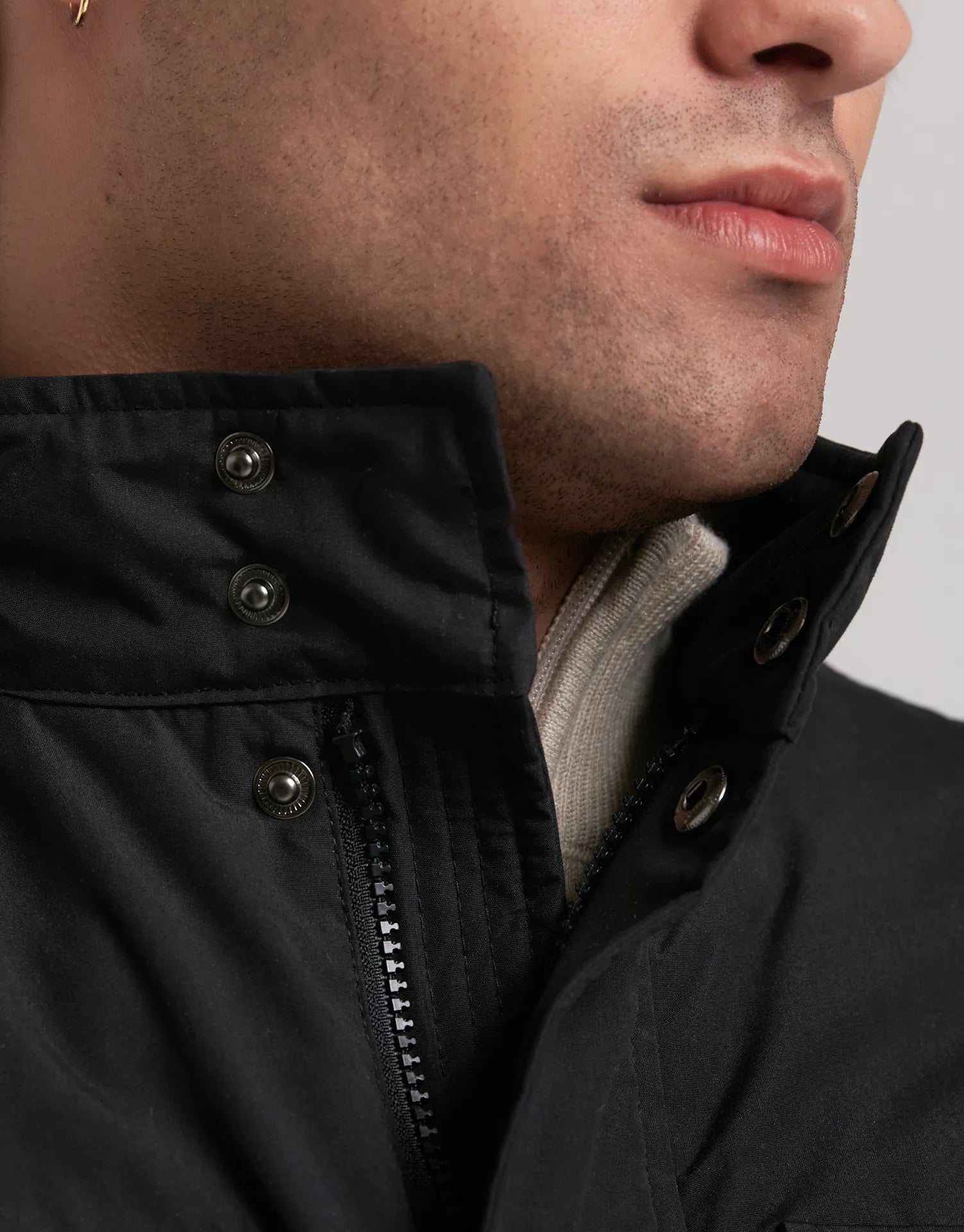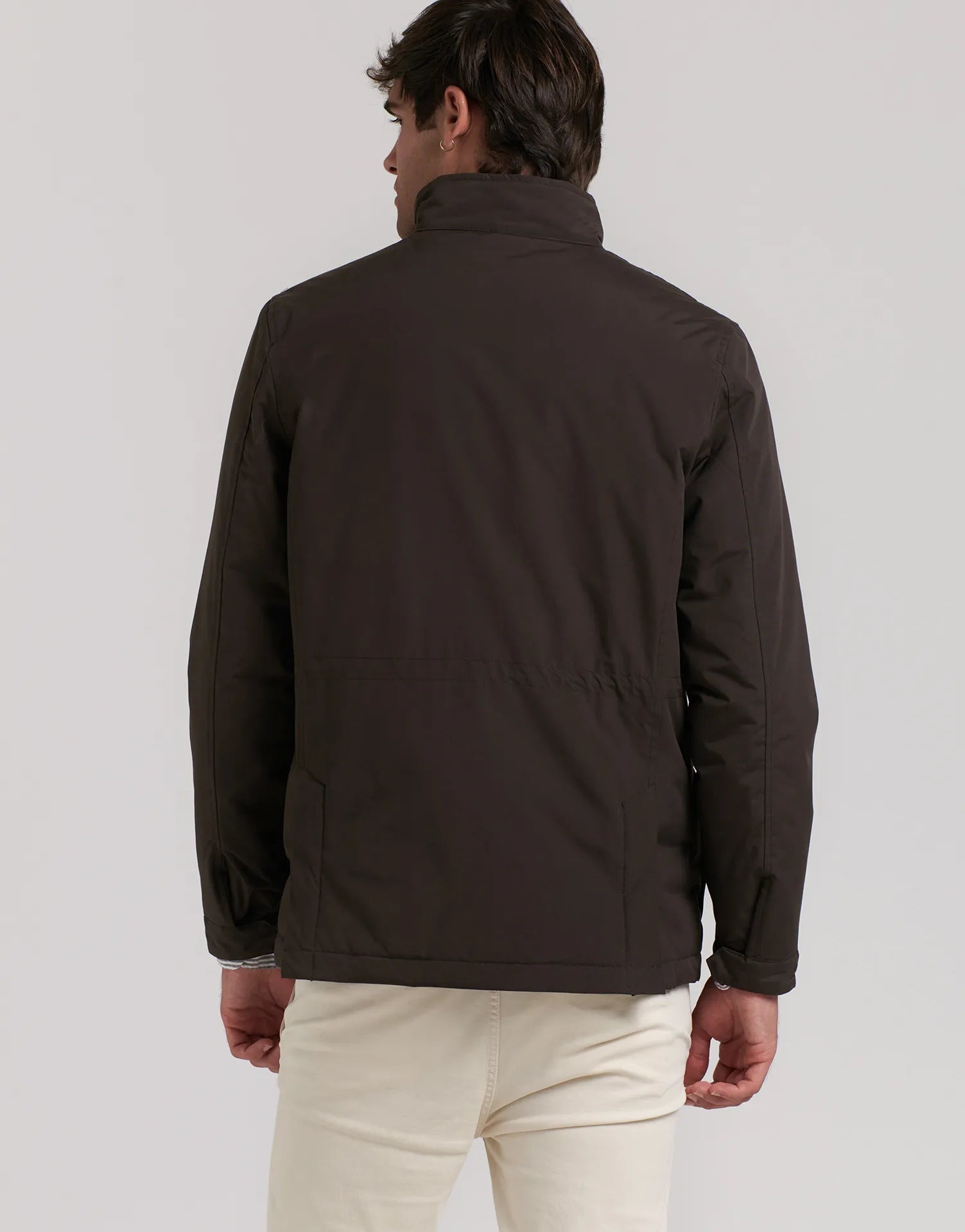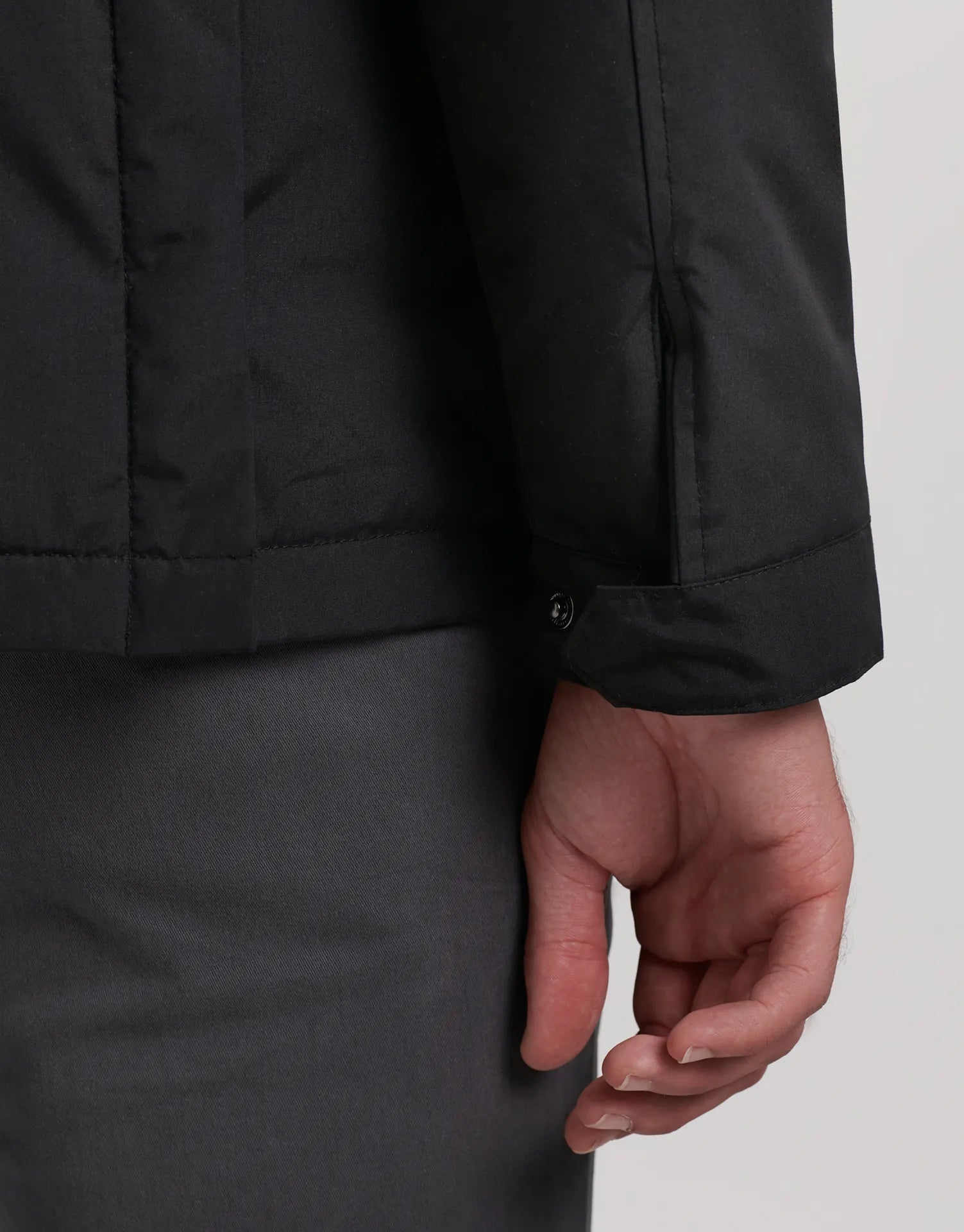 - Cuello alto estructurado con cierre de corchetes, ideal para proteger del frío.