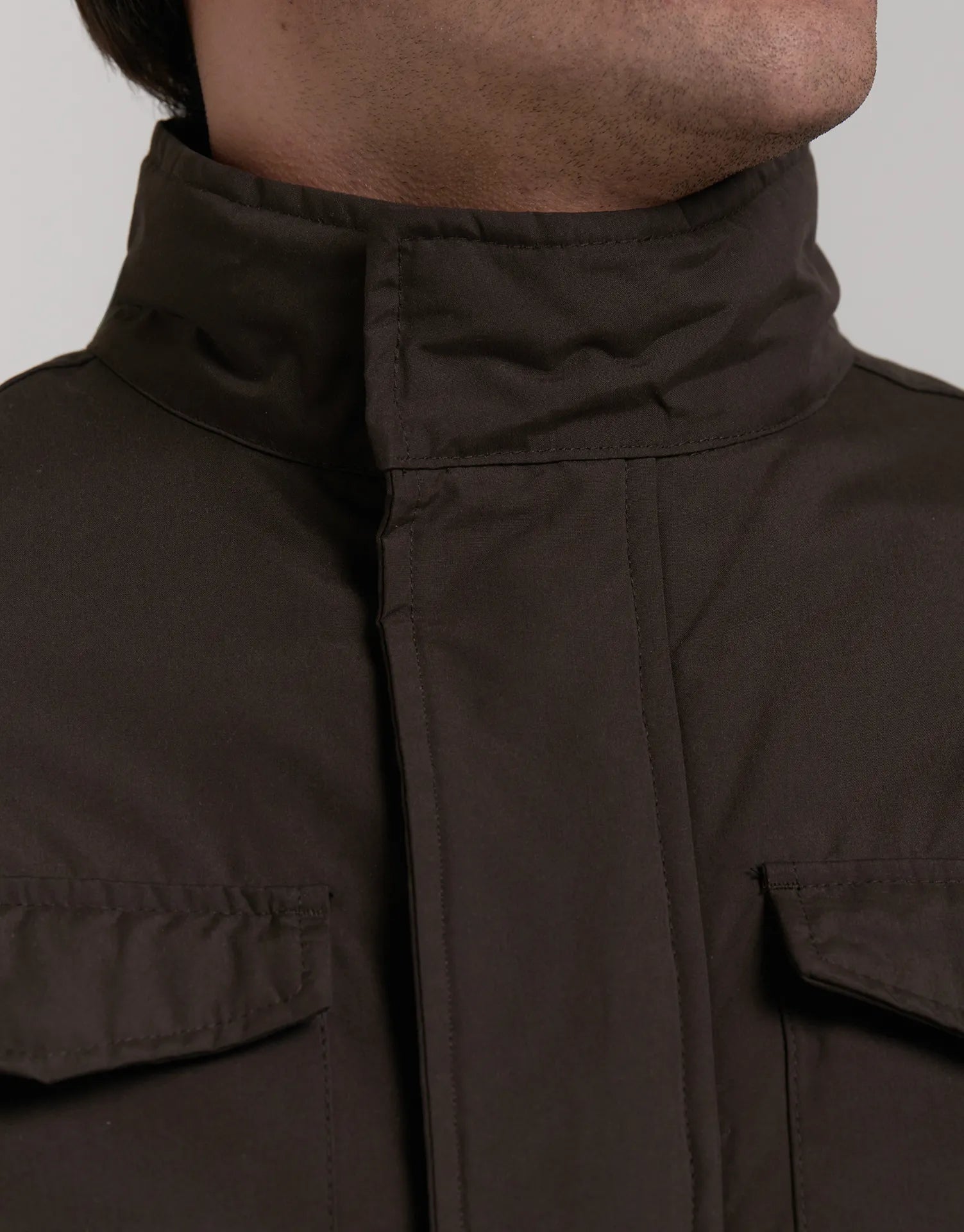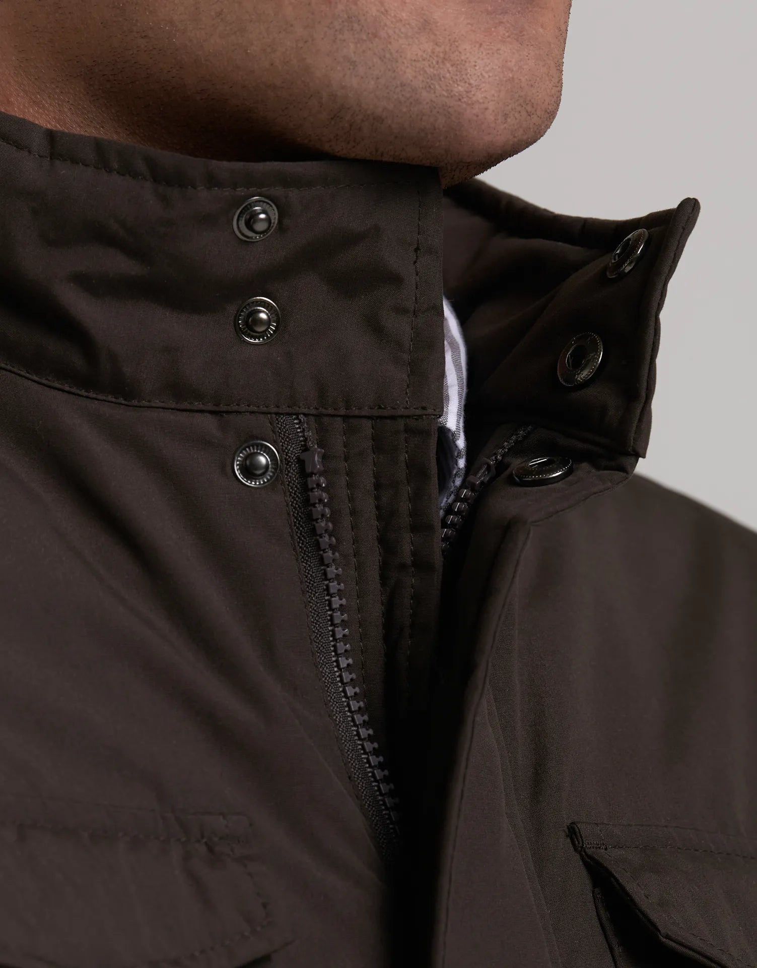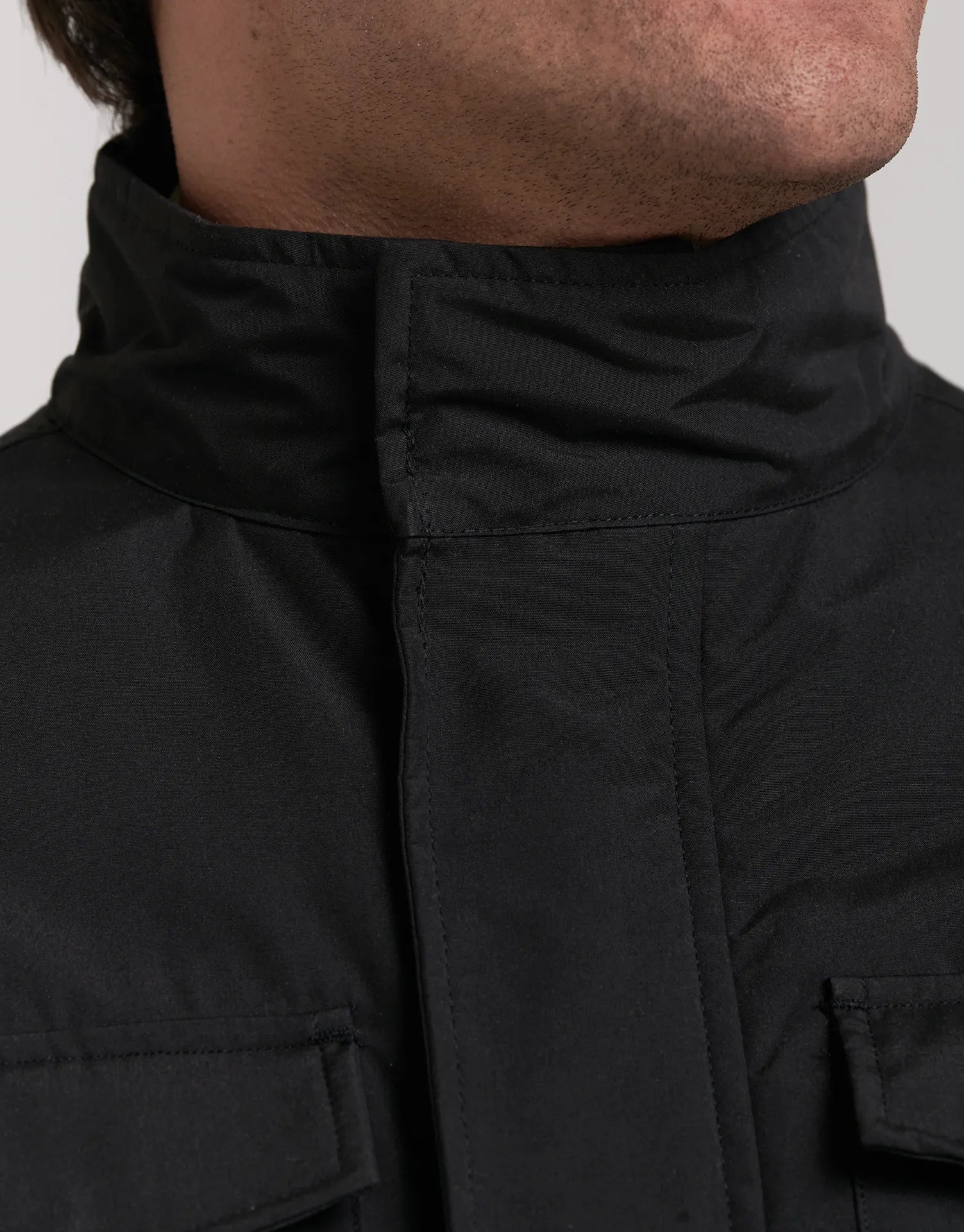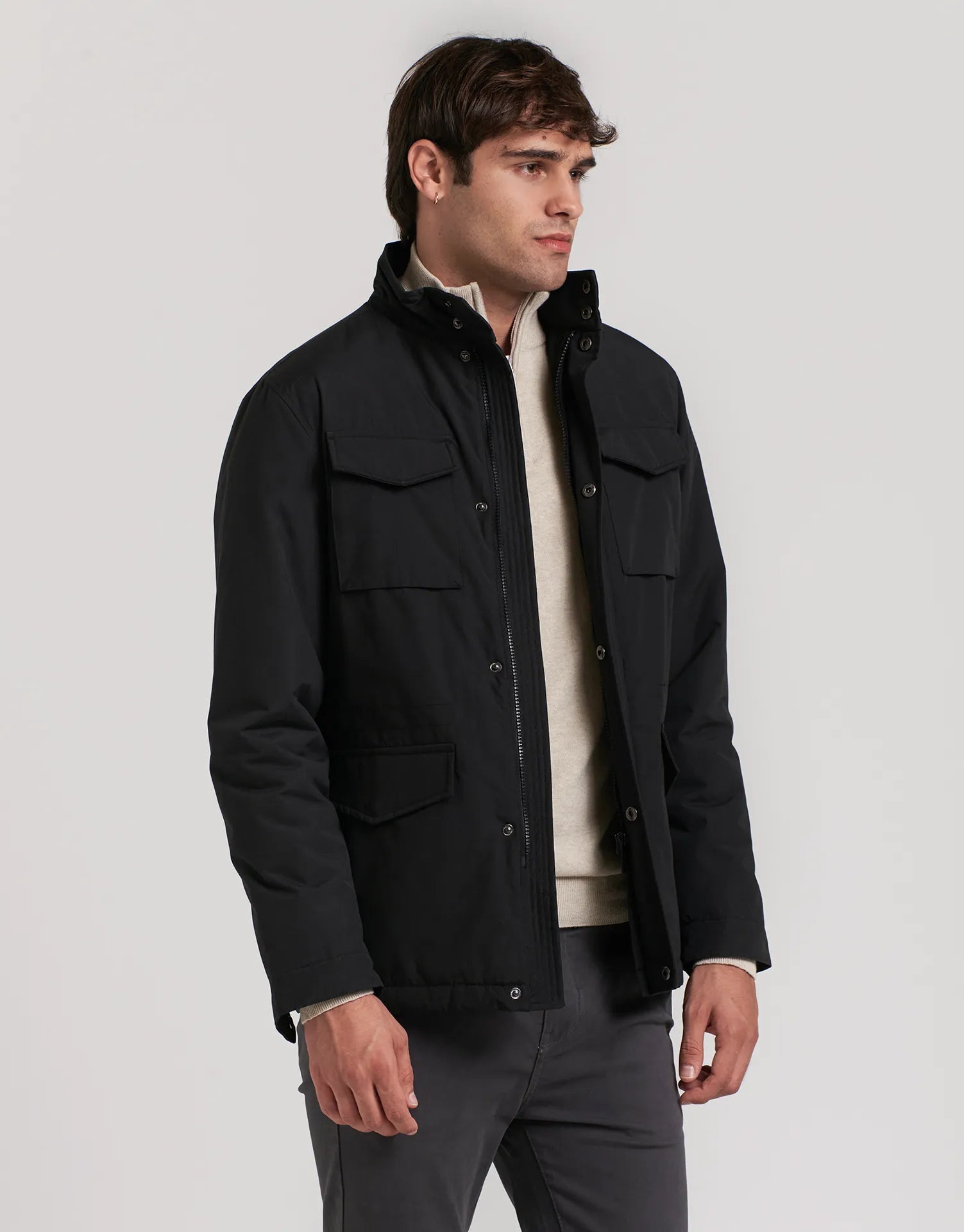 - Cuello alto estructurado con cierre de corchetes, ideal para proteger del frío.