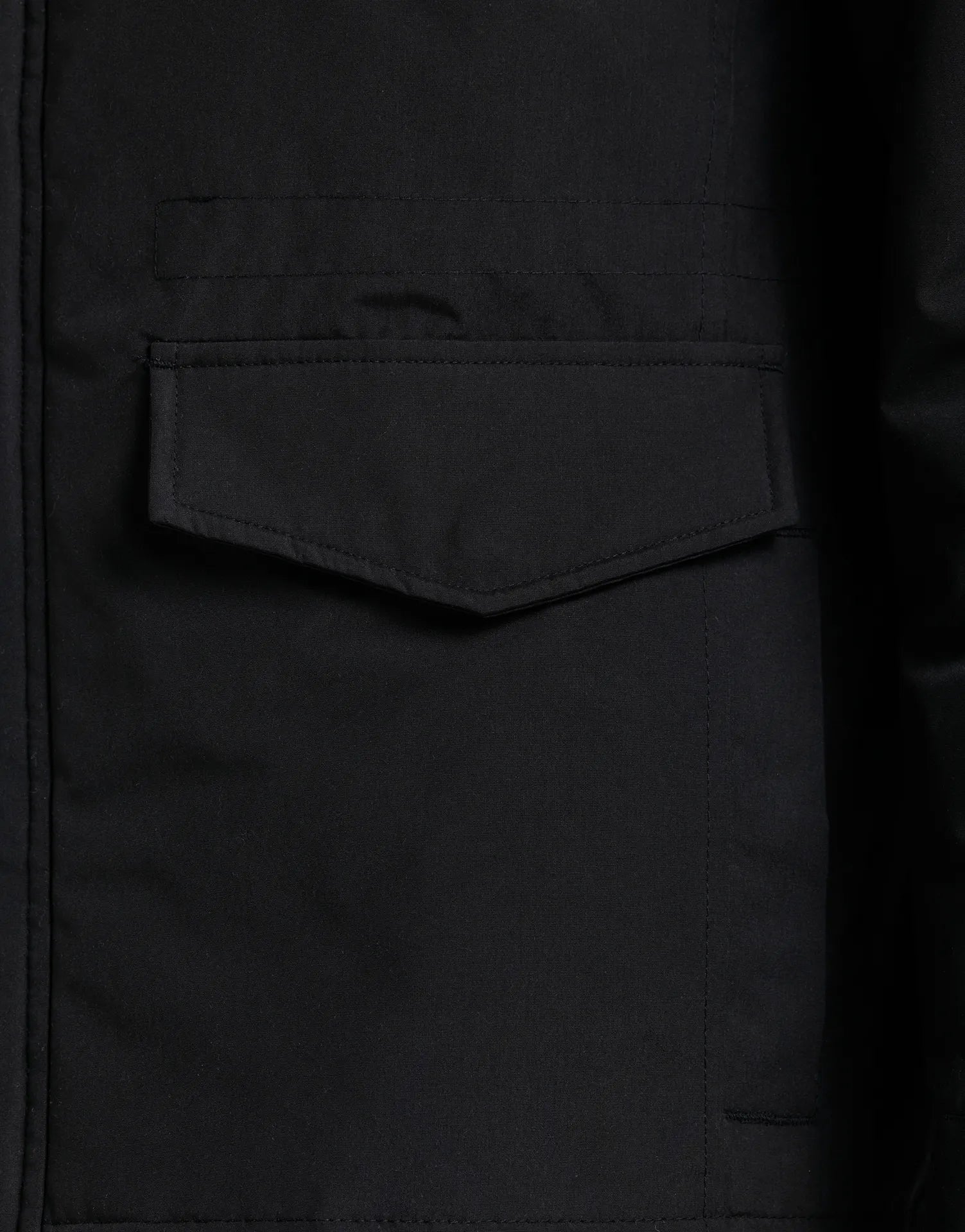 - Cuatro bolsillos frontales con solapa, que aportan un estilo práctico y urbano.