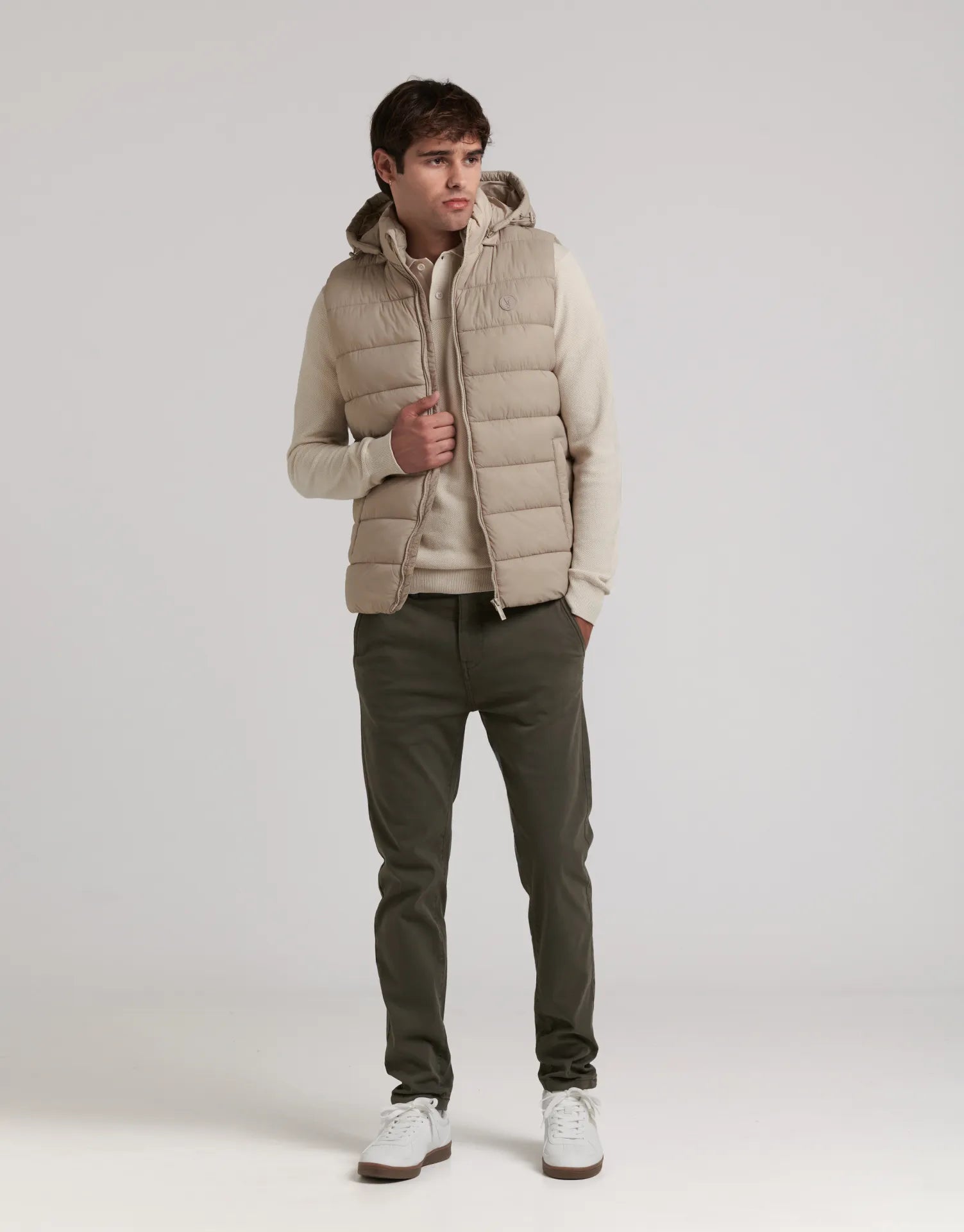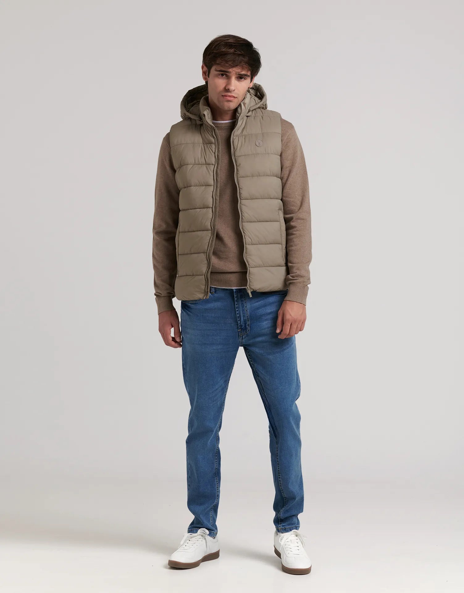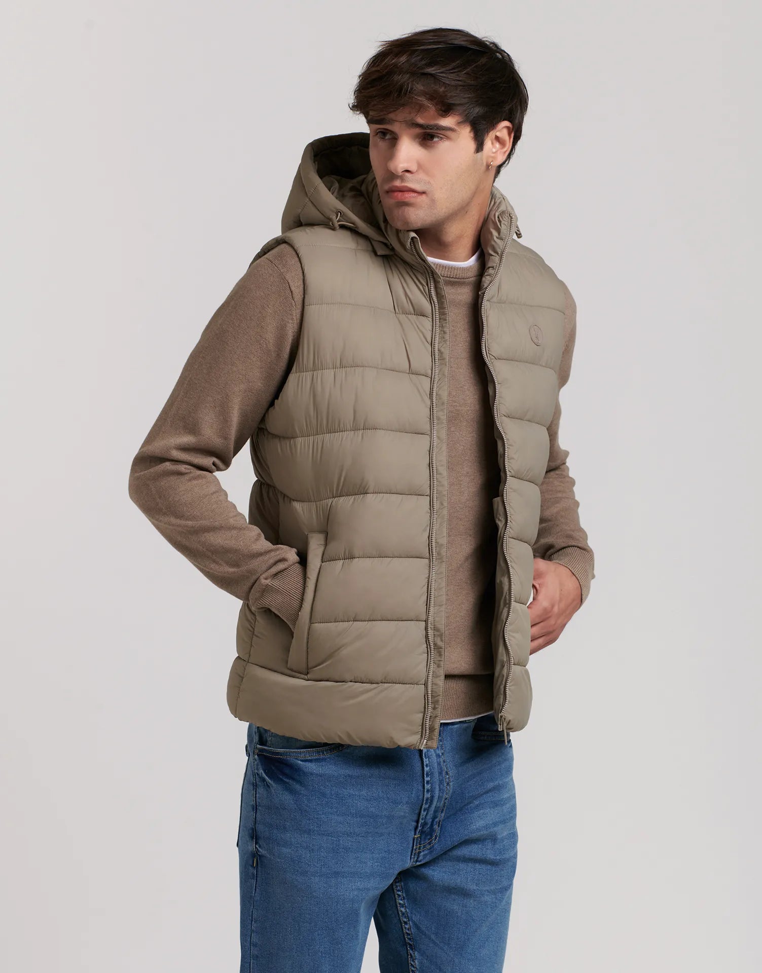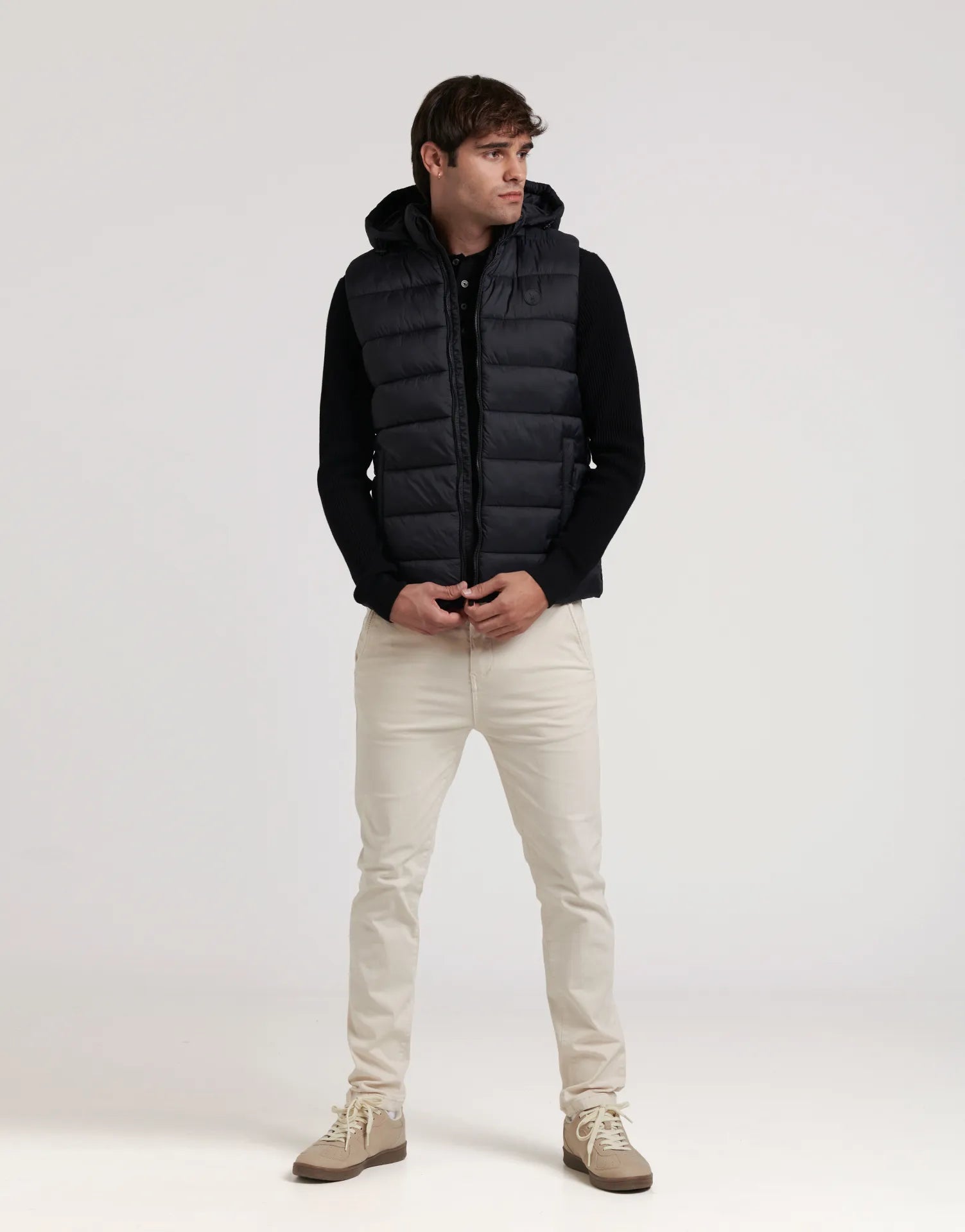 El chaleco acolchado sin mangas con capucha desmontable es la prenda perfecta para quienes buscan estilo, confort y versatilidad en los días de entretiempo. Su diseño ligero y moderno permite mantener el calor sin renunciar a la libertad de movimiento.