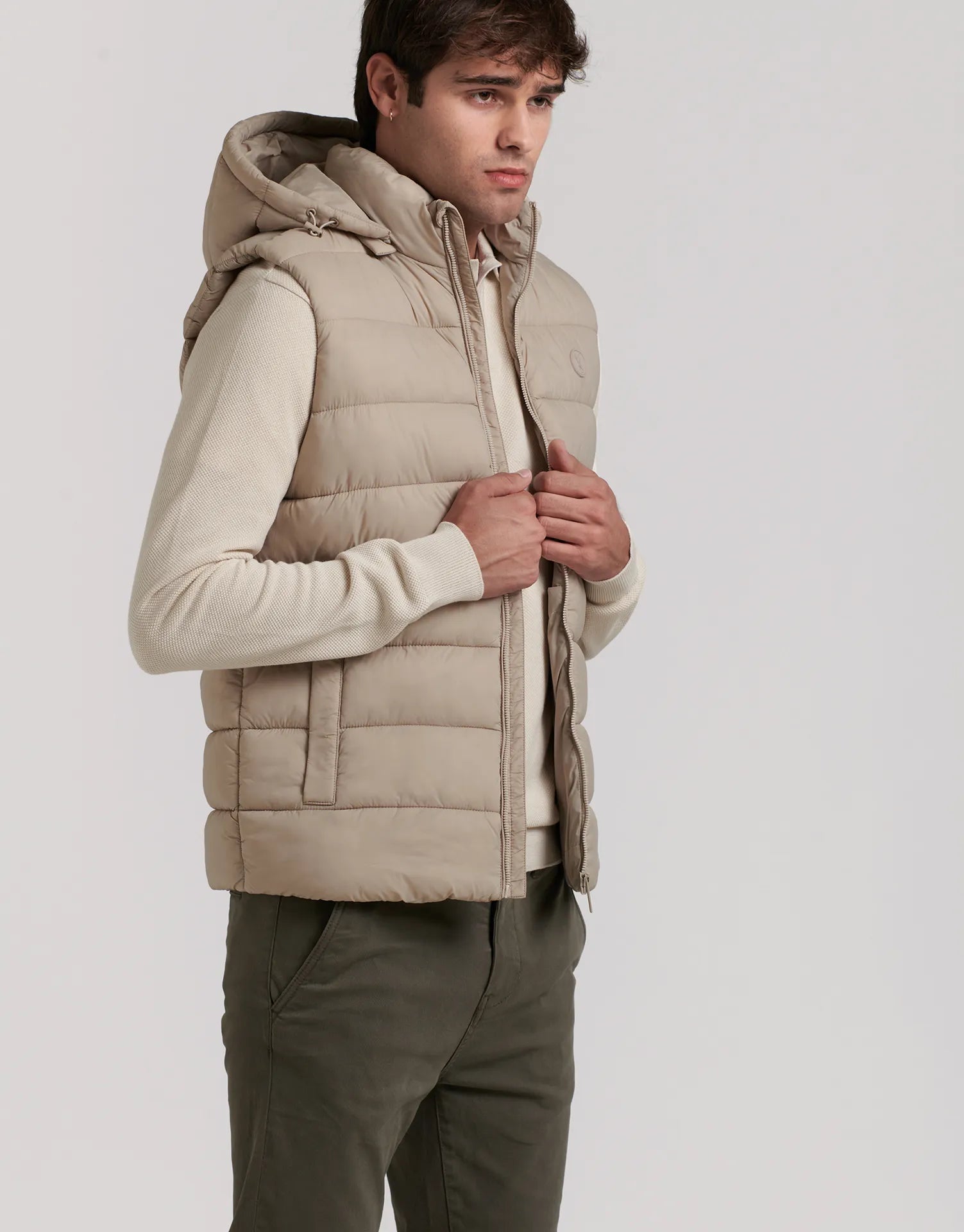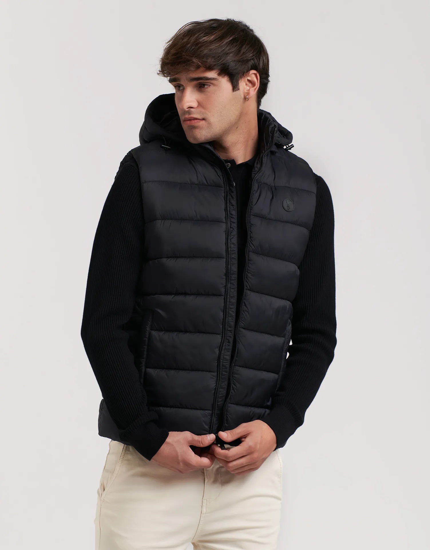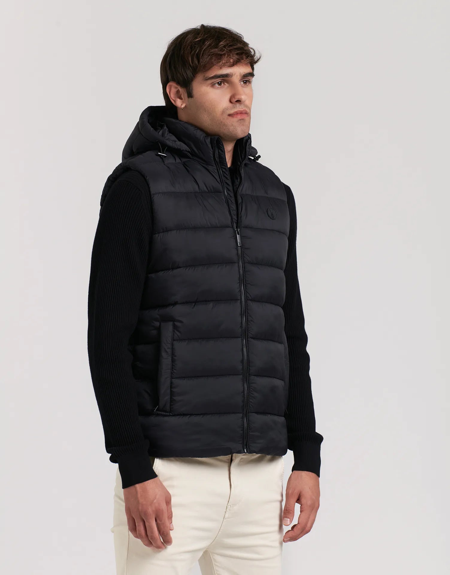 Chaleco acolchado sin mangas con capucha desmontable para hombre