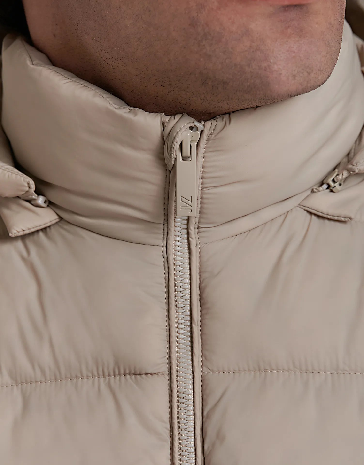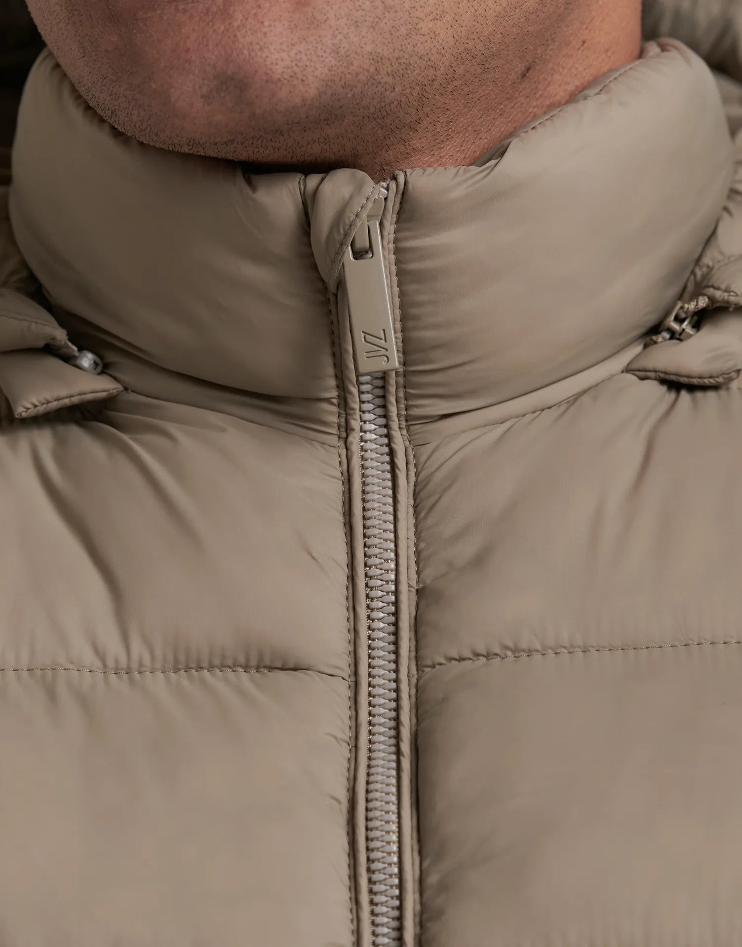 - Cierre frontal con cremallera y tirador personalizado JVZ.