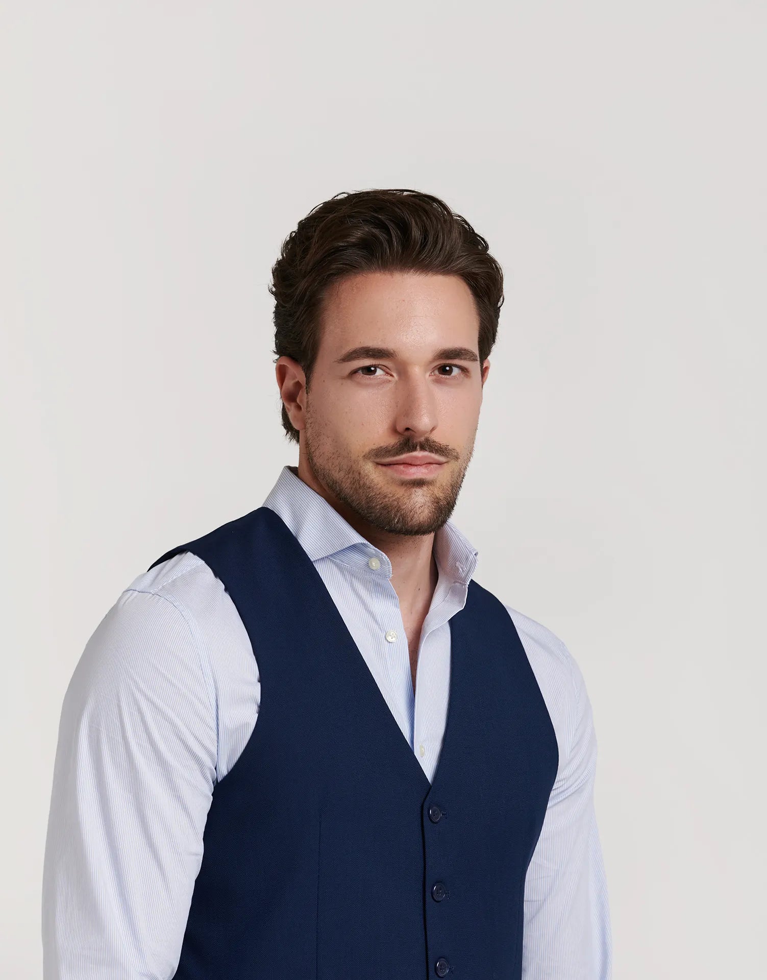 Una prenda versátil que se adapta a cualquier ocasión formal o evento especial, perfecta para llevar bajo la americana o como pieza protagonista en un look más relajado.