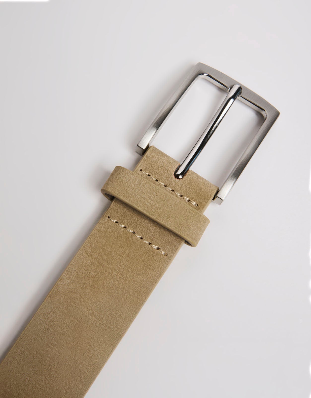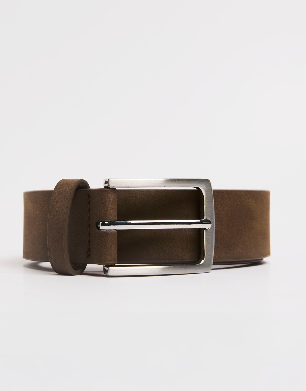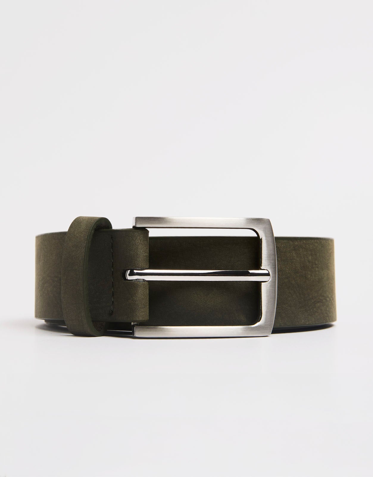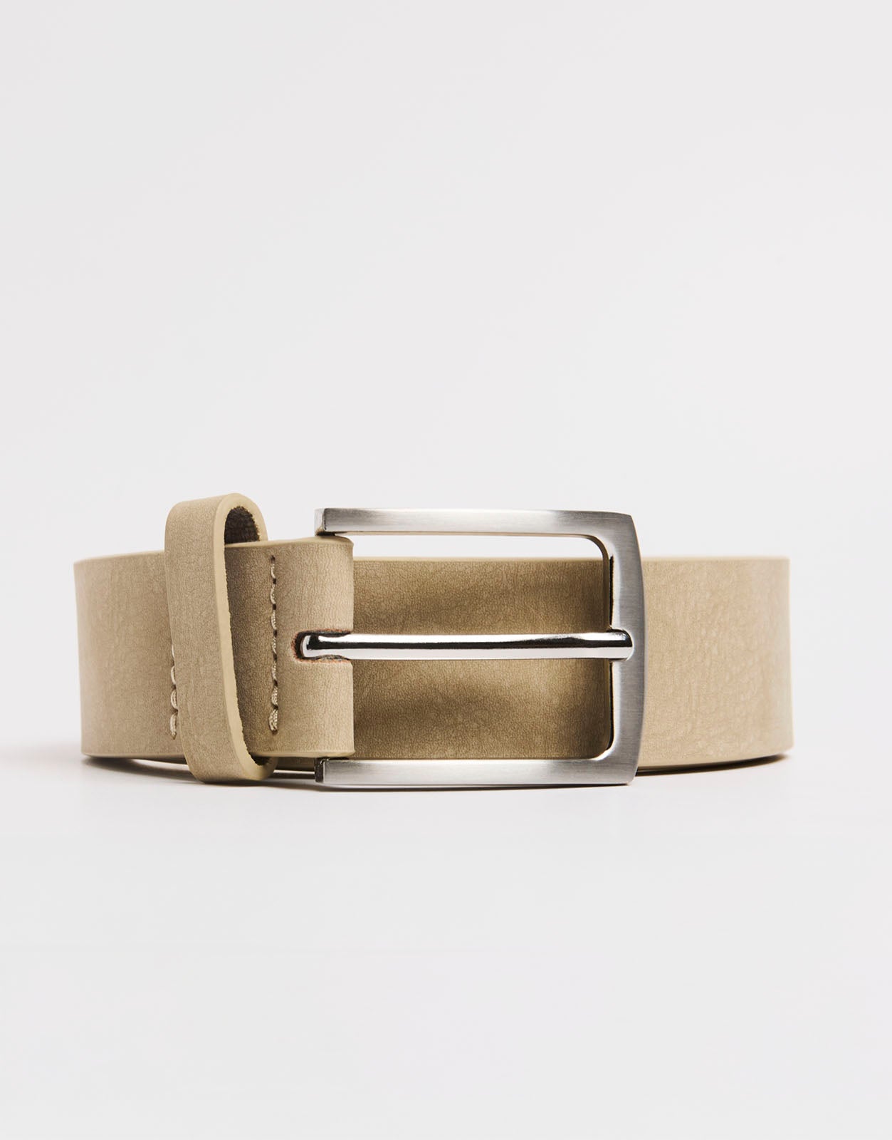 Cinturón para hombre con diseño liso, acabado limpio y hebilla metálica. Un complemento versátil para combinar con pantalones, looks casuales y estilismos diarios con un toque elegante.