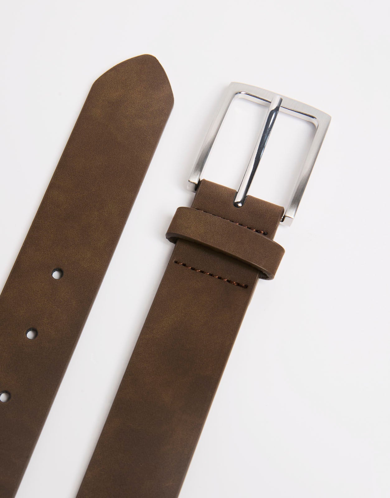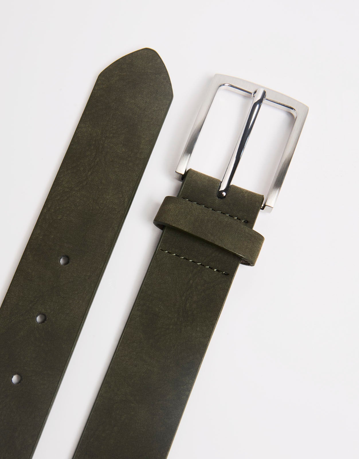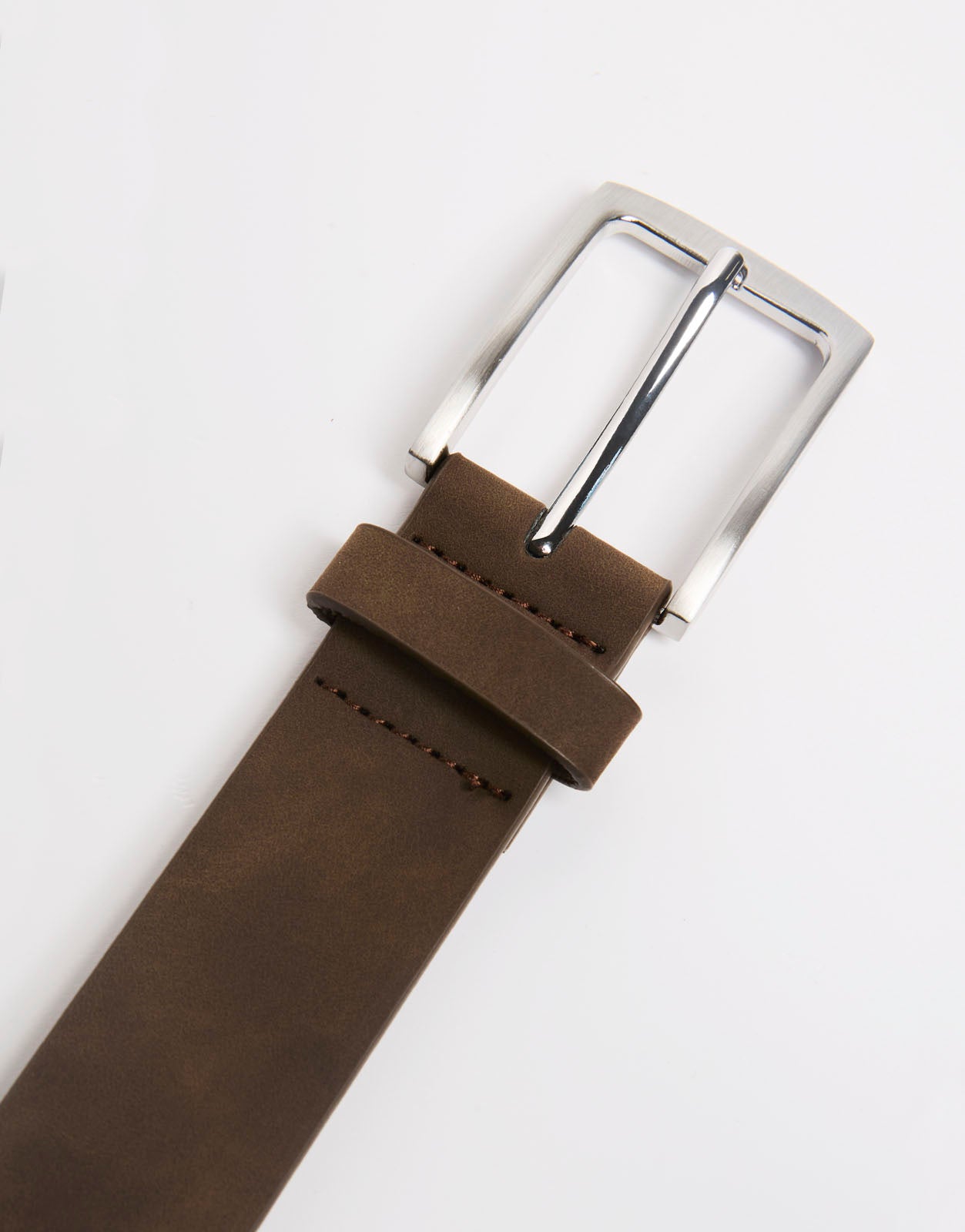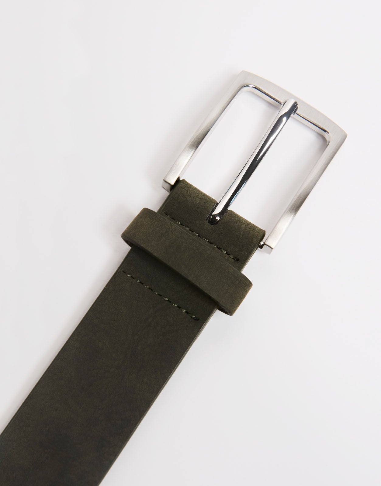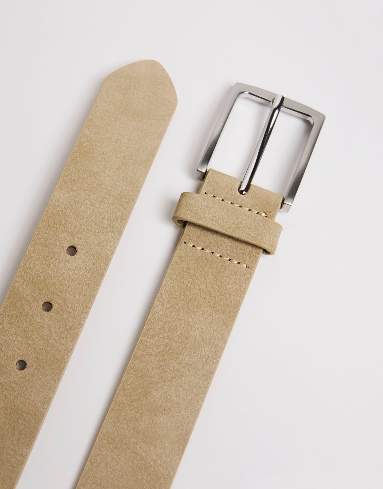 Cinturón para hombre con diseño liso, acabado limpio y hebilla metálica. Un complemento versátil para combinar con pantalones, looks casuales y estilismos diarios con un toque elegante.