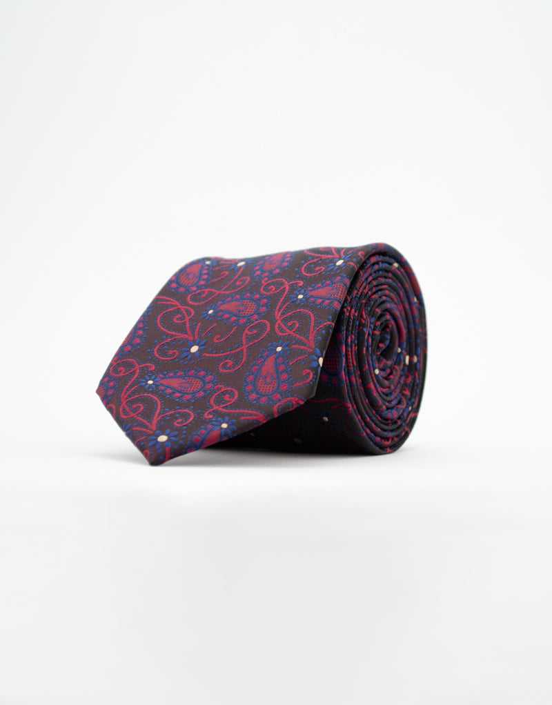Corbata con diseño estampado, confeccionada en 100% poliéster. Medidas: 8 cm ancho de la pala y 150 cm de largo.