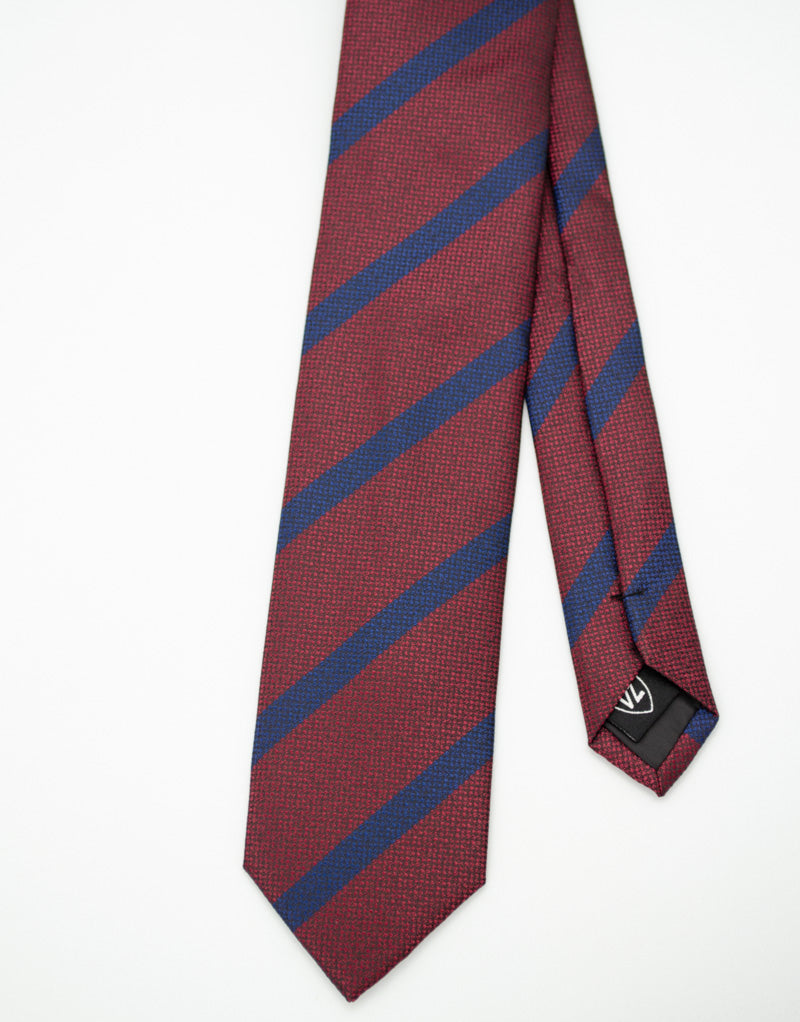 Corbata con diseño de rayas, confeccionada en 100% poliéster. Medidas: 8 cm ancho de la pala y 150 cm de largo.