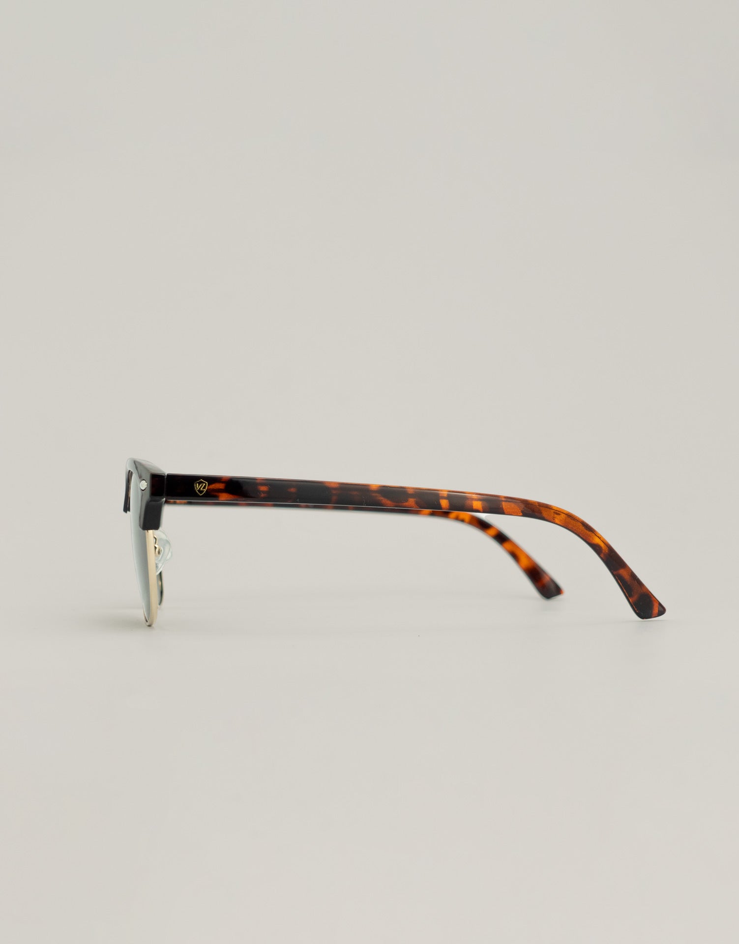 Estas gafas de sol combinan una montura metálica con detalle efecto carey, logrando un equilibrio perfecto entre estilo retro y sofisticación actual. Su diseño inspirado en las formas clásicas aporta carácter a cualquier outfit, mientras que las lentes polarizadas ofrecen protección solar de alto rendimiento, reduciendo reflejos y mejorando la nitidez visual.