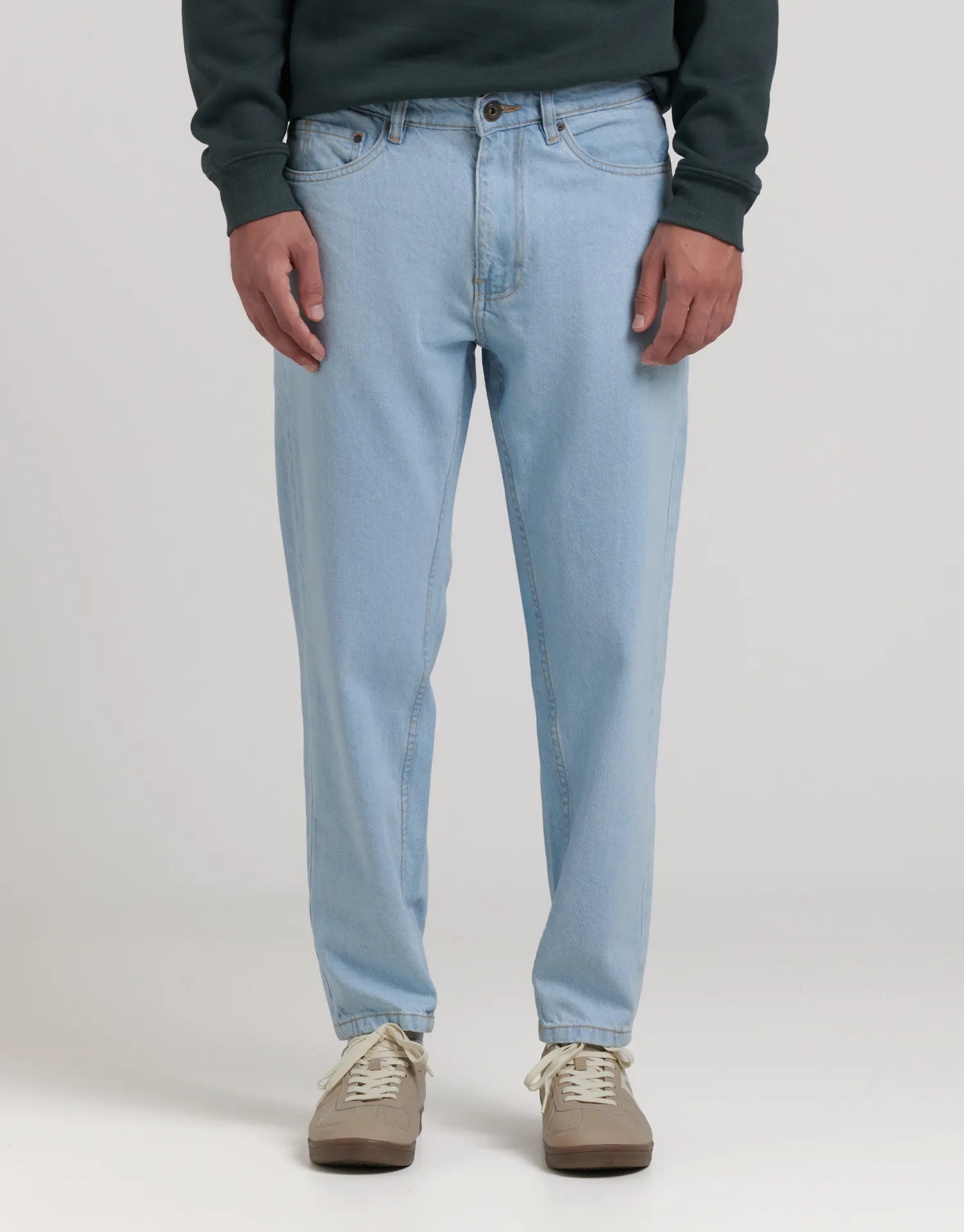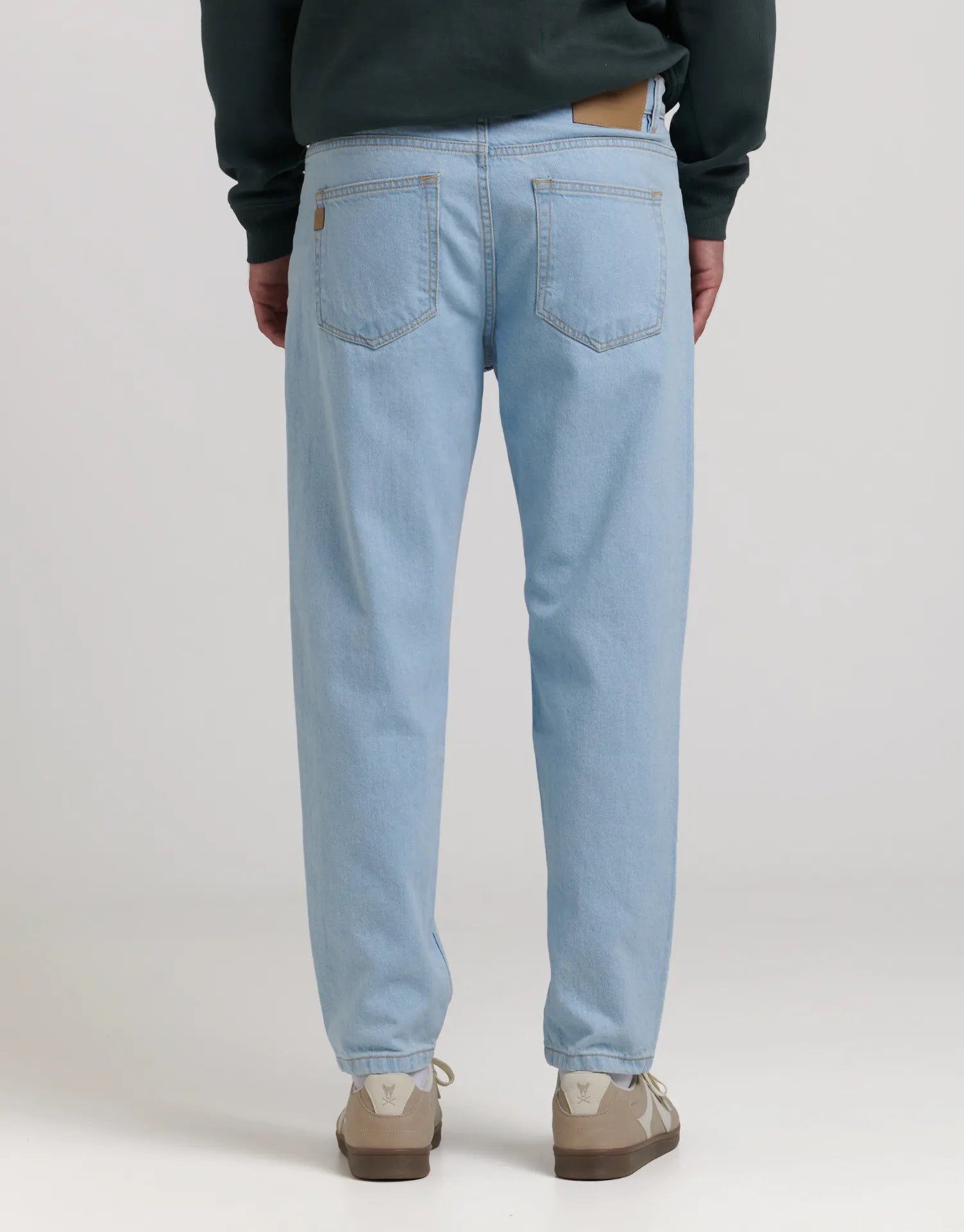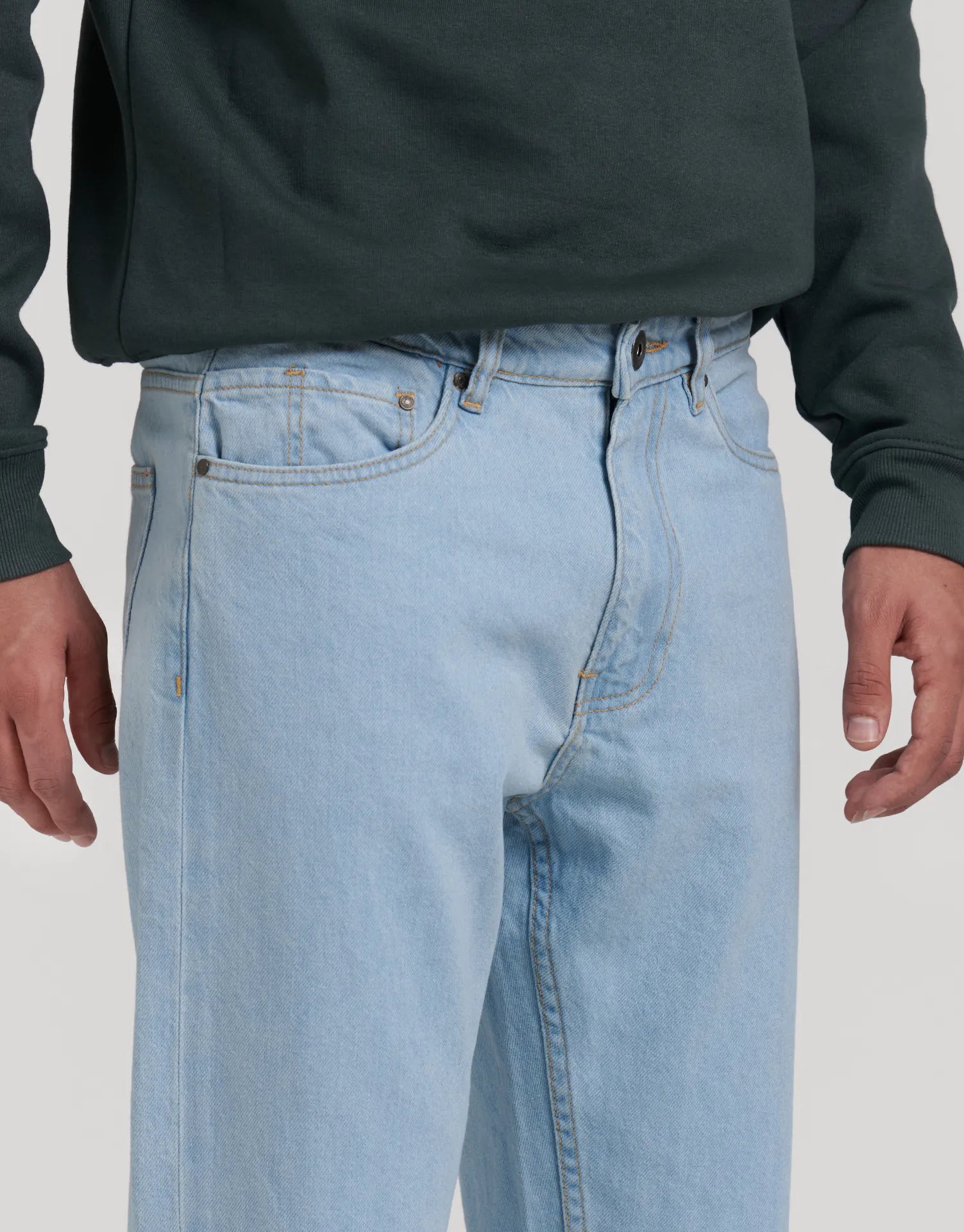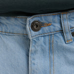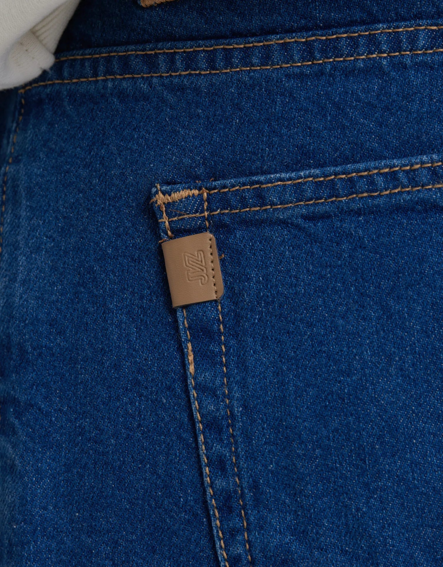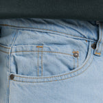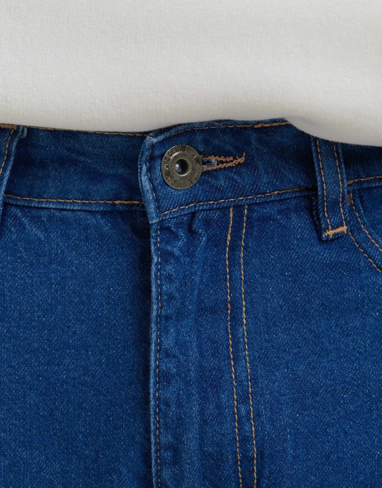- Denim resistente en tono claro para un aire fresco y moderno.