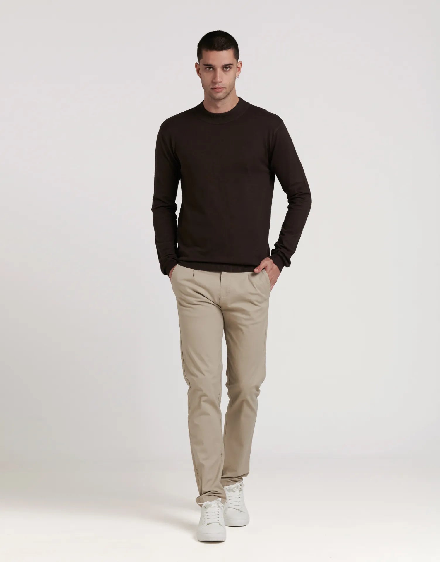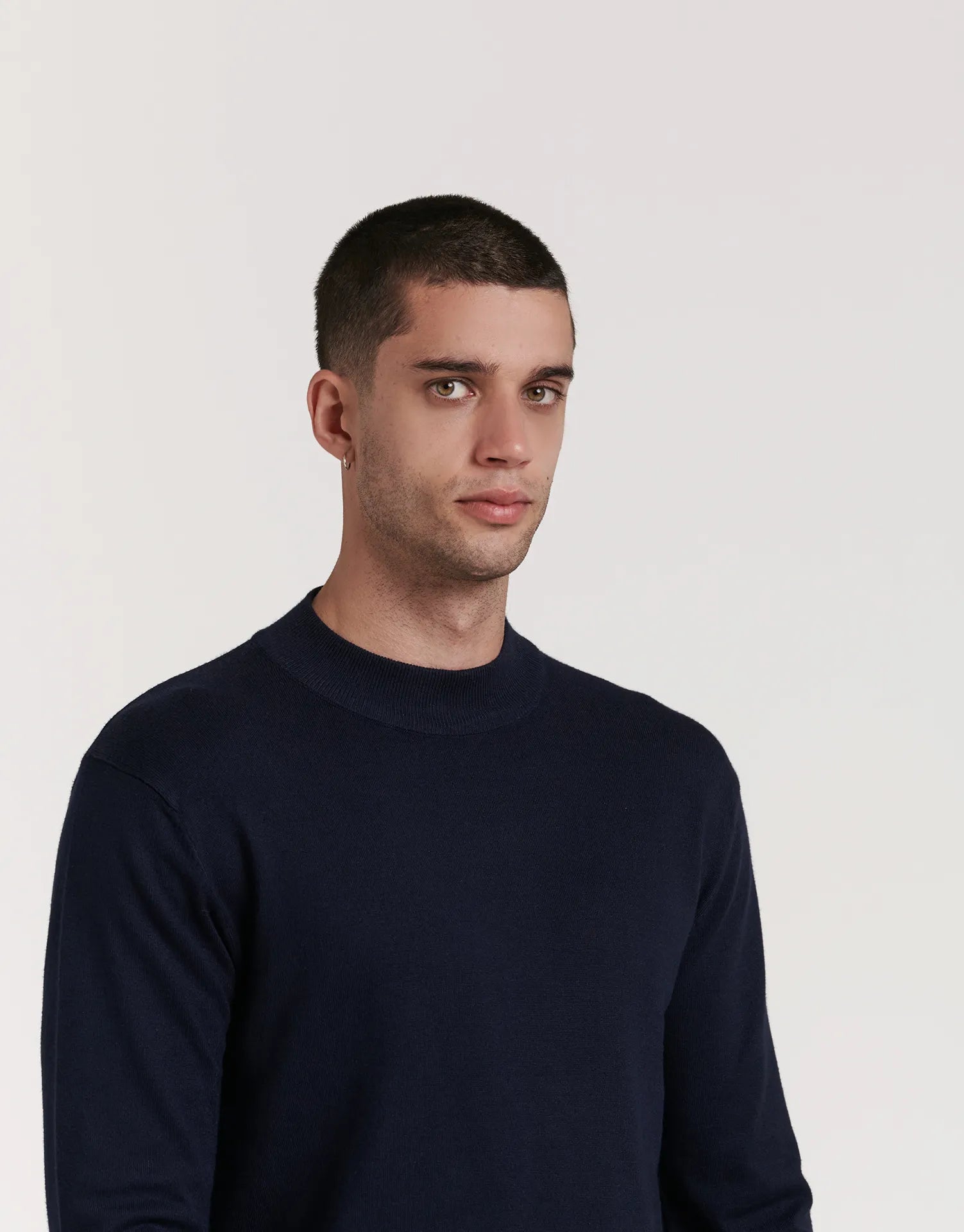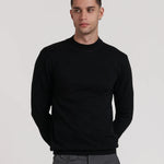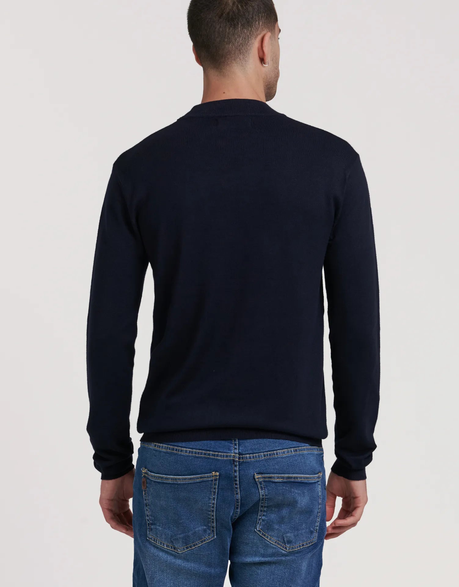 Este jersey de cuello Perkins combina la elegancia del estilo clásico con la comodidad del punto fino. Su diseño minimalista y su textura suave lo convierten en una prenda imprescindible para el hombre moderno que busca un look pulido y versátil.