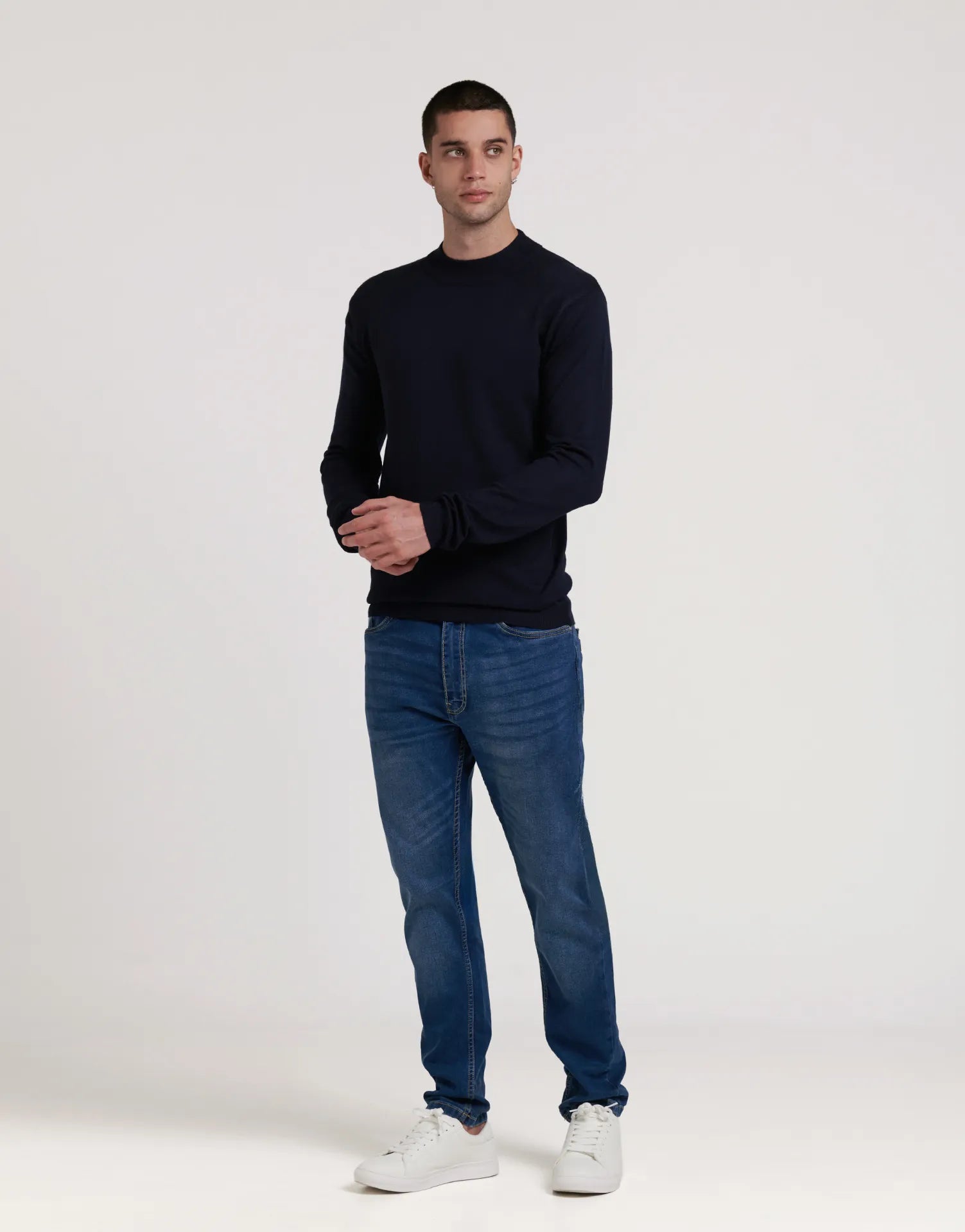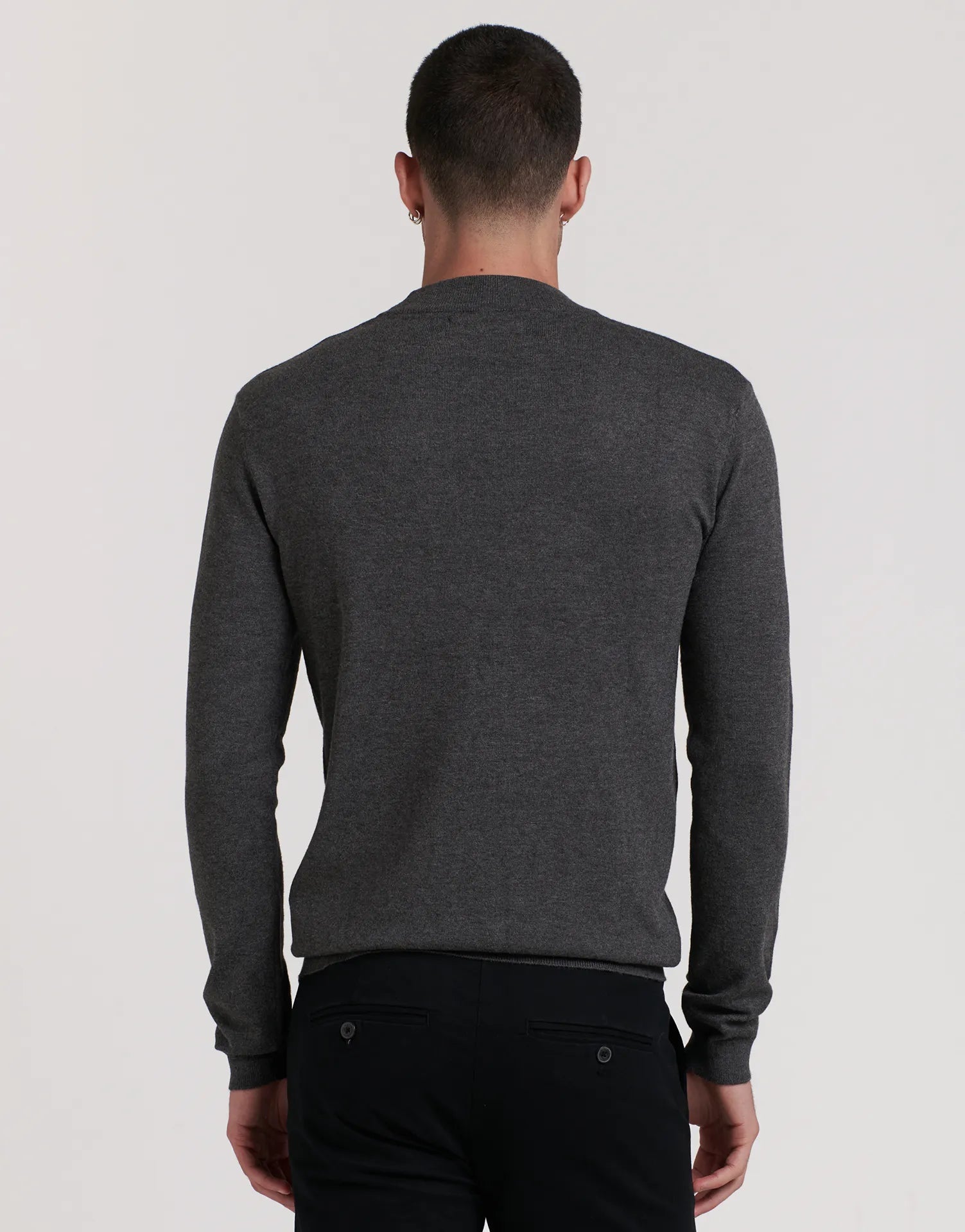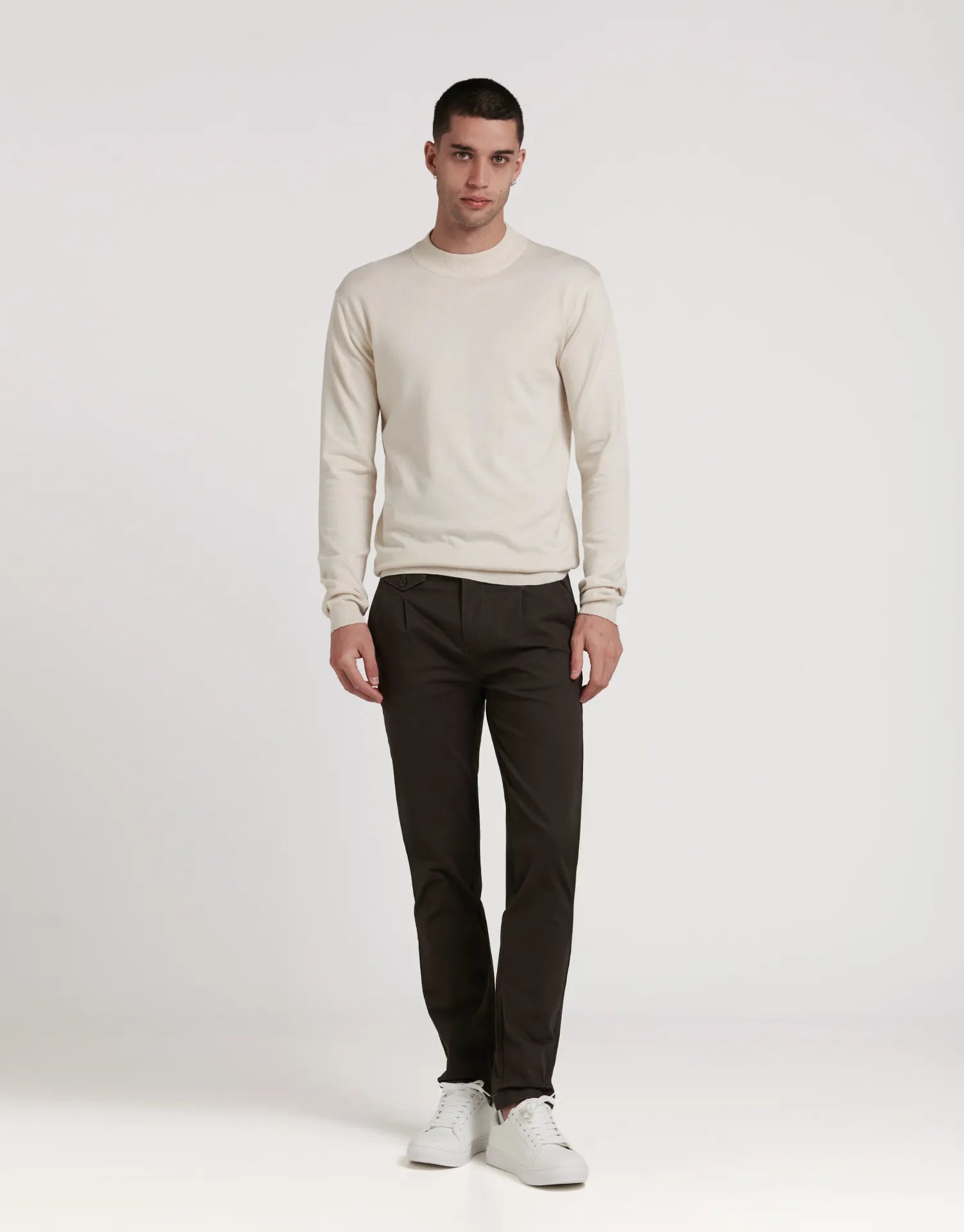 Este jersey de cuello Perkins combina la elegancia del estilo clásico con la comodidad del punto fino. Su diseño minimalista y su textura suave lo convierten en una prenda imprescindible para el hombre moderno que busca un look pulido y versátil.