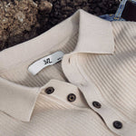Este jersey de cuello polo en tejido canalé redefine el concepto de elegancia casual. Su diseño combina la estructura clásica del polo con la textura moderna del punto acanalado, logrando una prenda versátil, cómoda y con carácter.