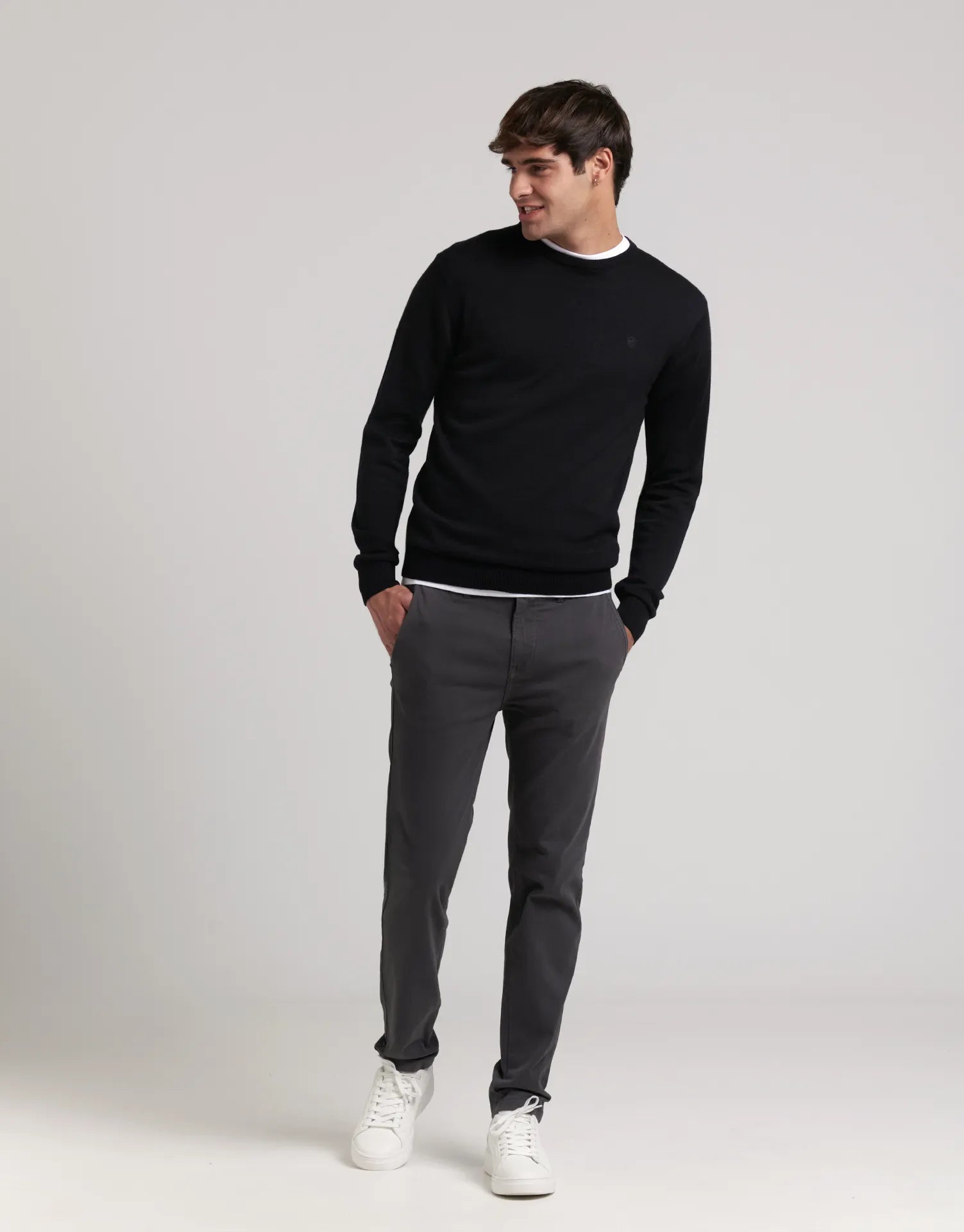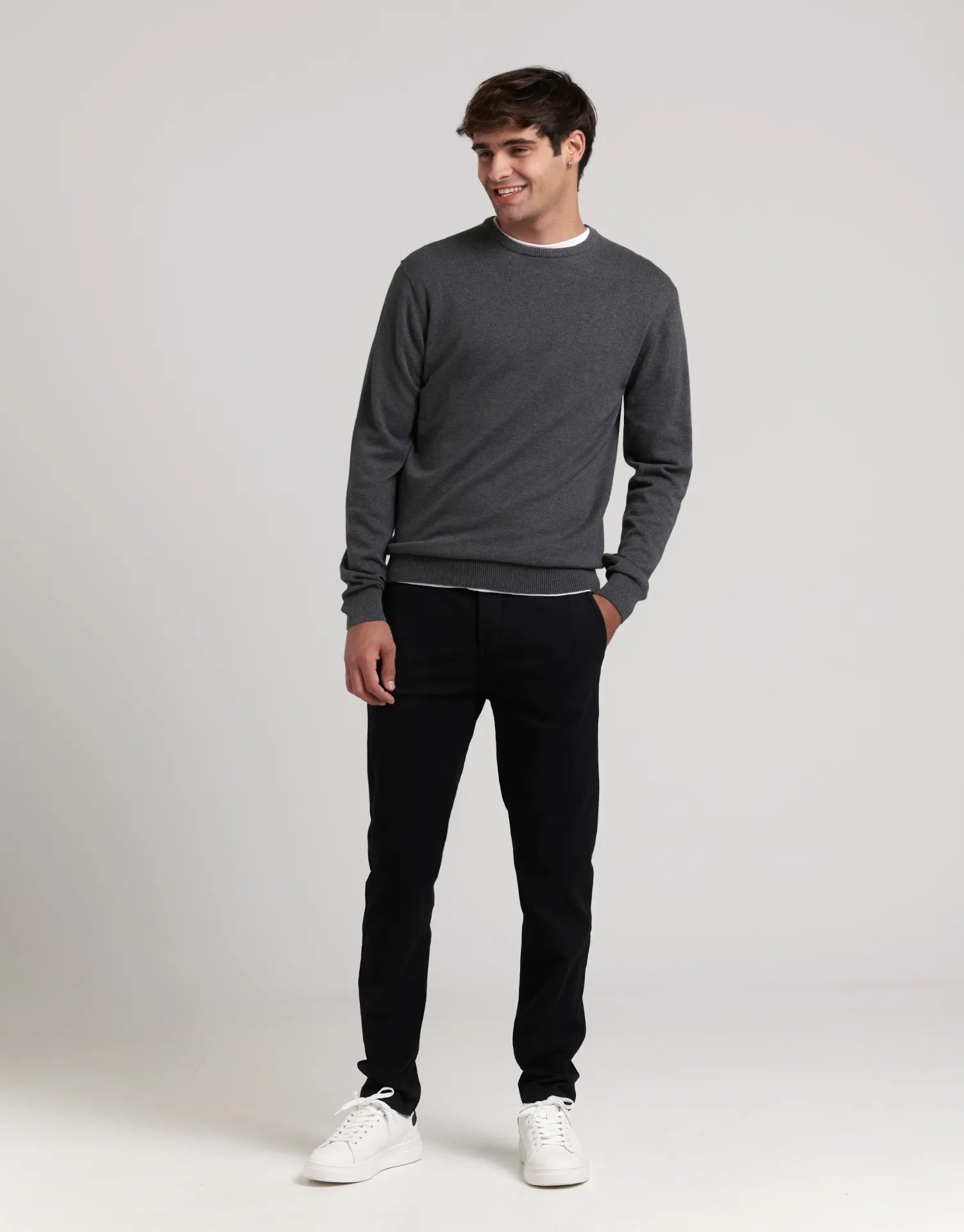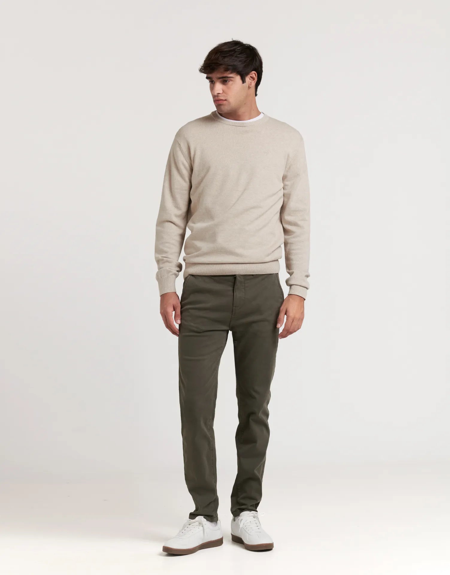 Un básico imprescindible para cualquier armario. Este jersey liso de cuello redondo combina comodidad, estilo y versatilidad. Su diseño minimalista permite adaptarlo tanto a looks casuales como a conjuntos más arreglados, manteniendo siempre una apariencia limpia y cuidada.