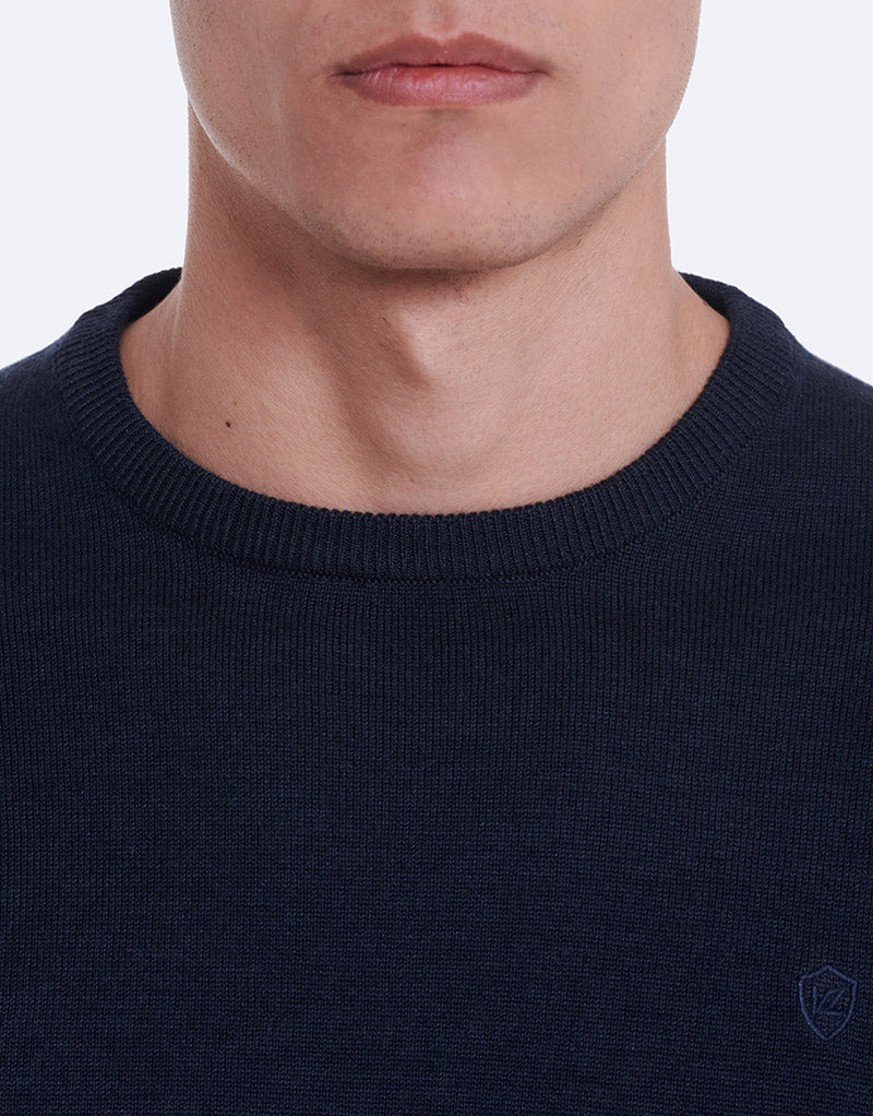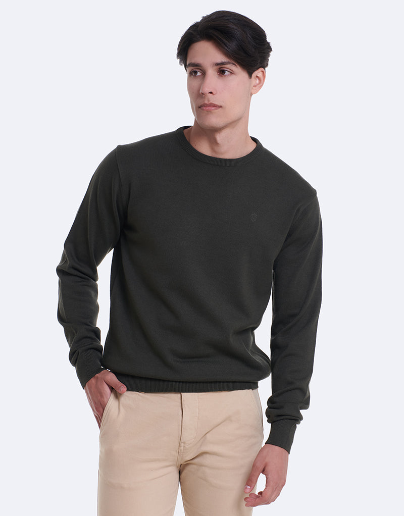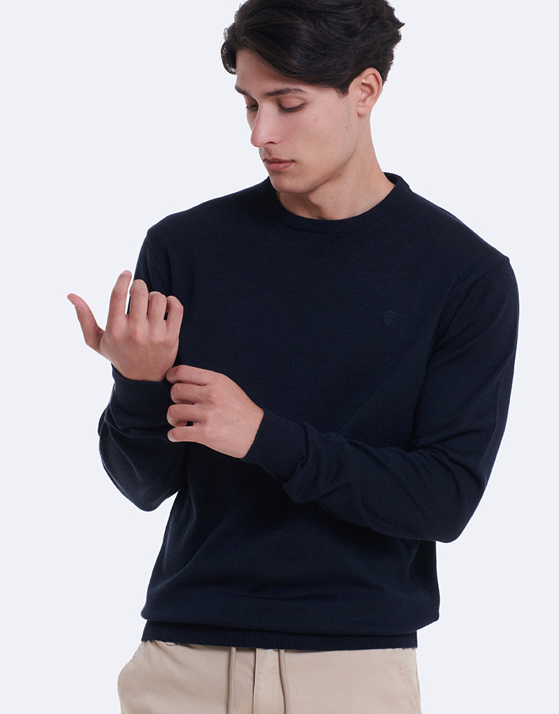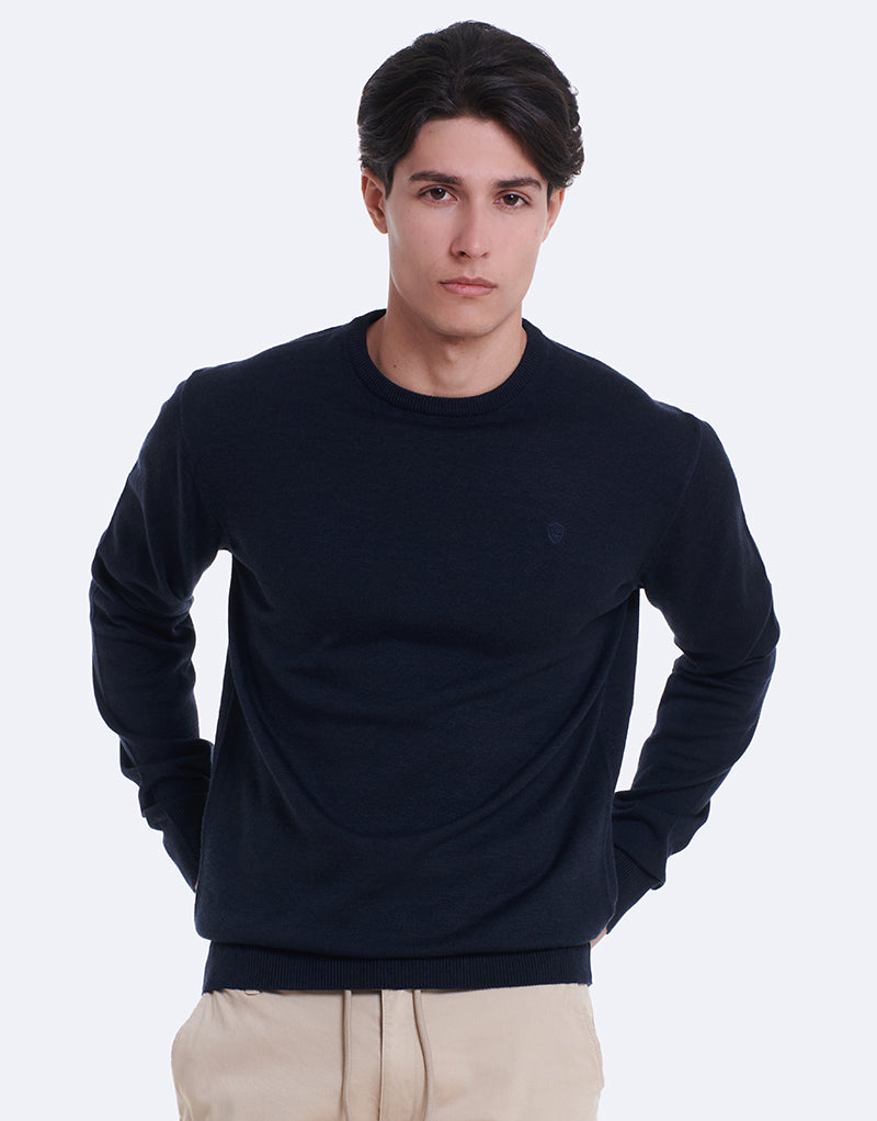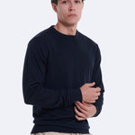 Jersey liso de algodón. Regular fit, cuello redondo y manga larga. Logo bordado a tono. Acabados en rib. | Modelo altura 186cm. Talla M.