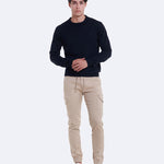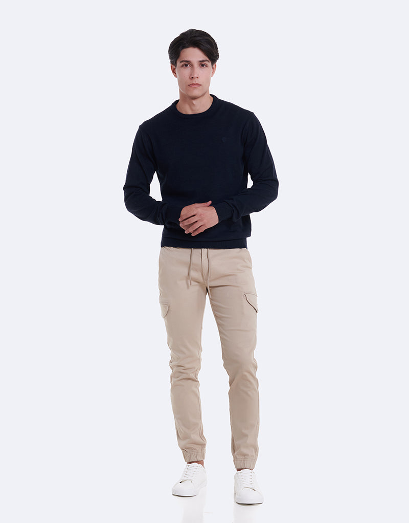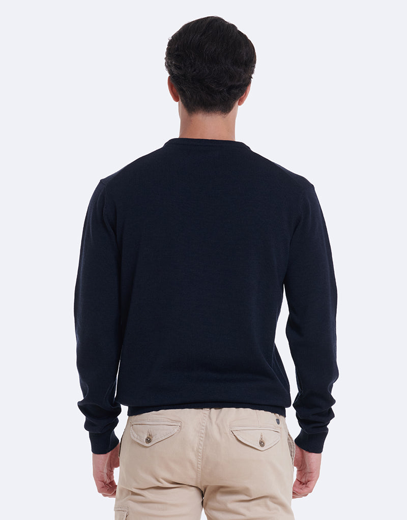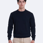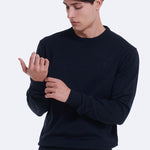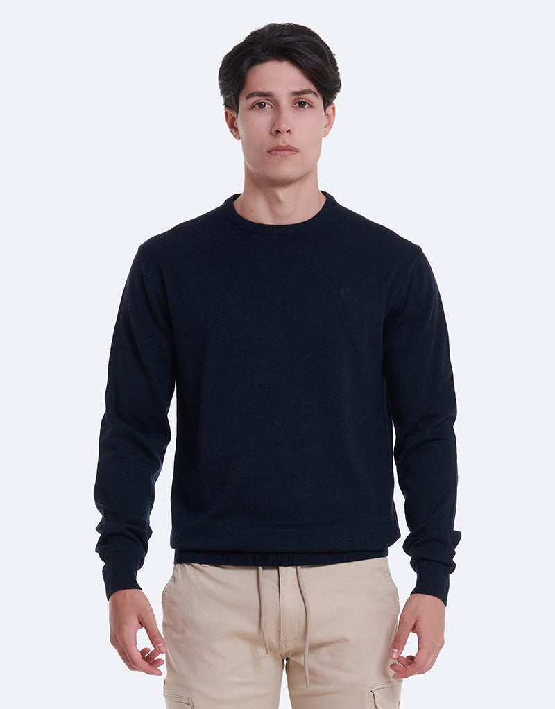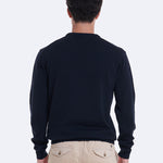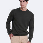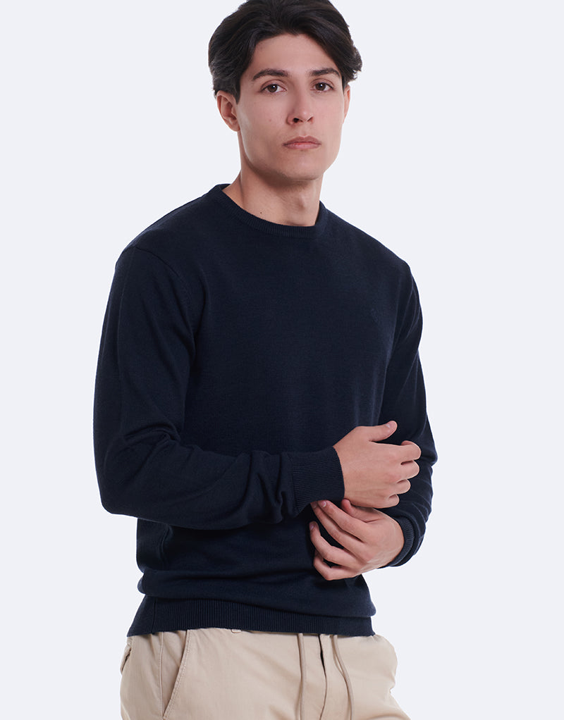 Jersey liso de algodón. Regular fit, cuello redondo y manga larga. Logo bordado a tono. Acabados en rib. | Modelo altura 186cm. Talla M.