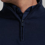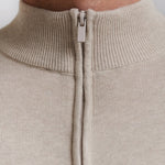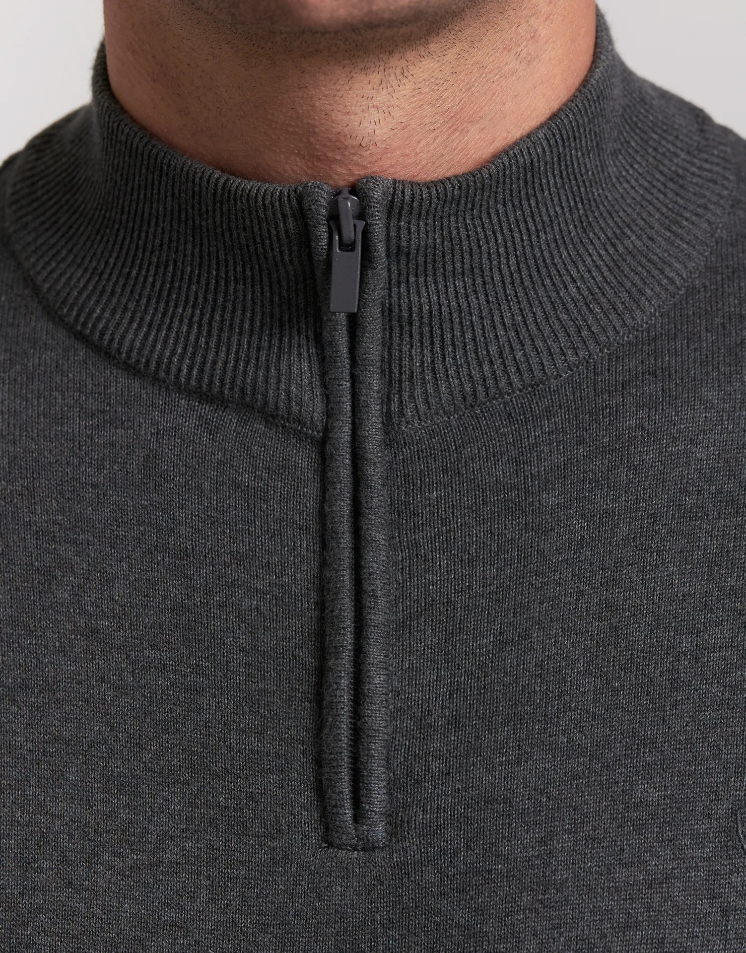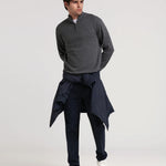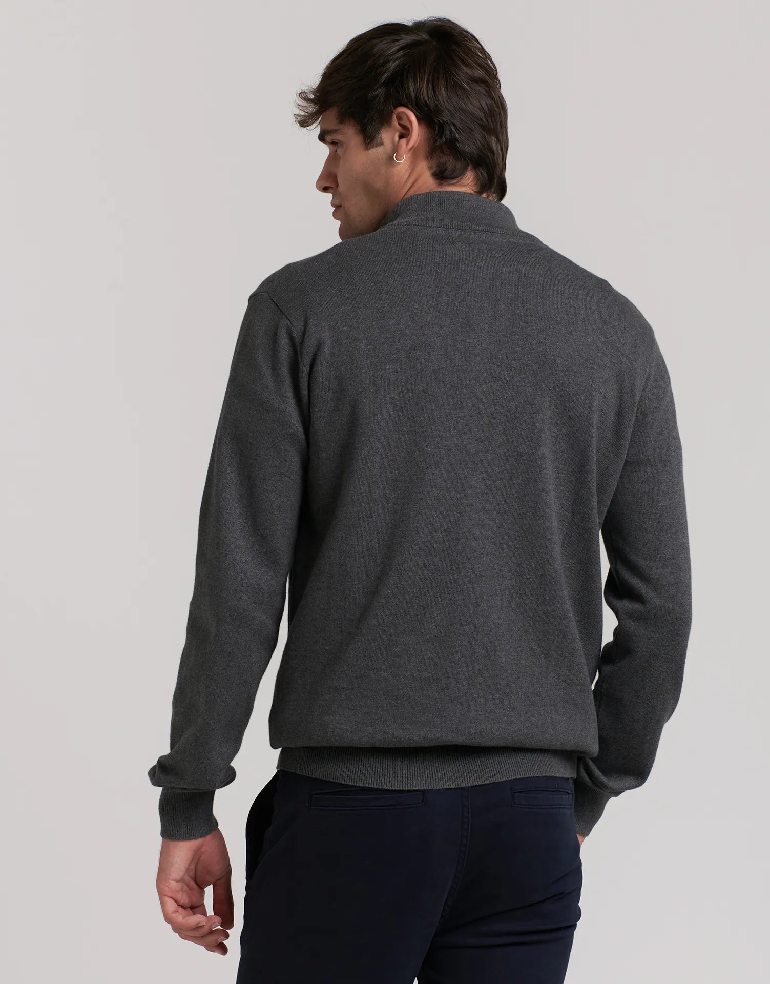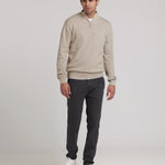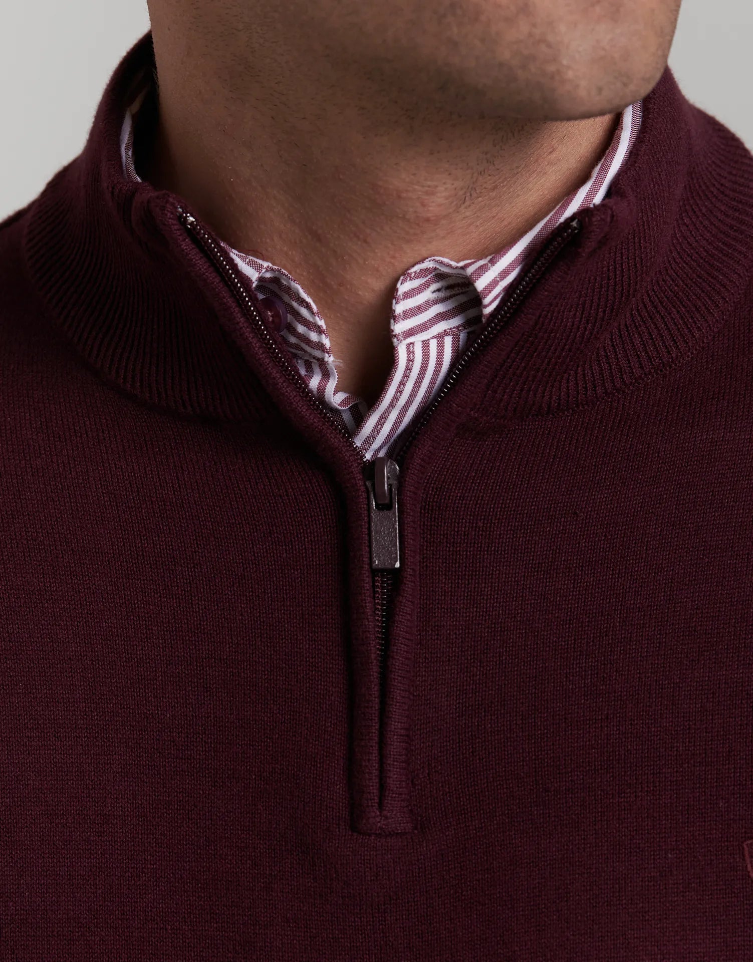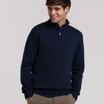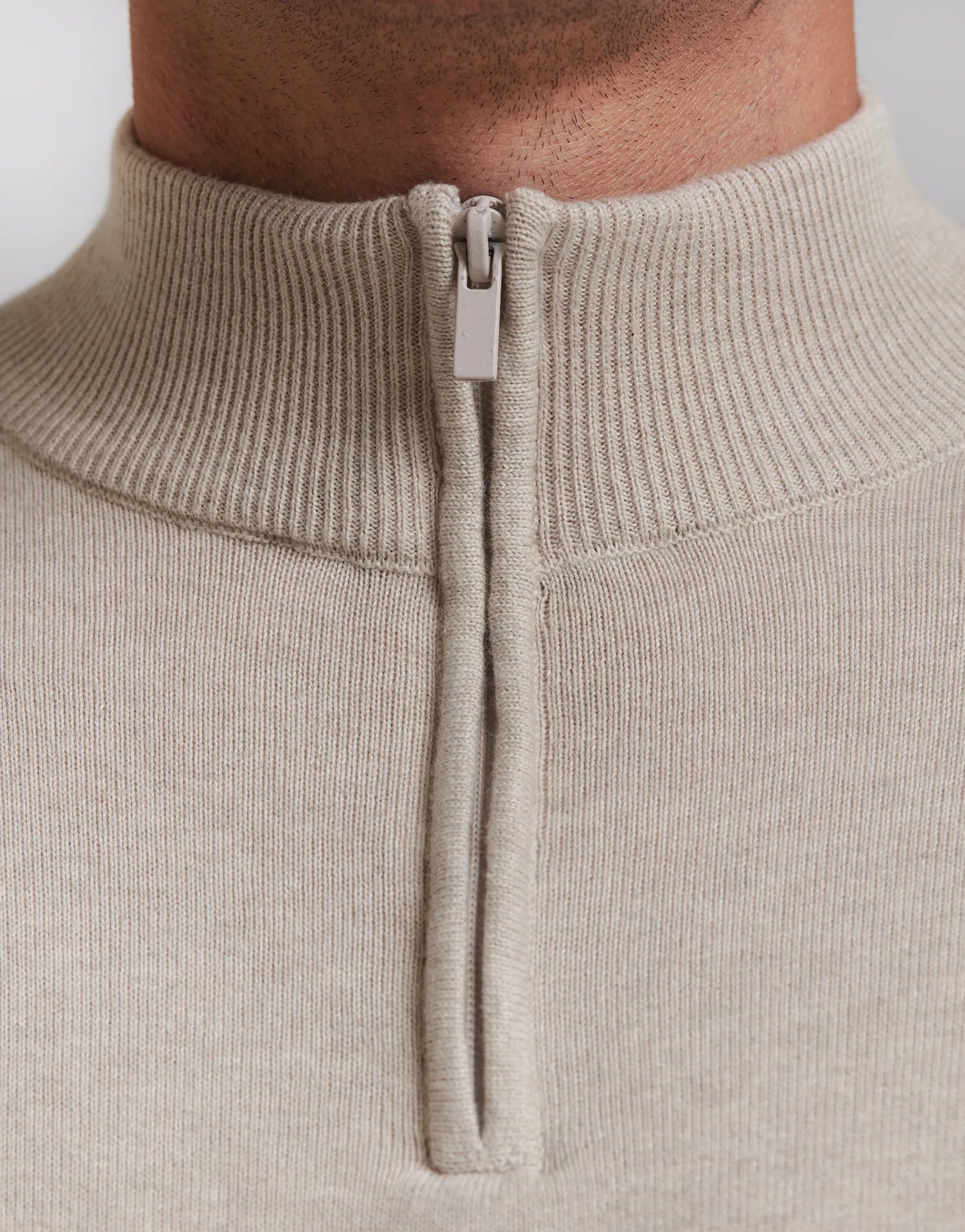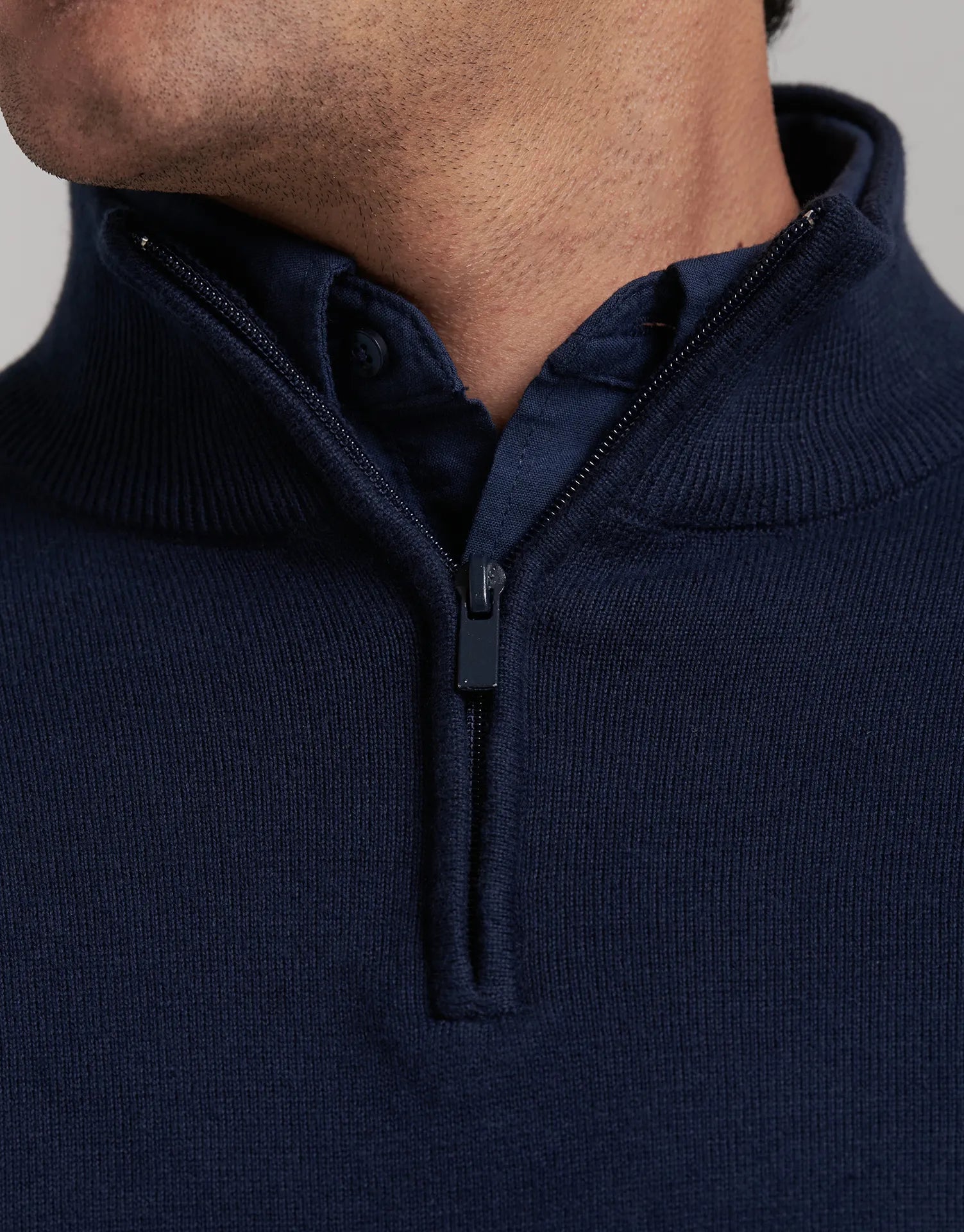 Este jersey de punto con media cremallera es una prenda esencial para el hombre que busca equilibrio entre confort y estilo. Su diseño versátil y su tejido suave lo convierten en una opción ideal para combinar con camisas o camisetas en looks casuales o más cuidados.